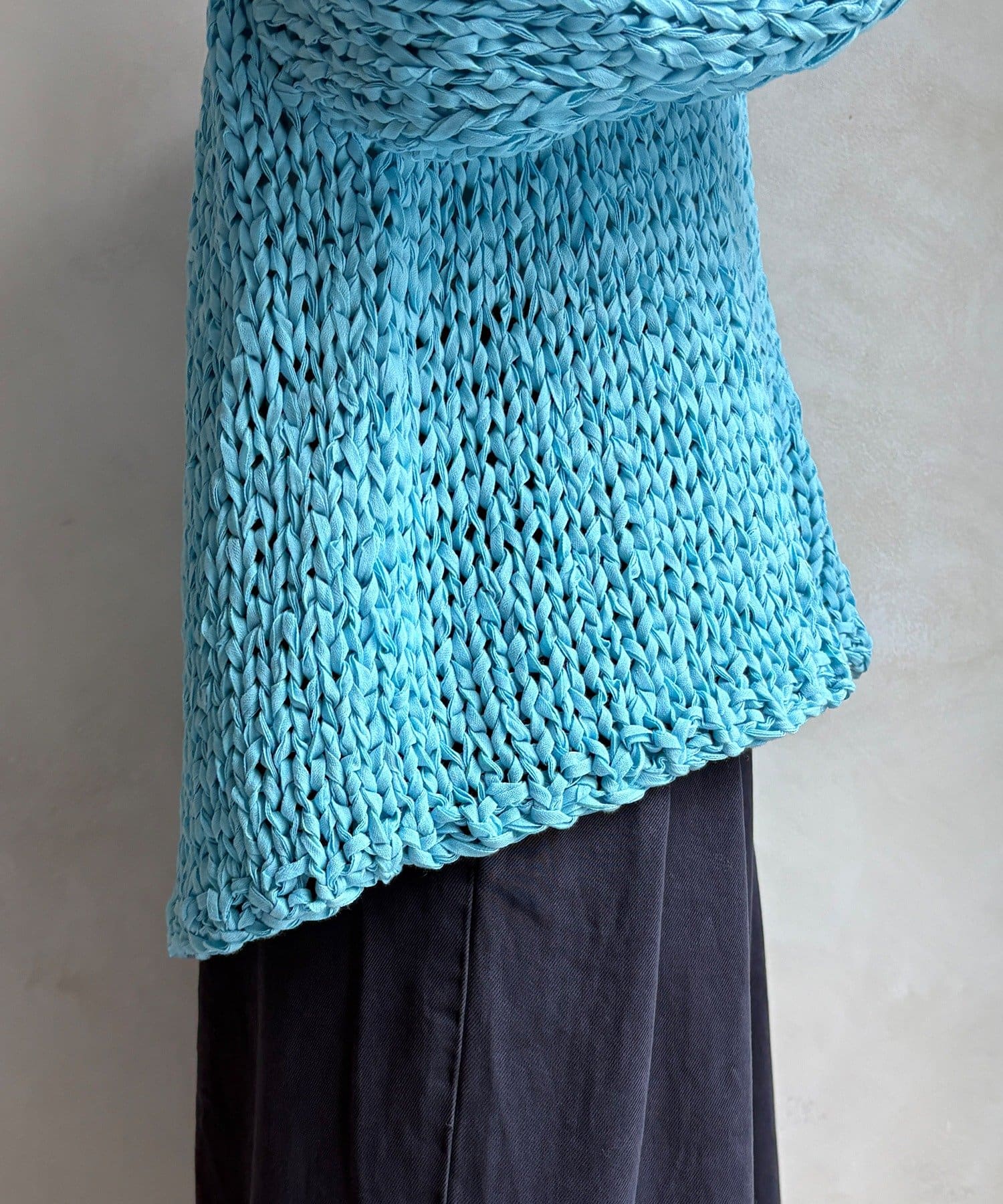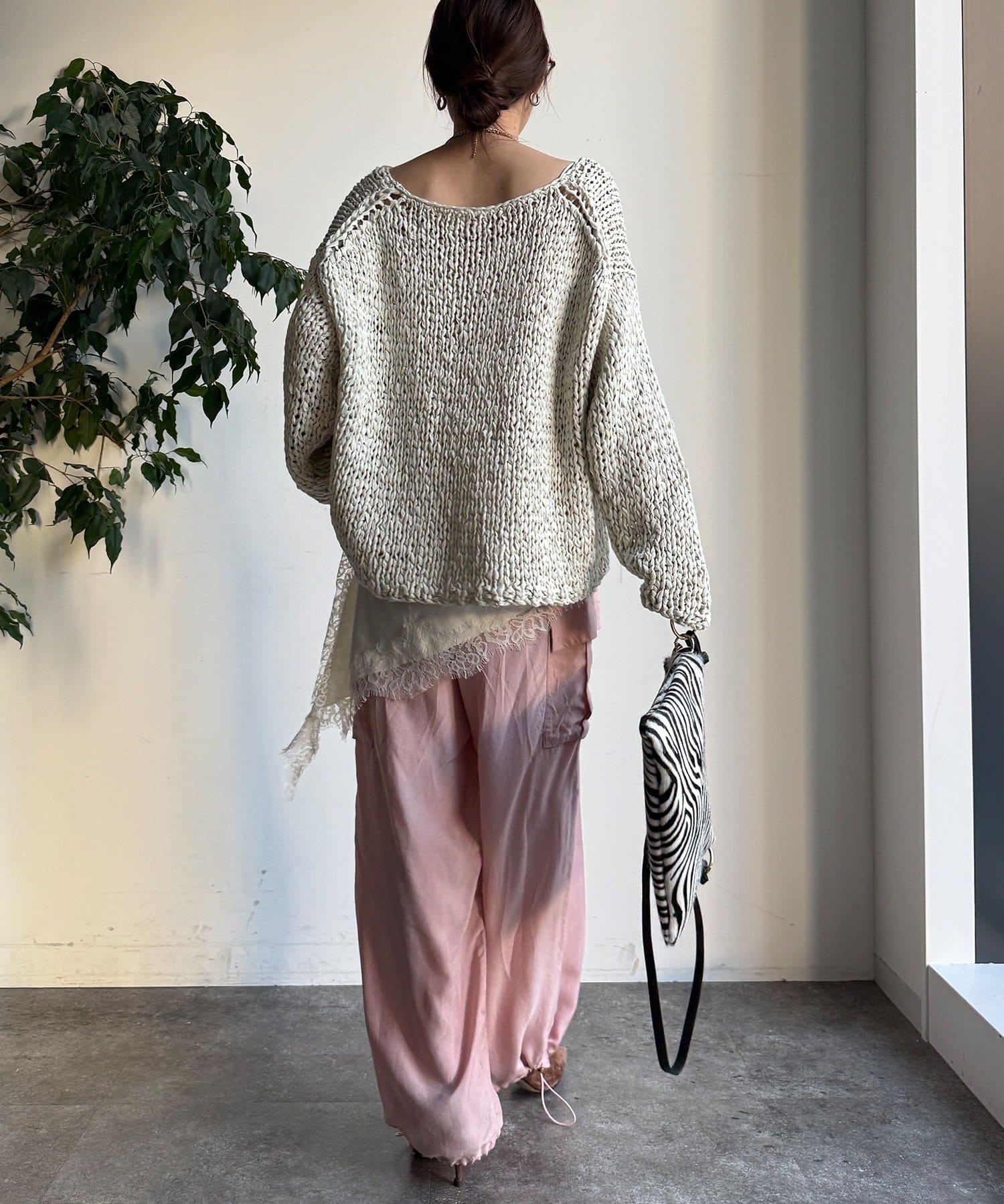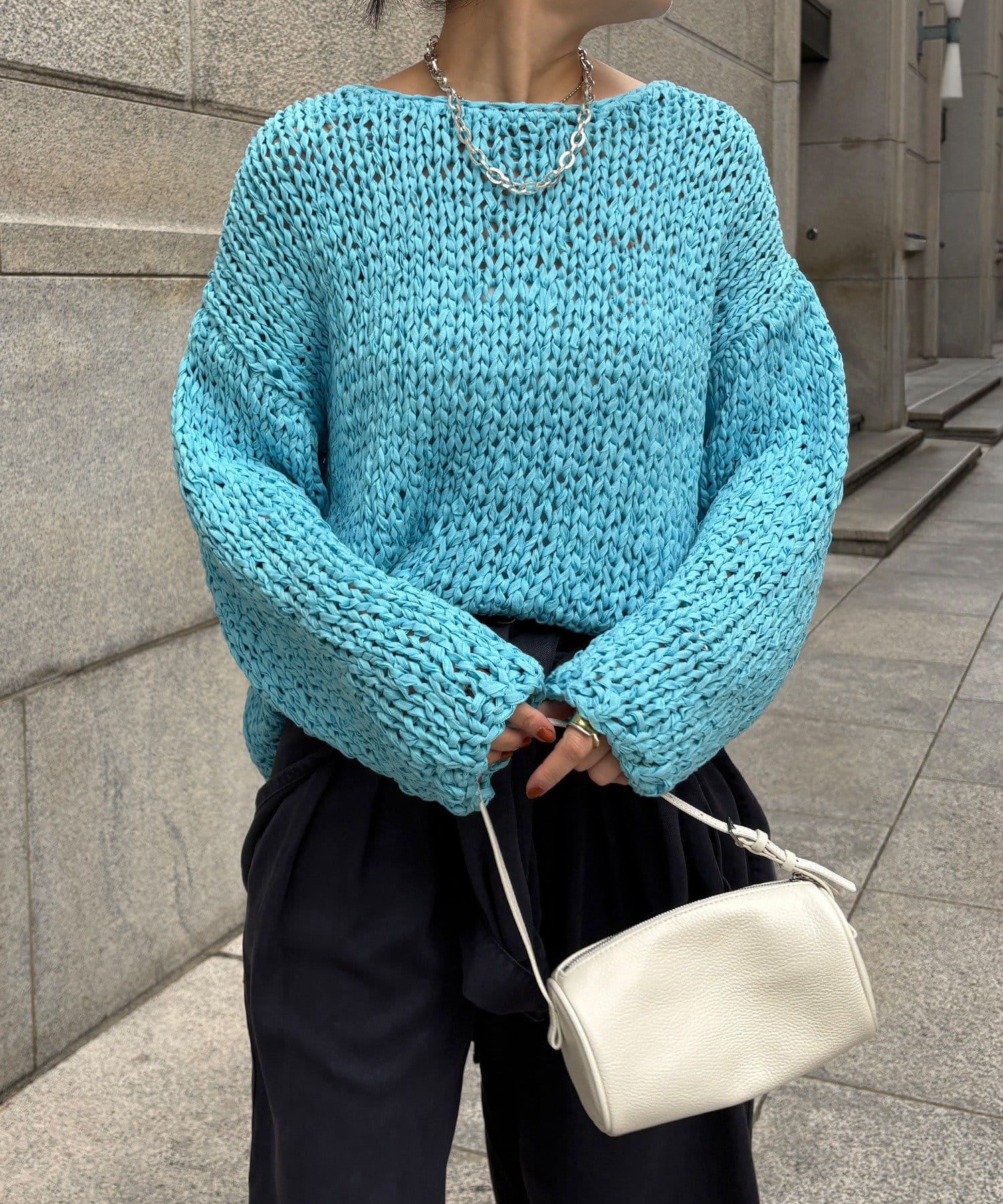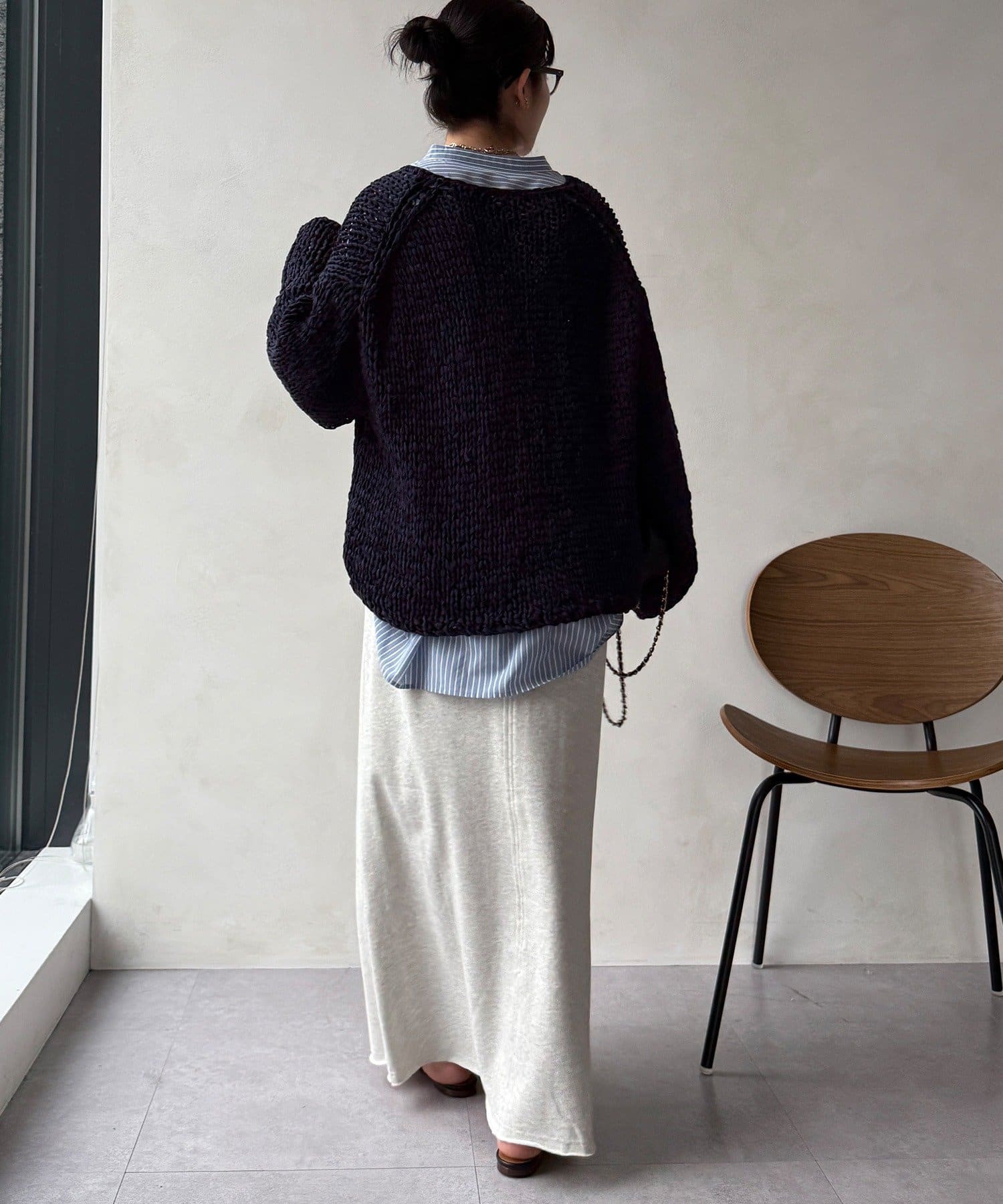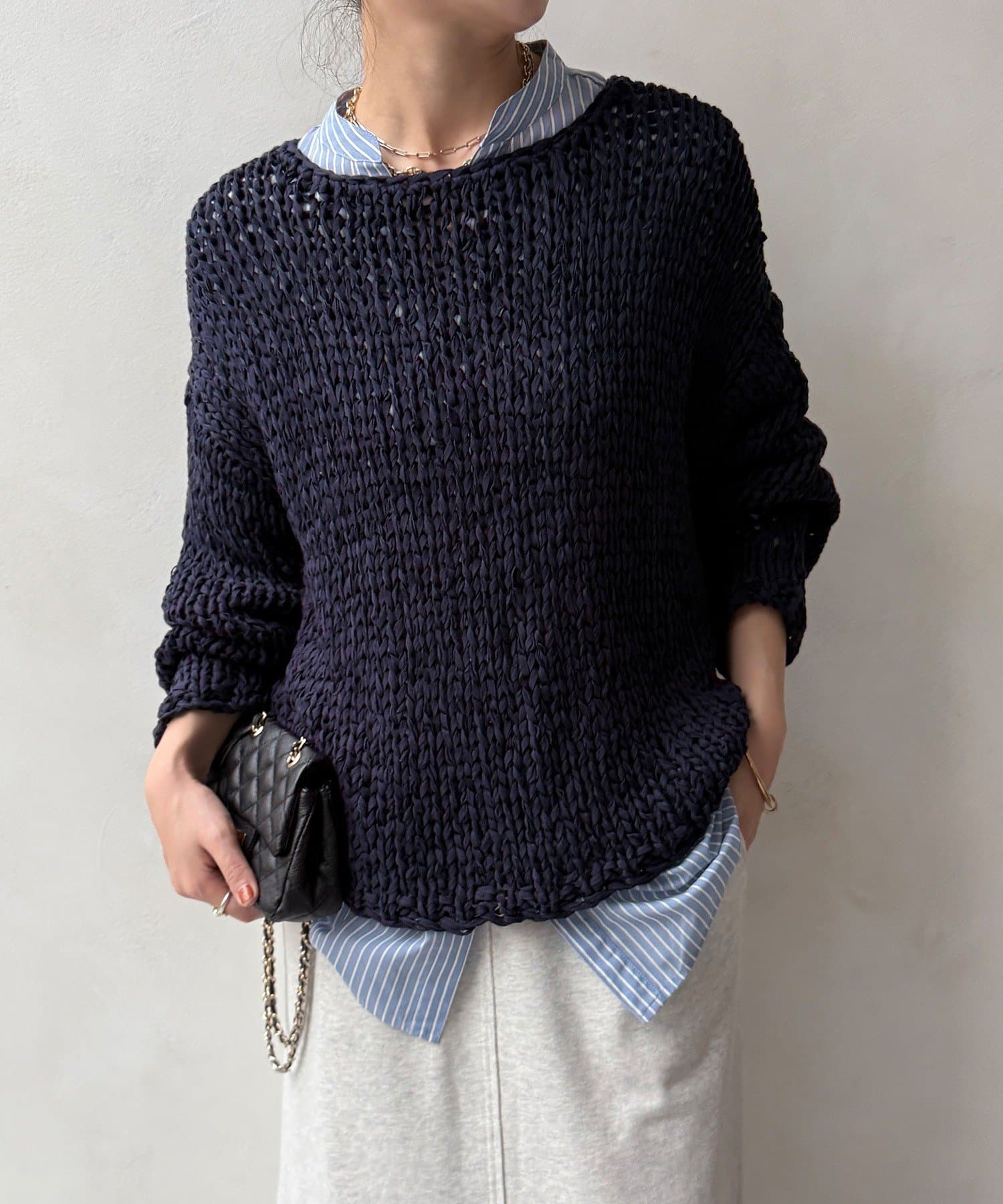 機械編みでは出せないざっくりとした編み地と立体感が魅力のハンドメイドニット。