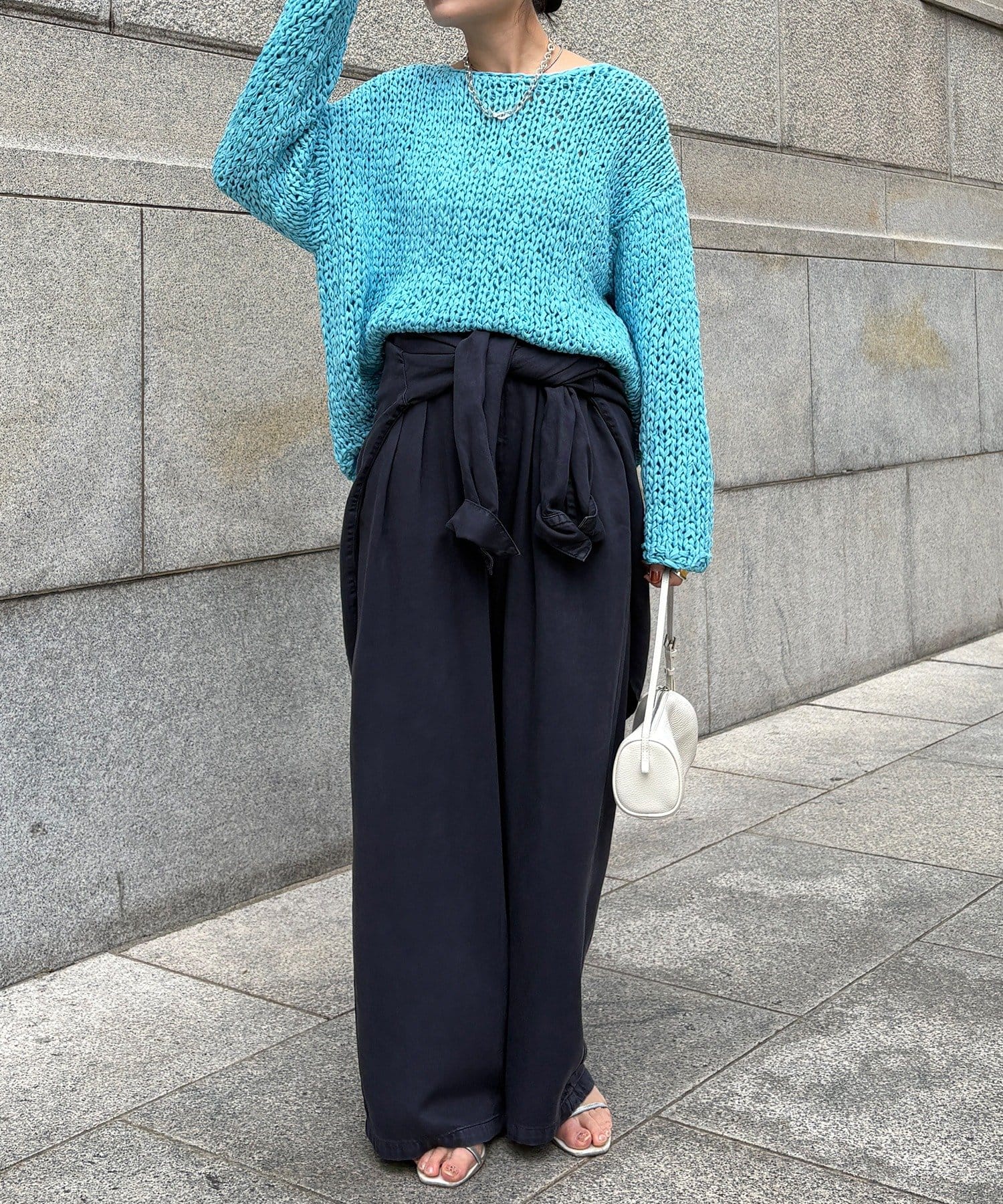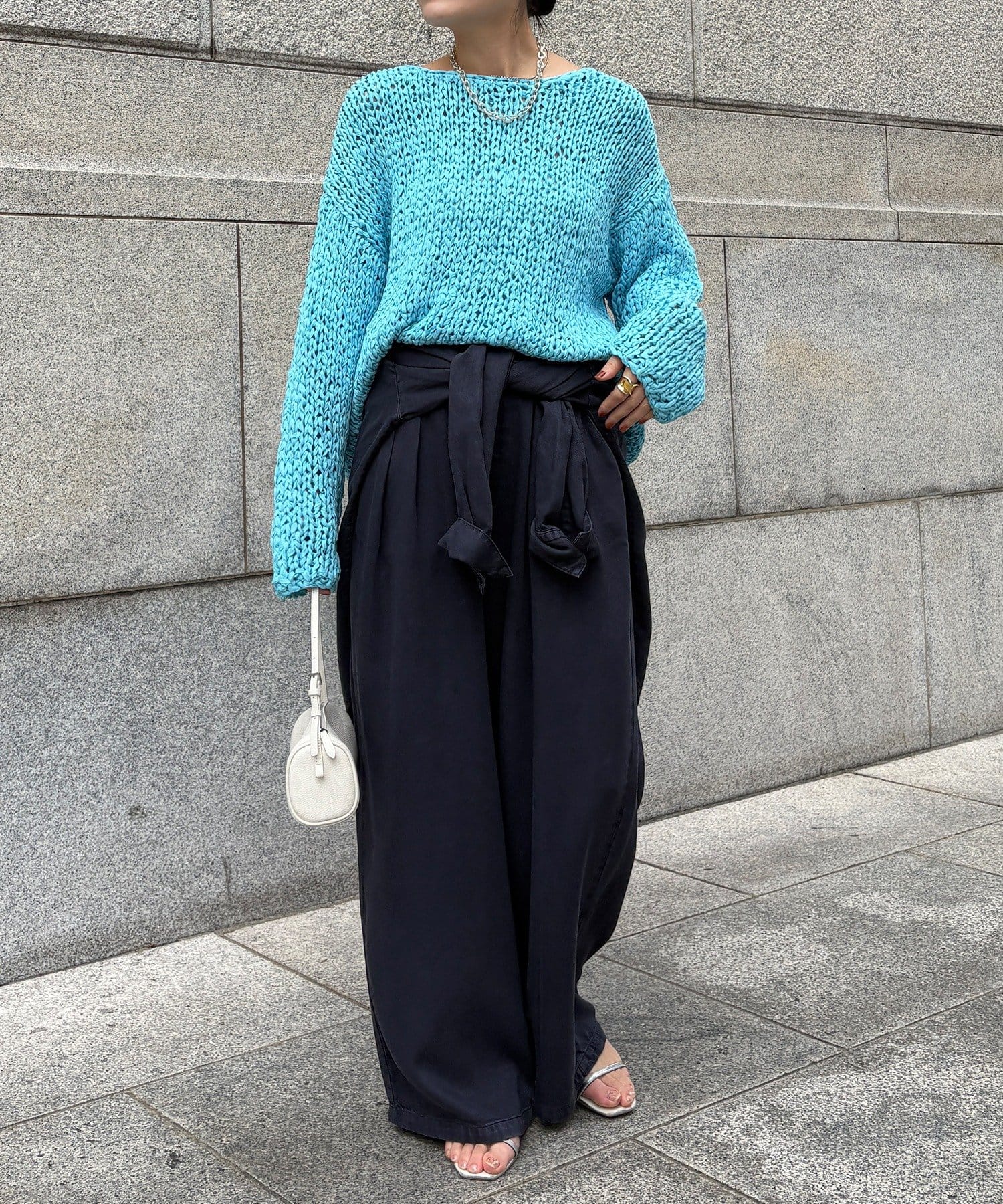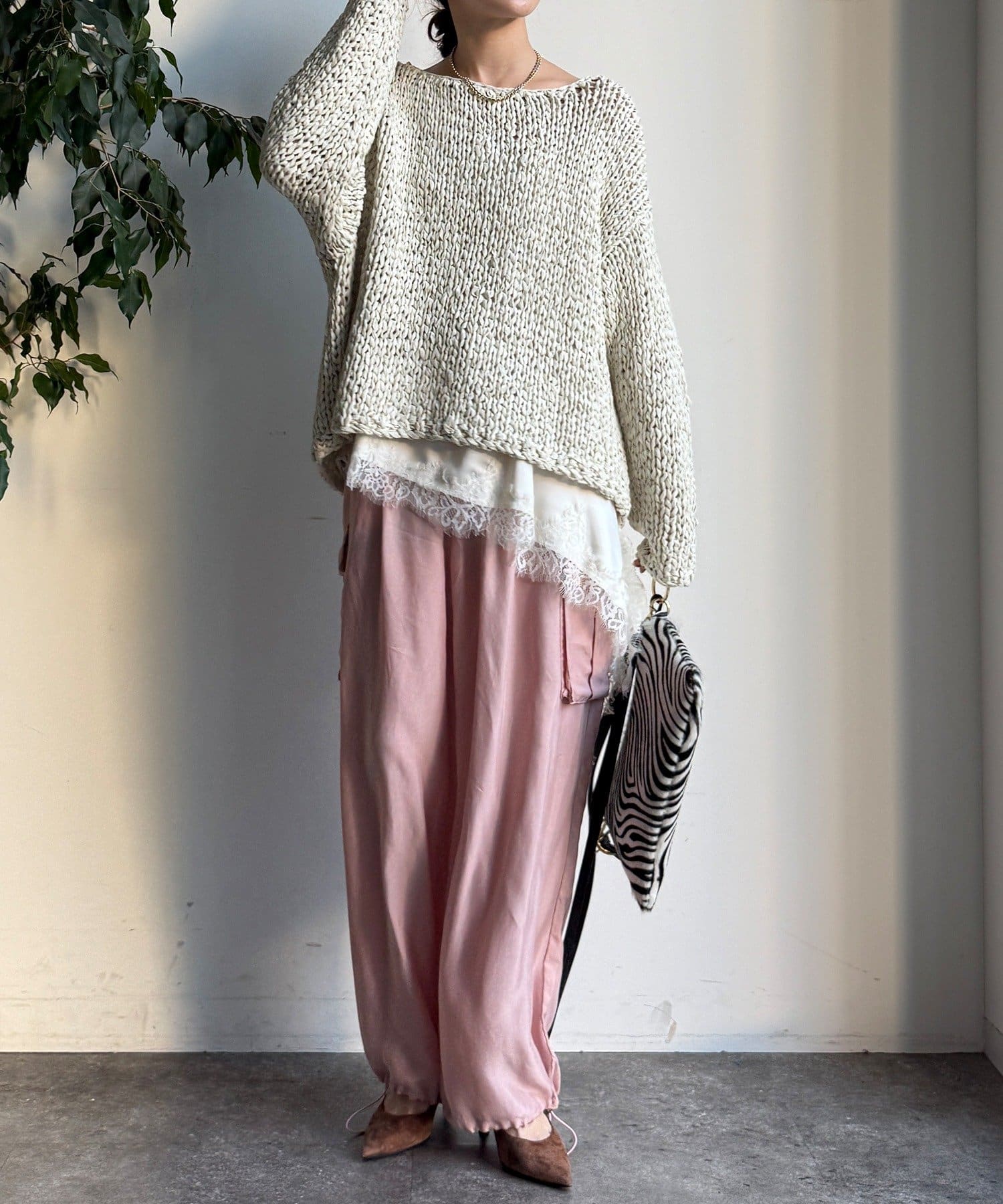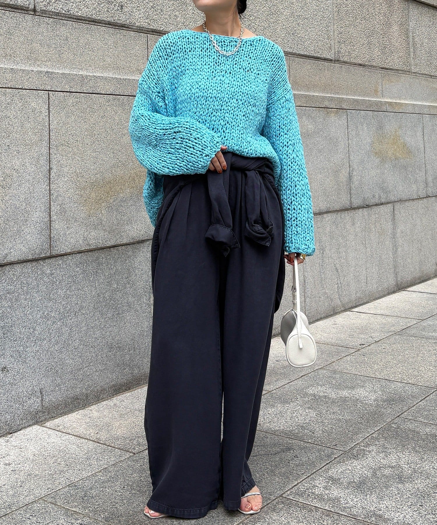 機械編みでは出せないざっくりとした編み地と立体感が魅力のハンドメイドニット。