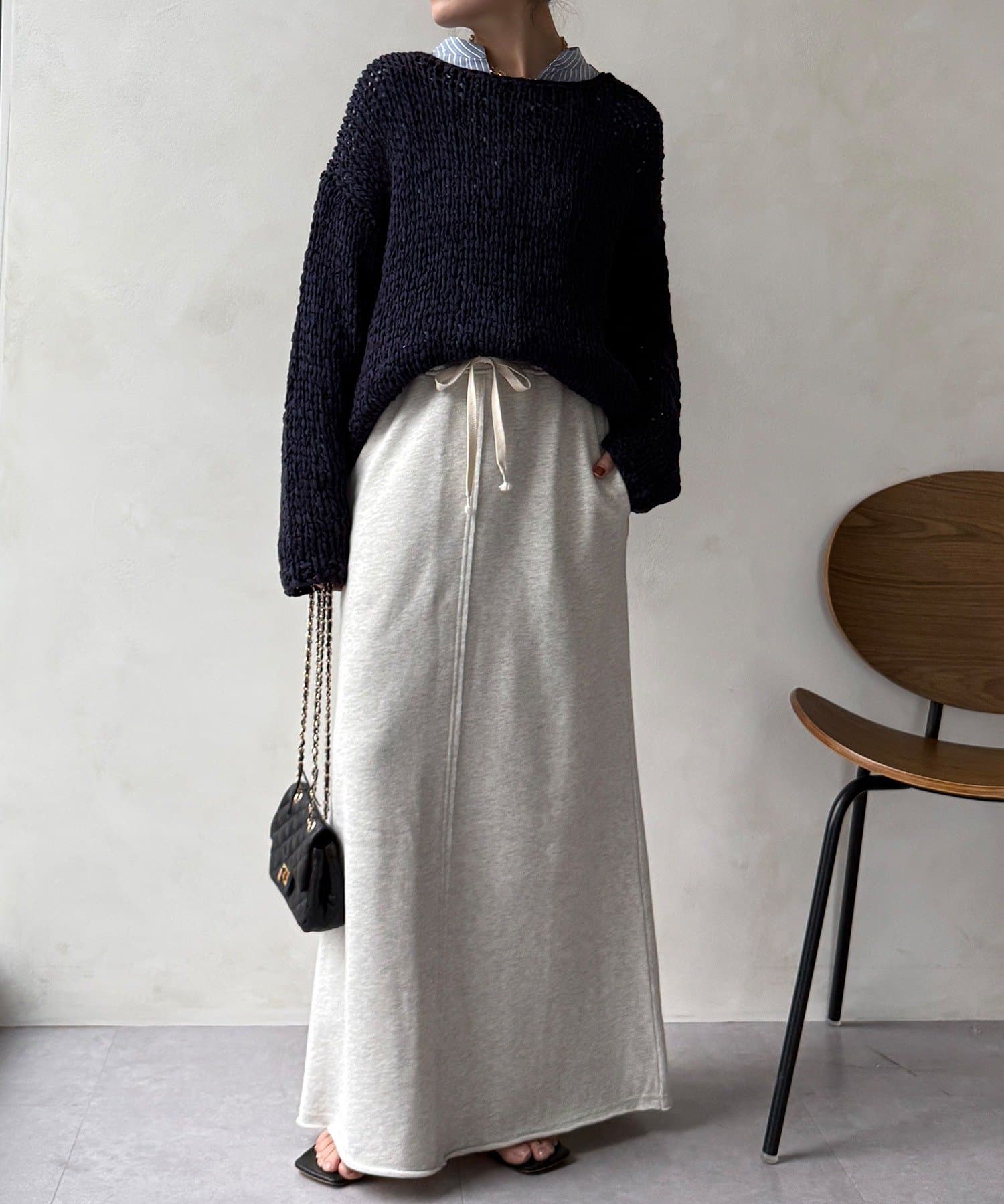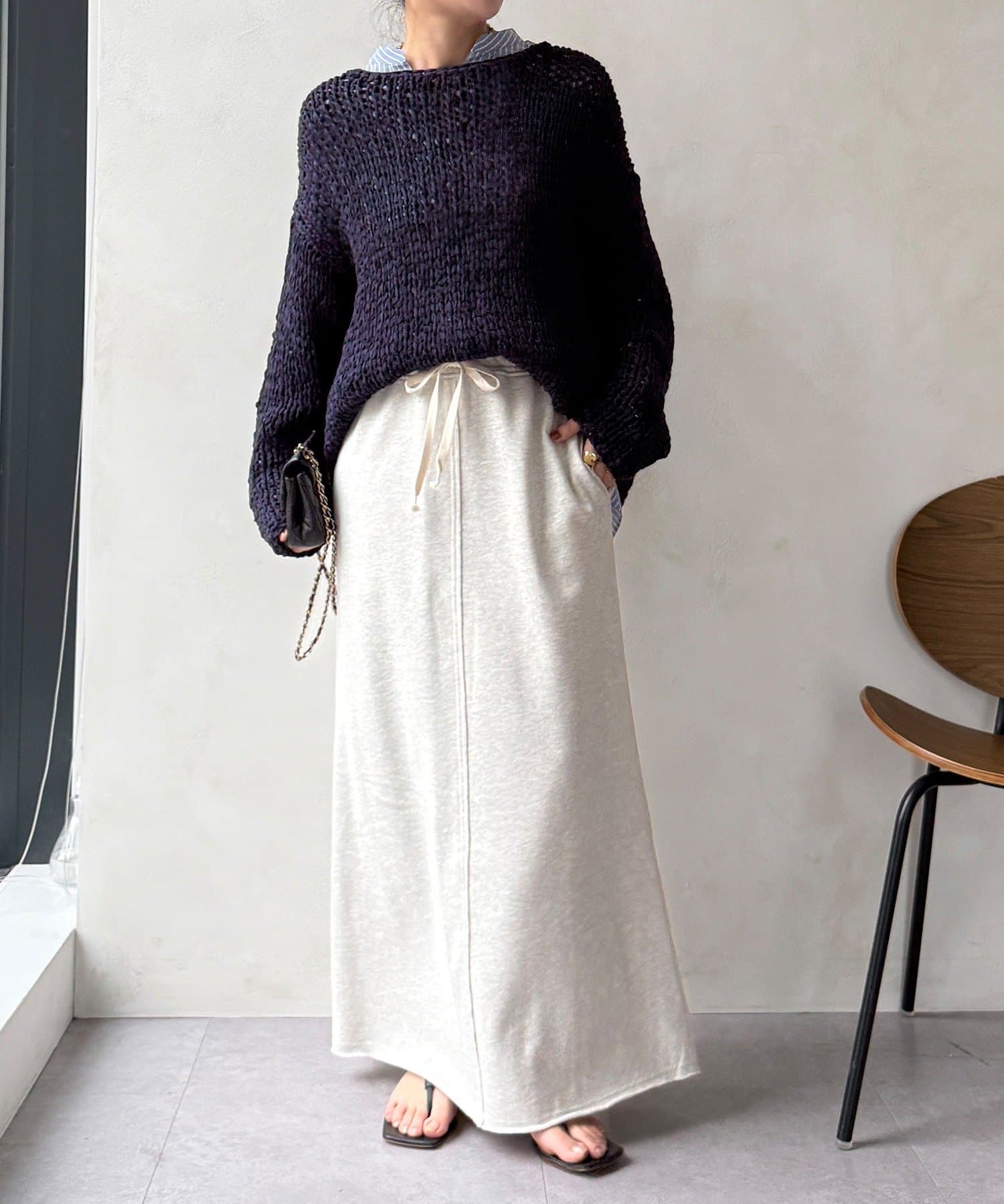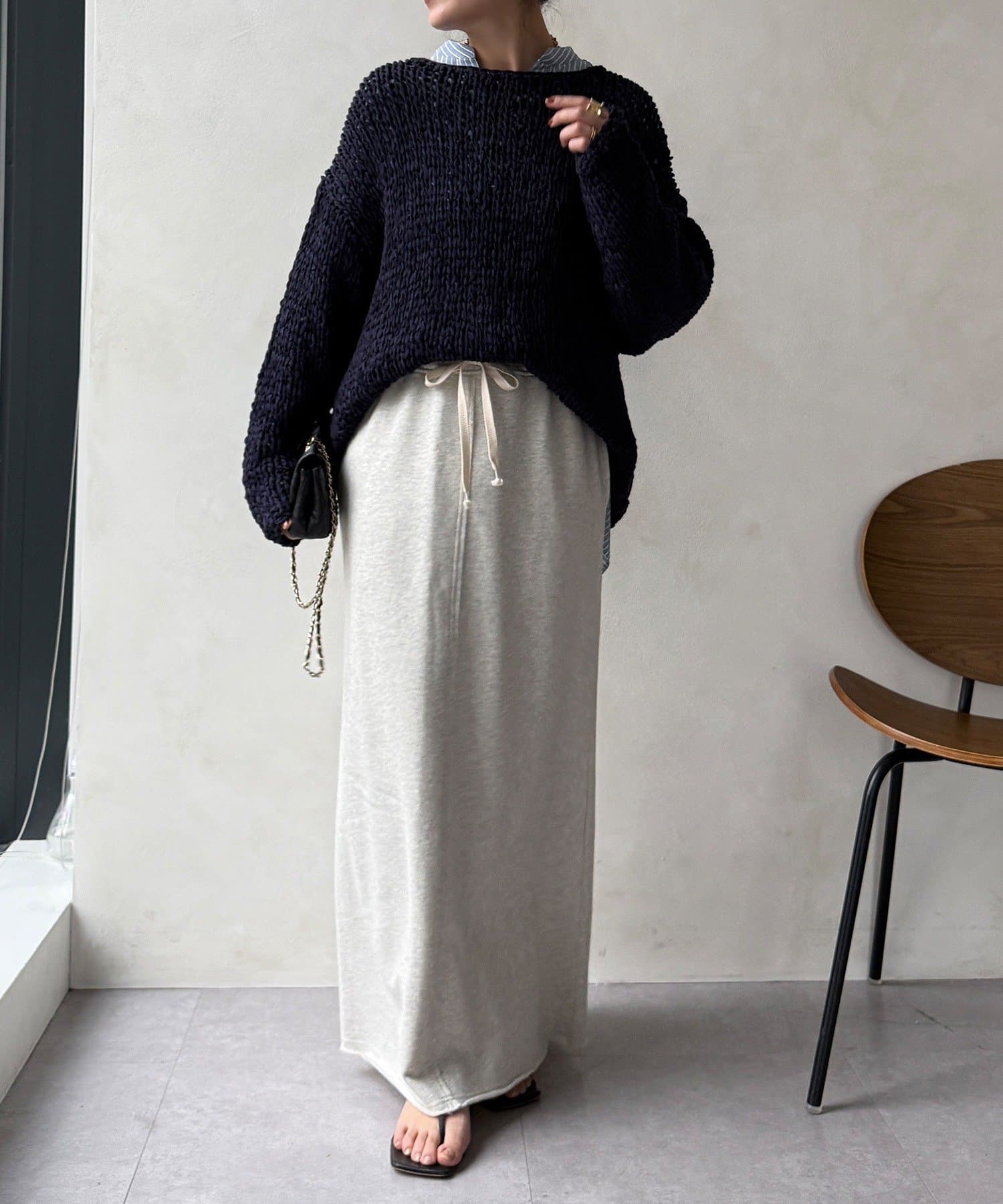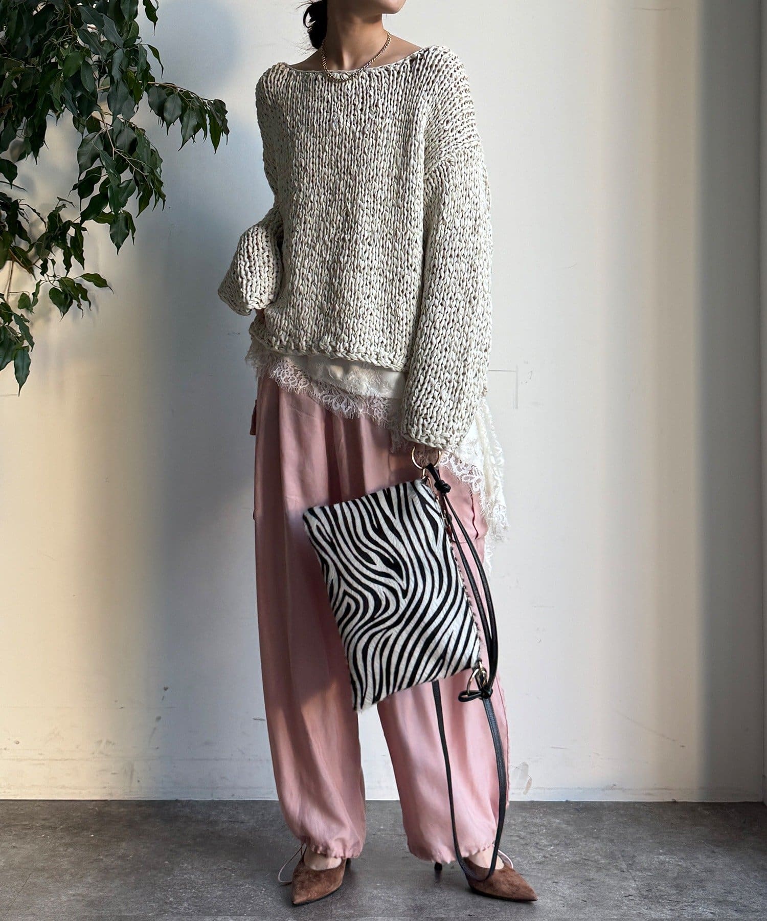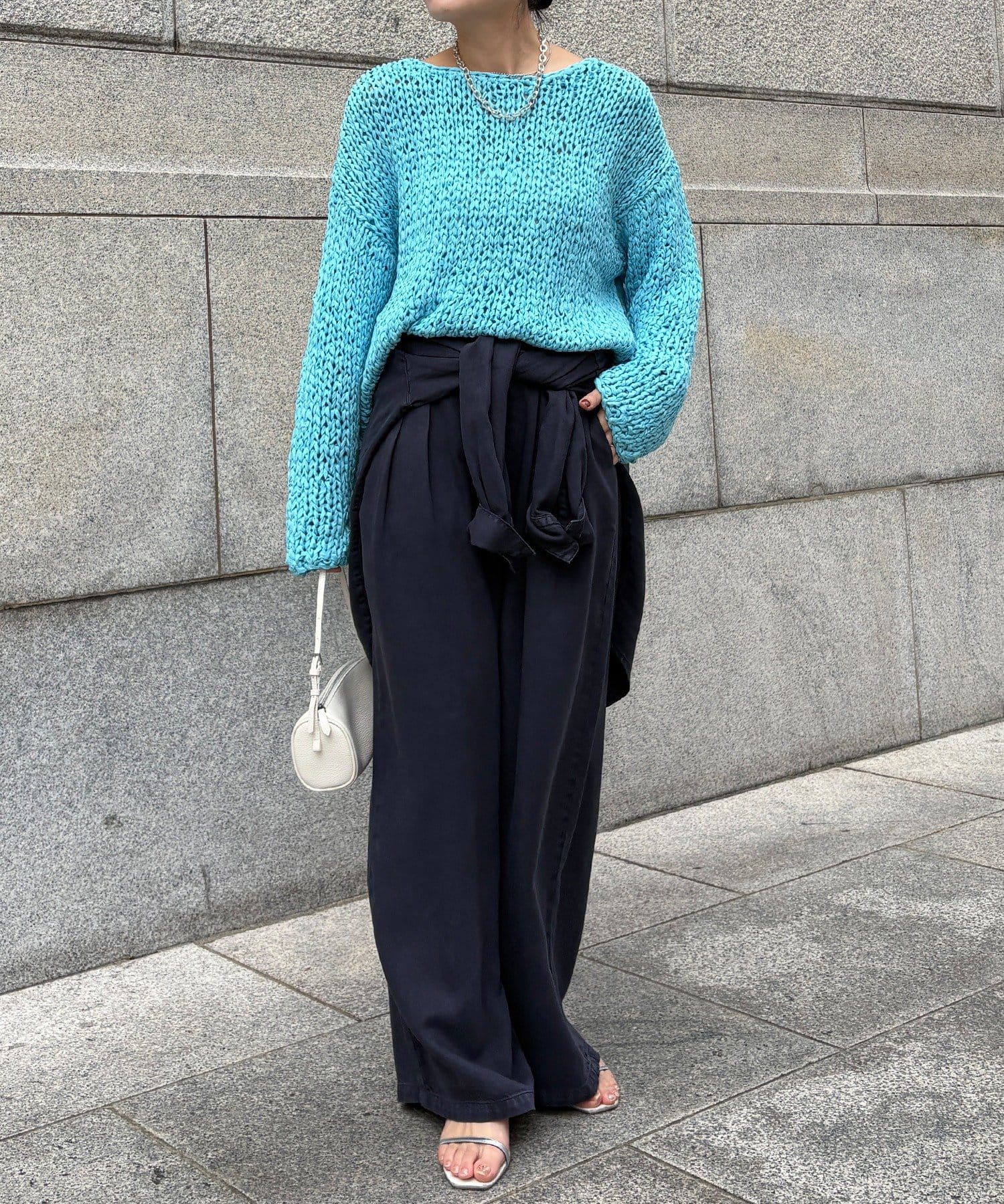 機械編みでは出せないざっくりとした編み地と立体感が魅力のハンドメイドニット。