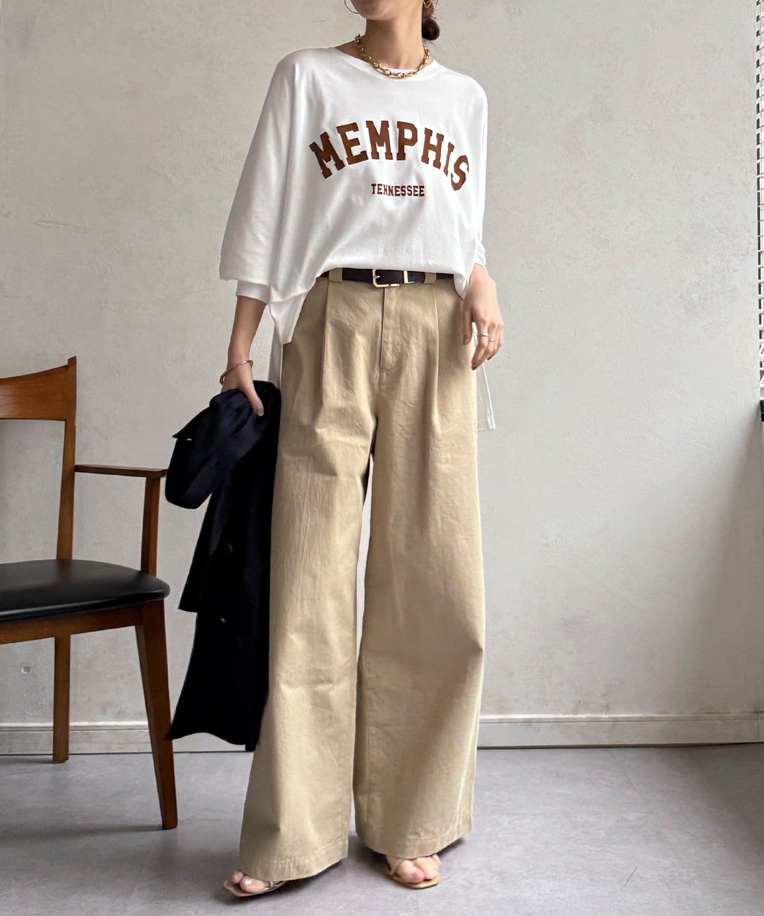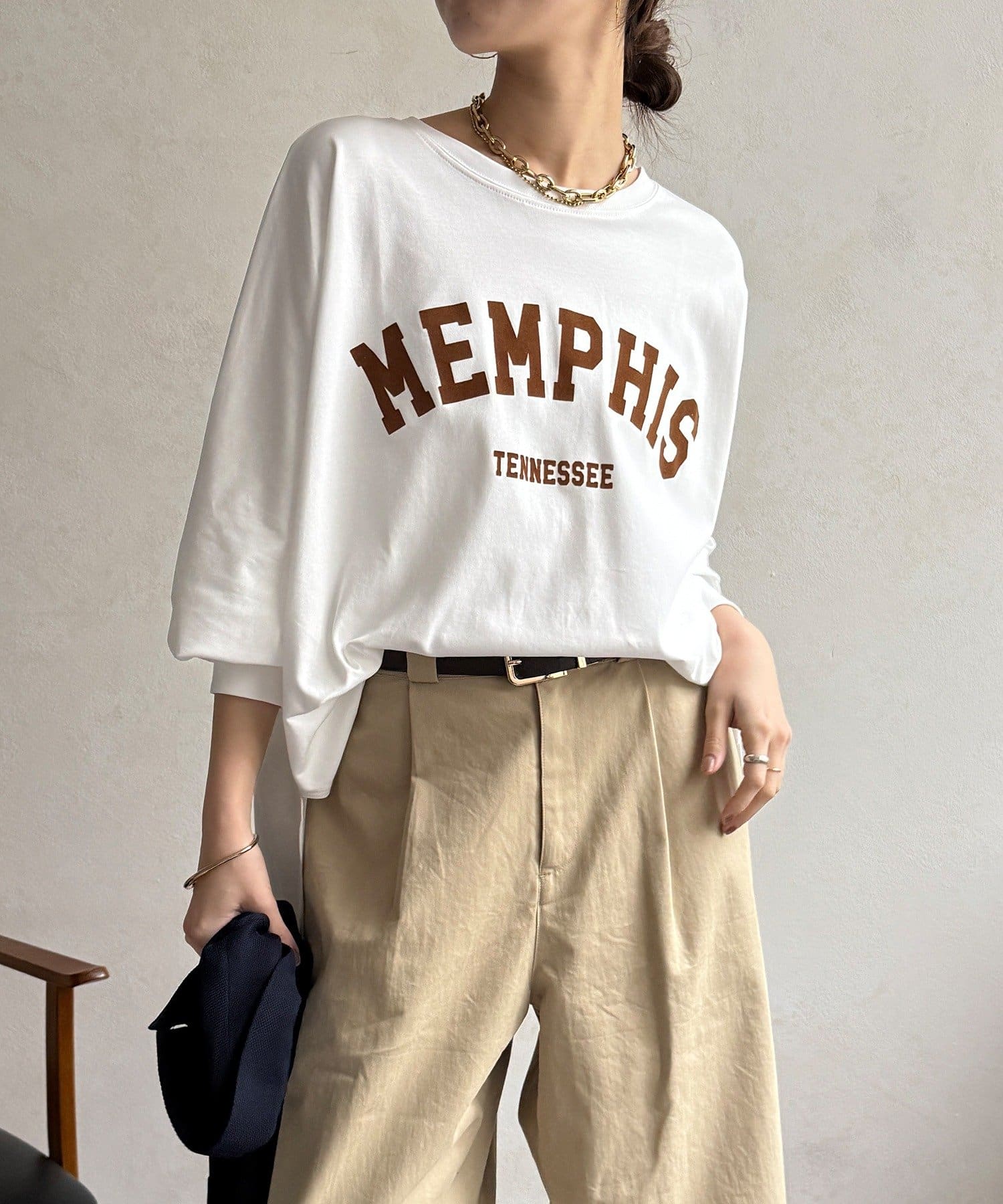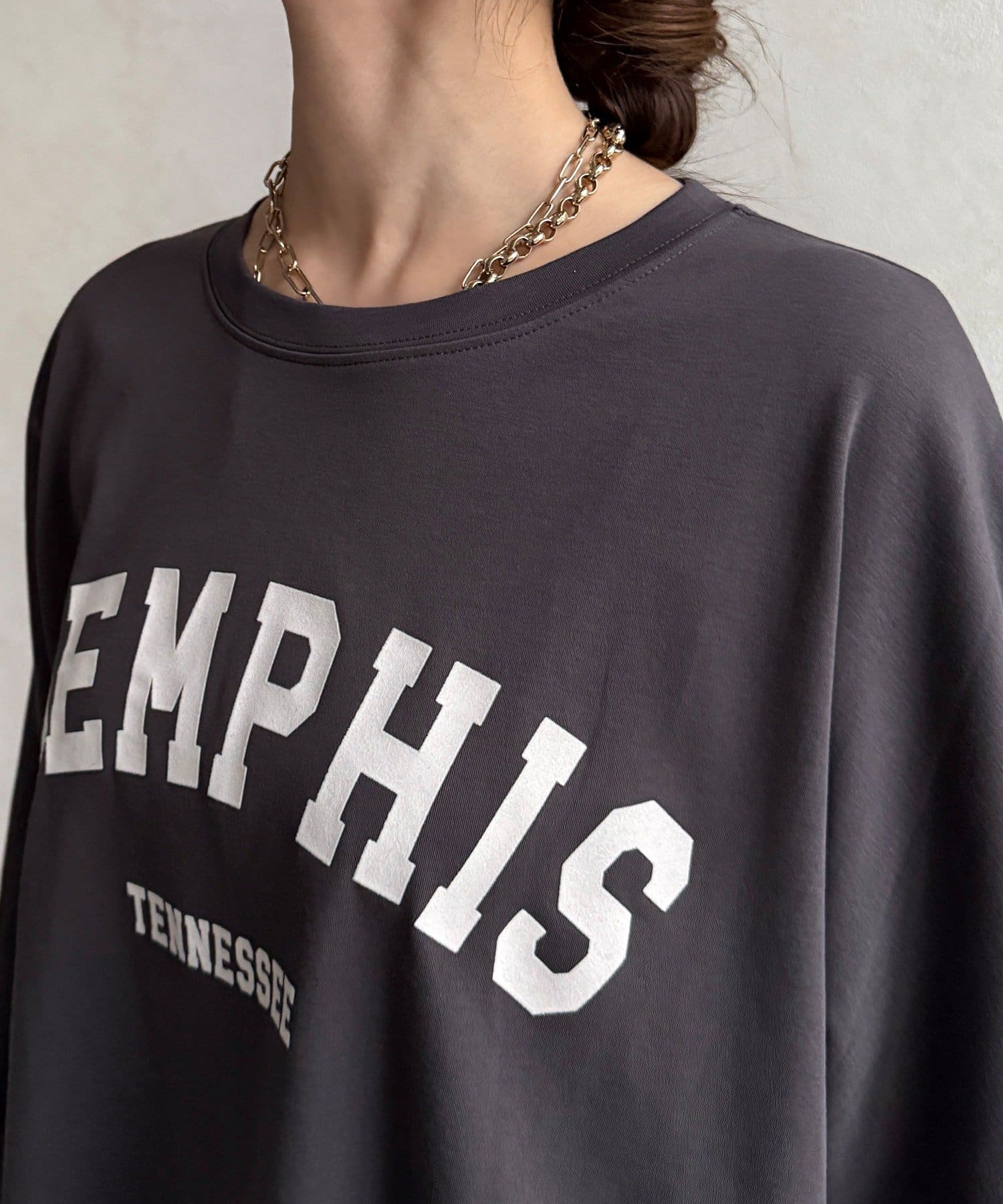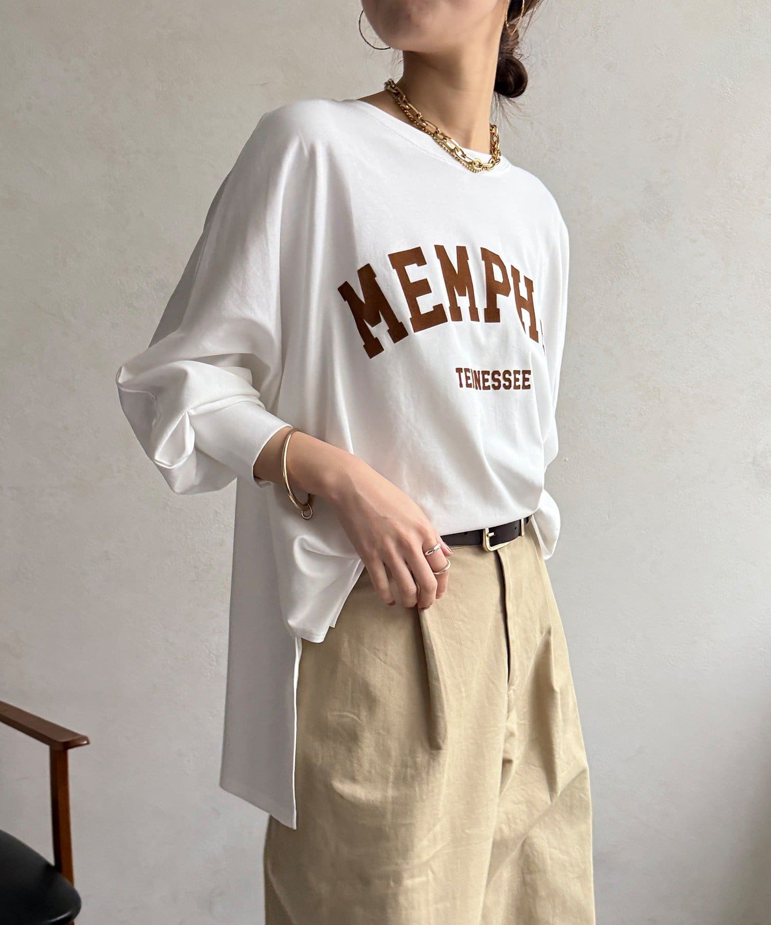 TOP > DOUDOU > レディース > トップス > Tシャツ/カットソー > 【WEB限定】MEMPHISドルマンロゴロンTEE