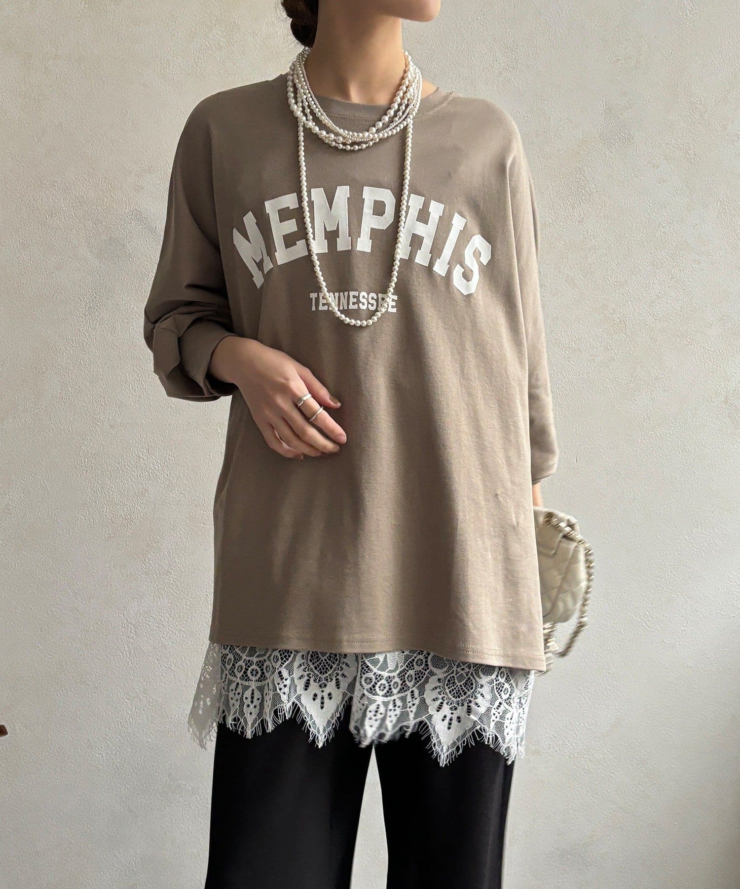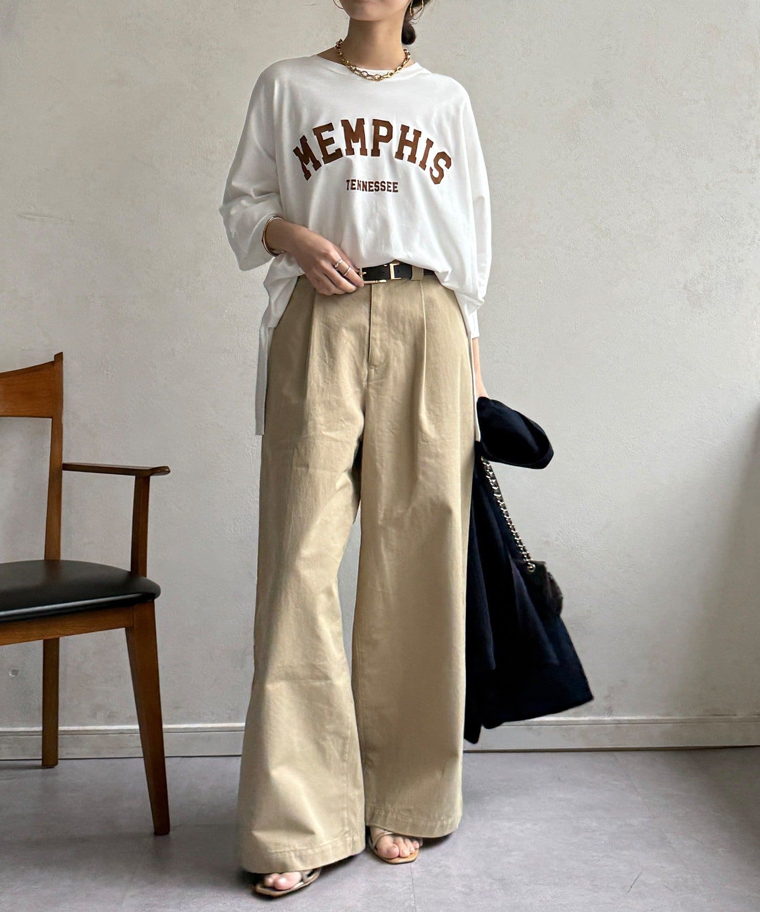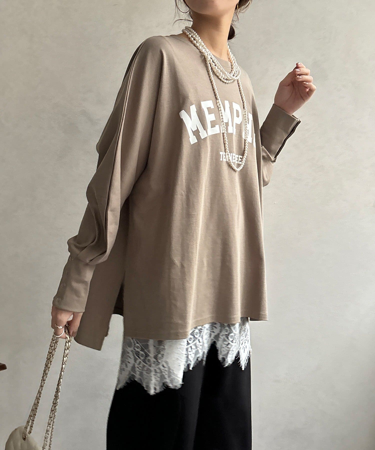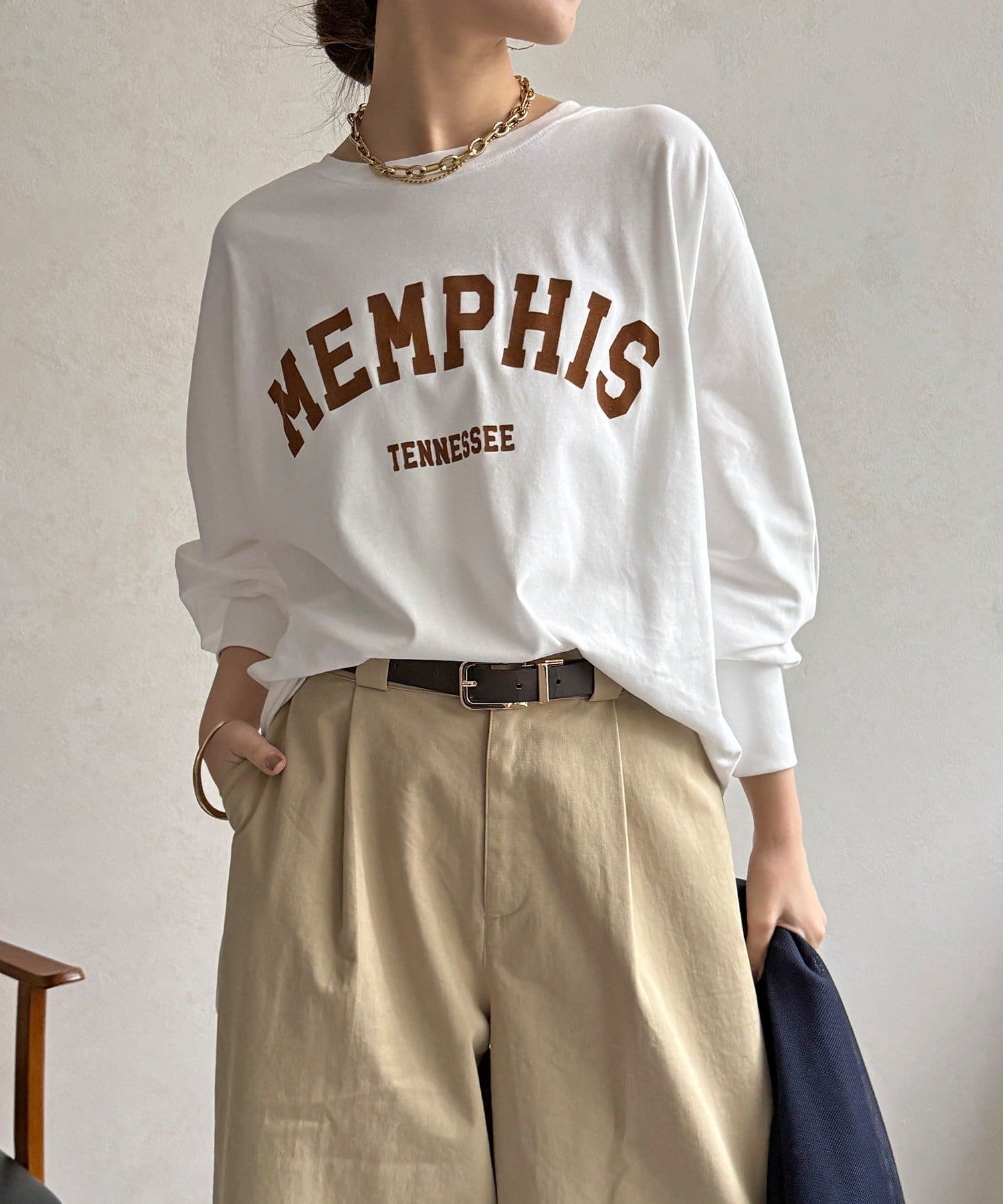 TOP > DOUDOU > レディース > トップス > Tシャツ/カットソー > 【WEB限定】MEMPHISドルマンロゴロンTEE