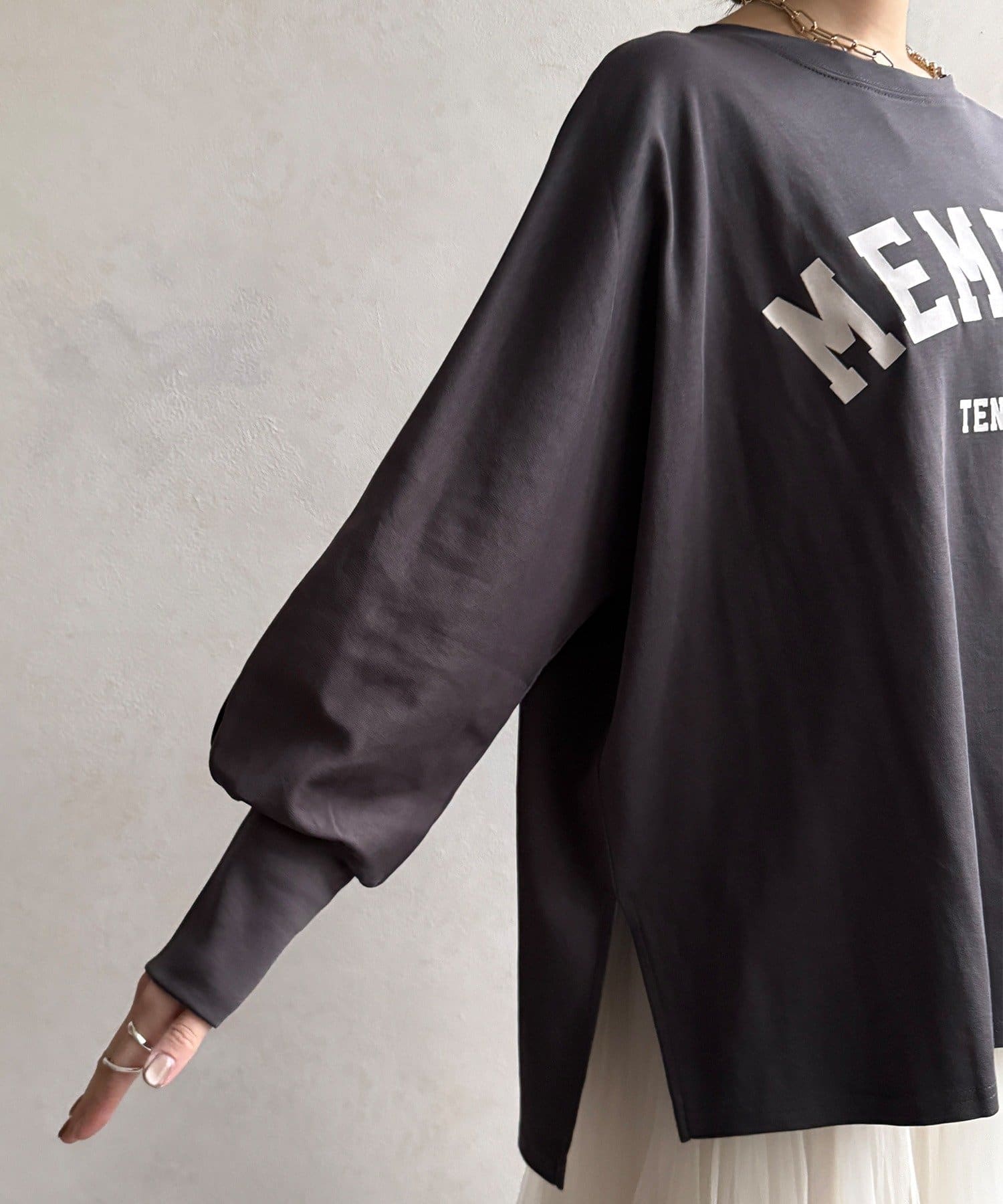 ドルマンスリーブで快適な着心地を与えてくれるロンTEE