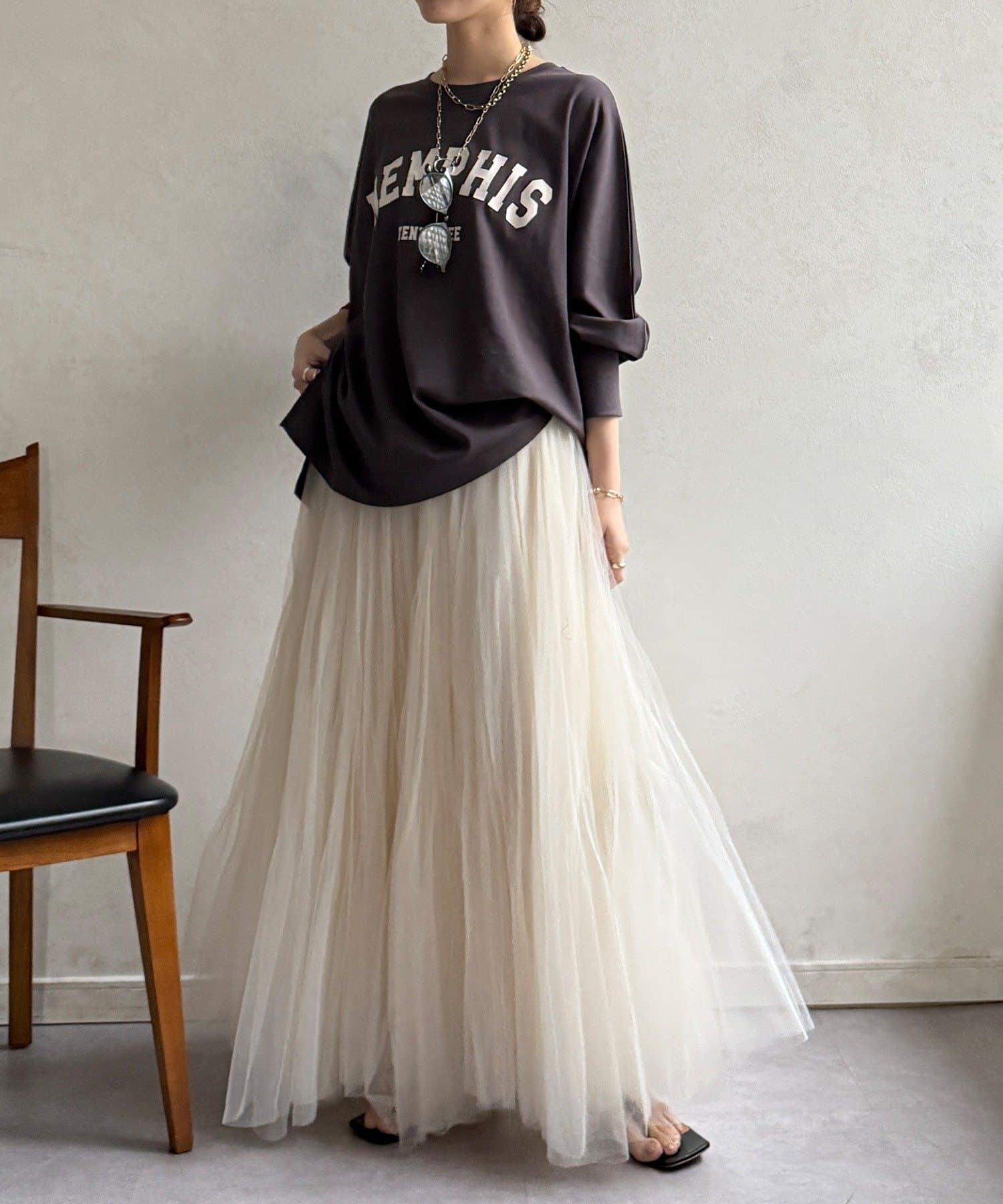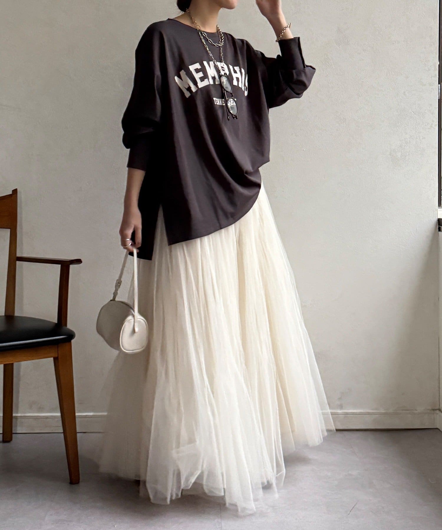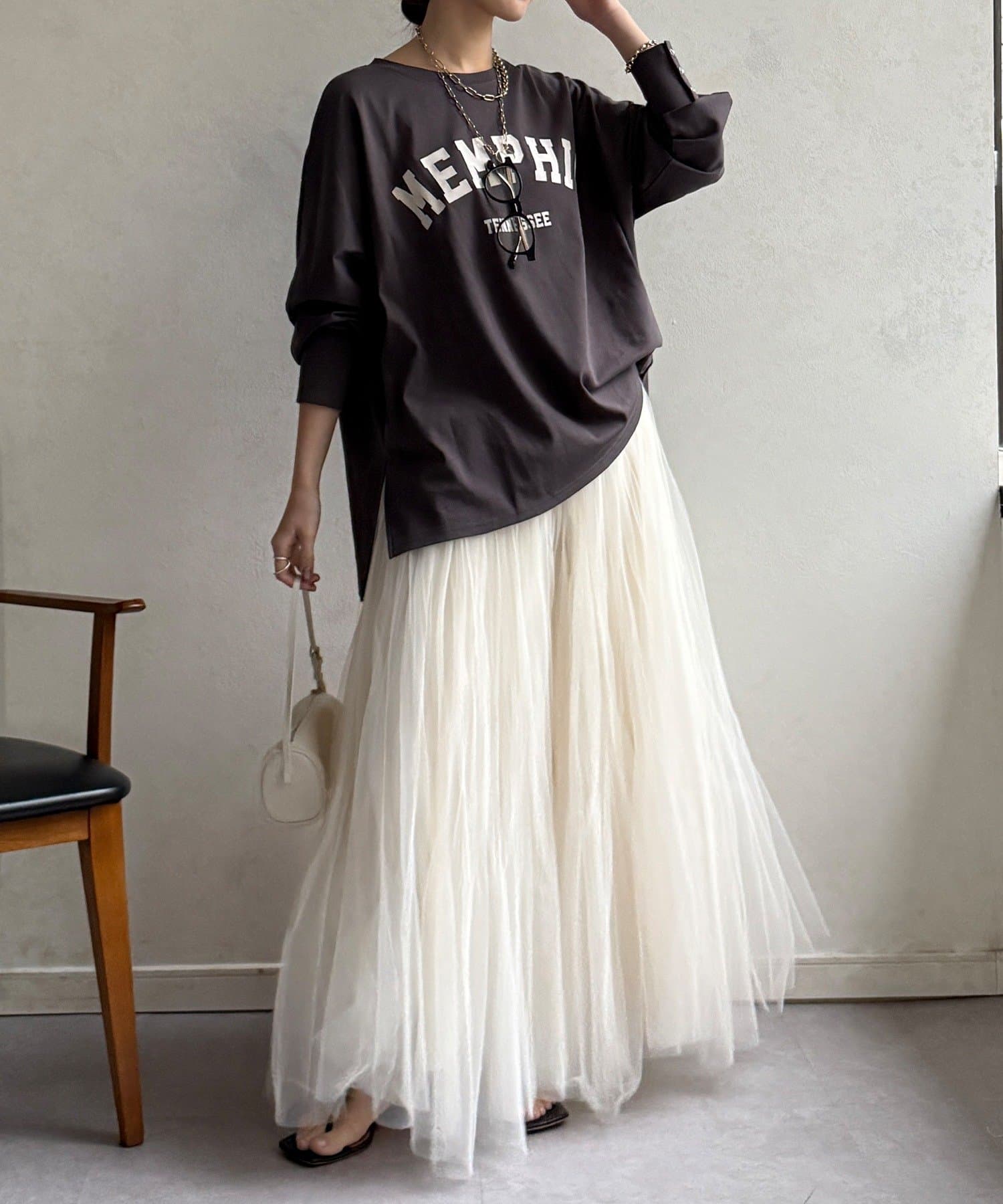・ゆったりしたシルエットでレイヤードしやすい