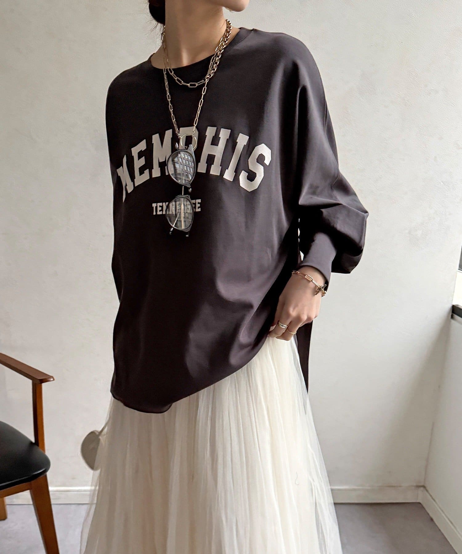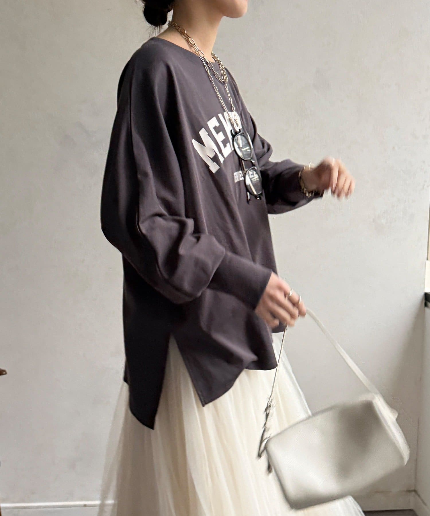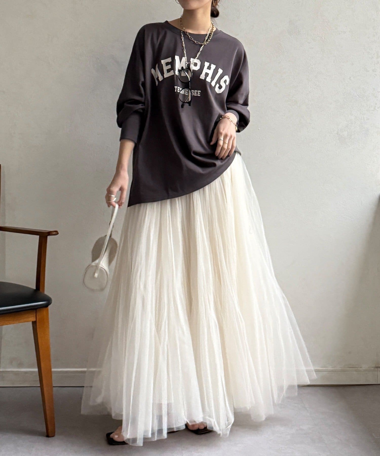 ・ゆったりしたシルエットでレイヤードしやすい