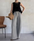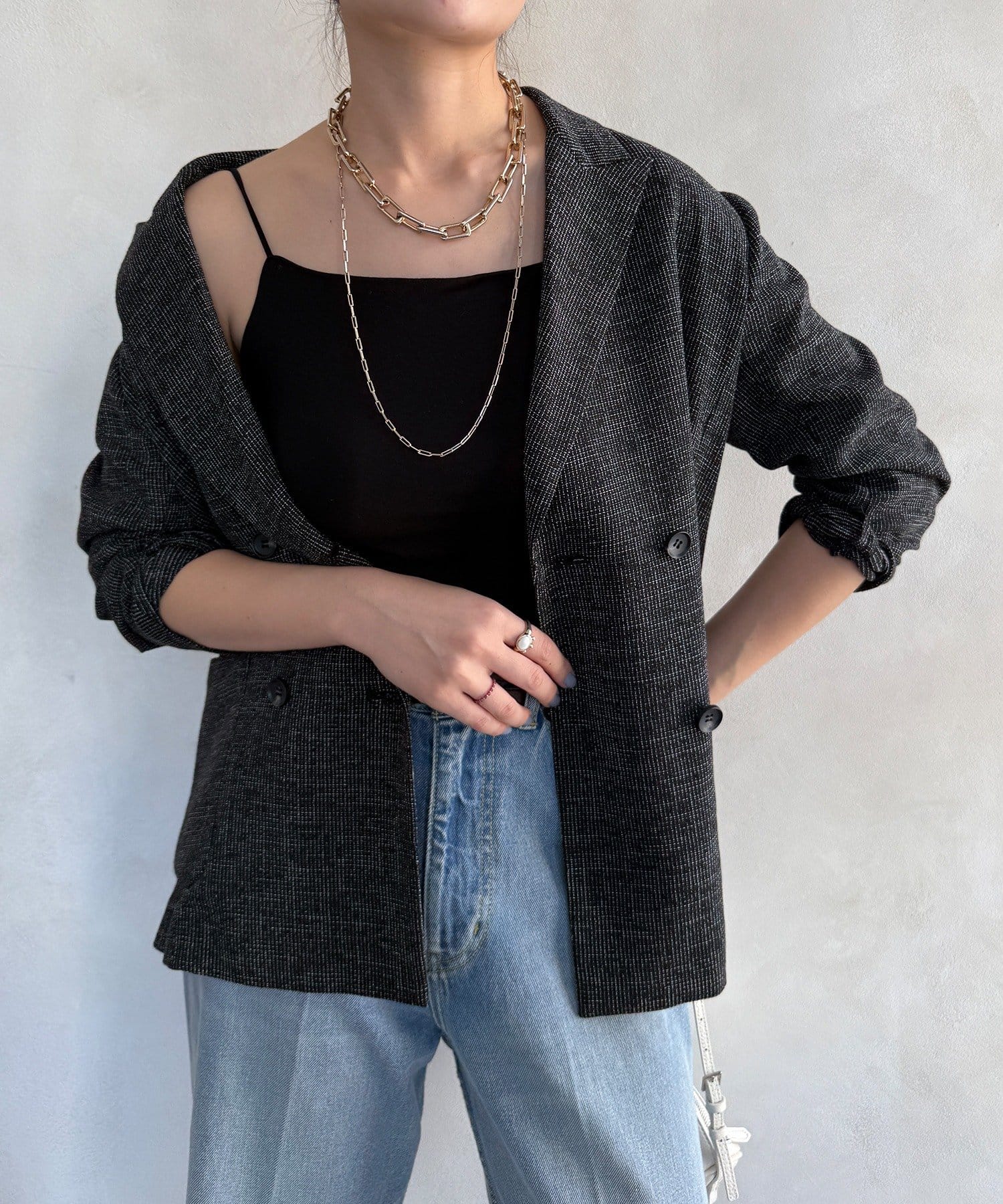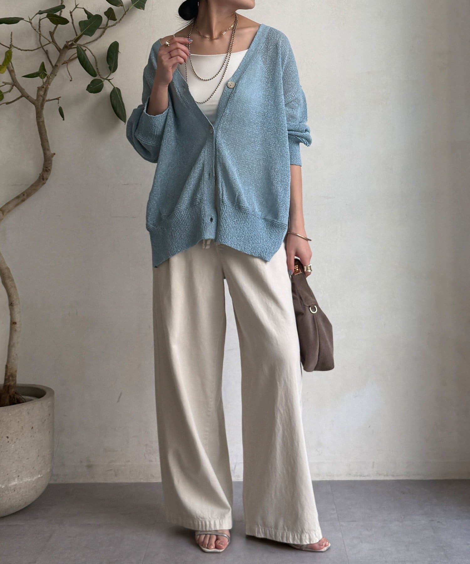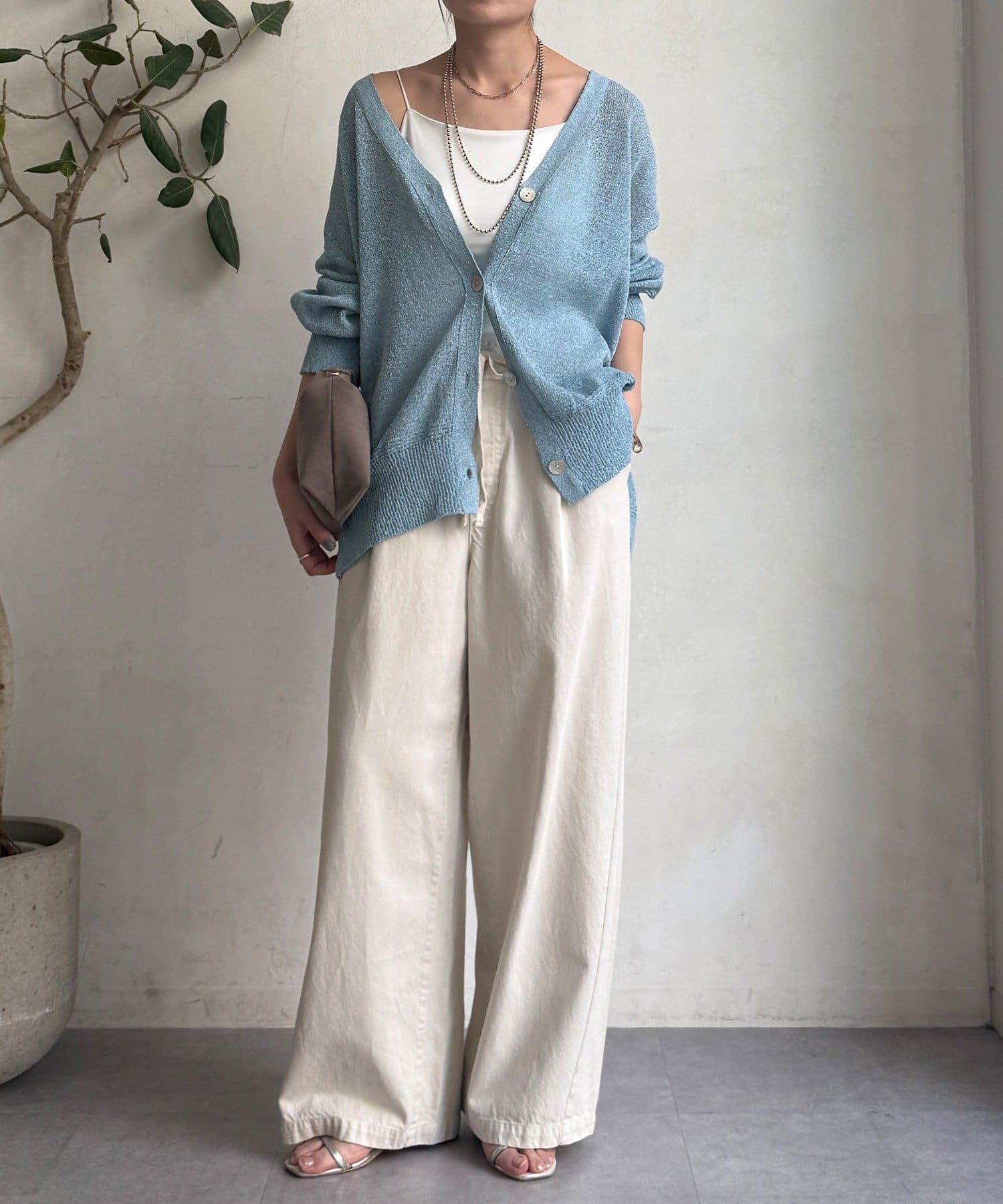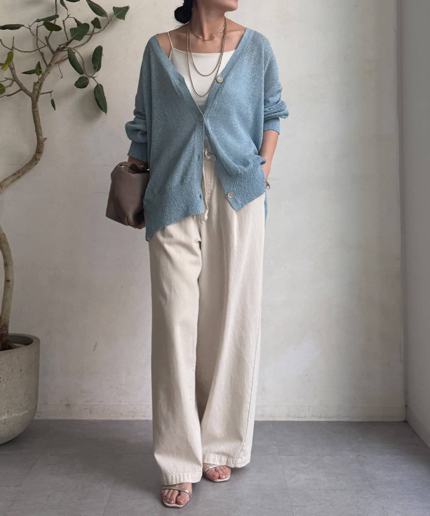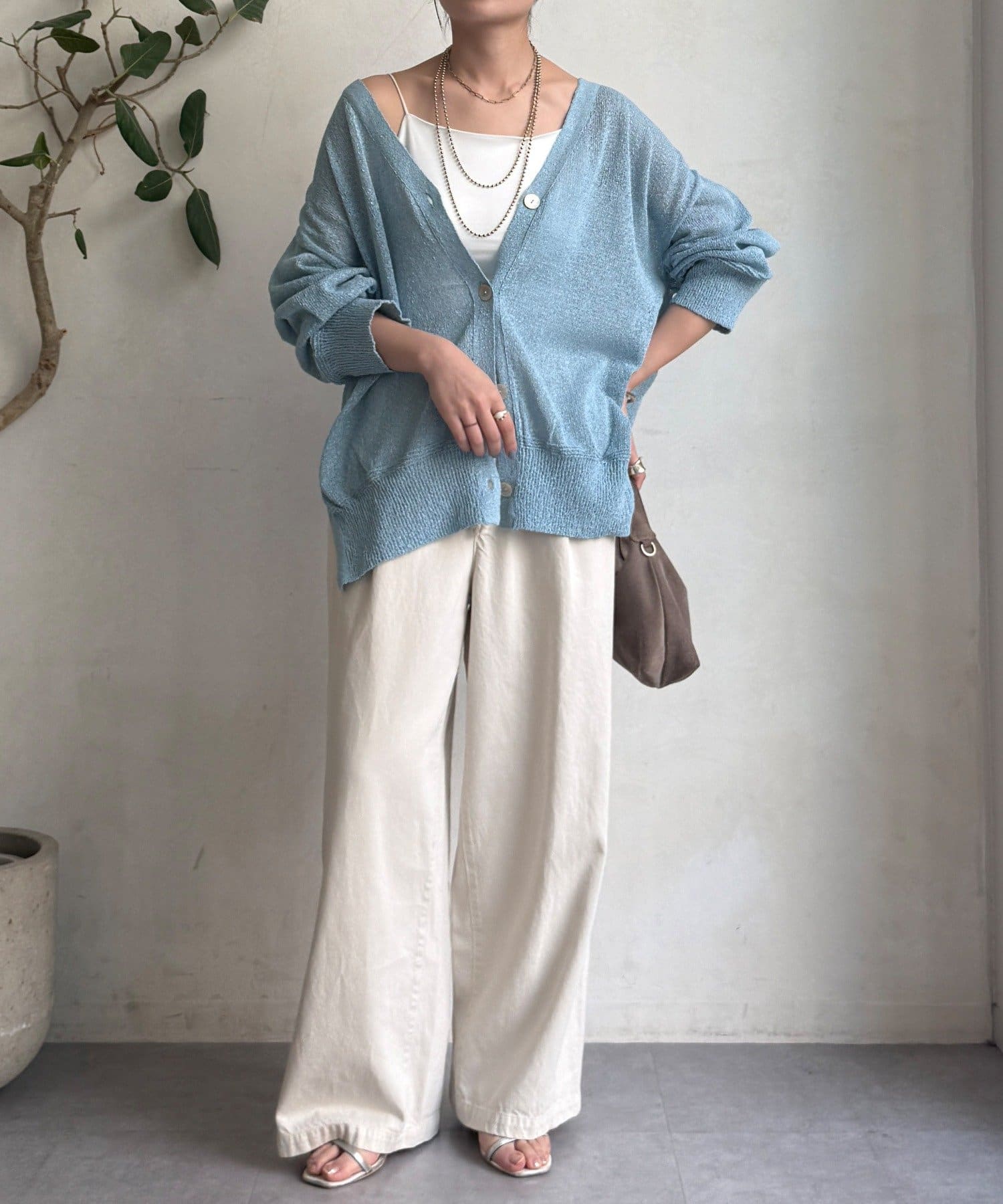 ネックレスなどアクセサリーを付けるとよりこなれな印象に!