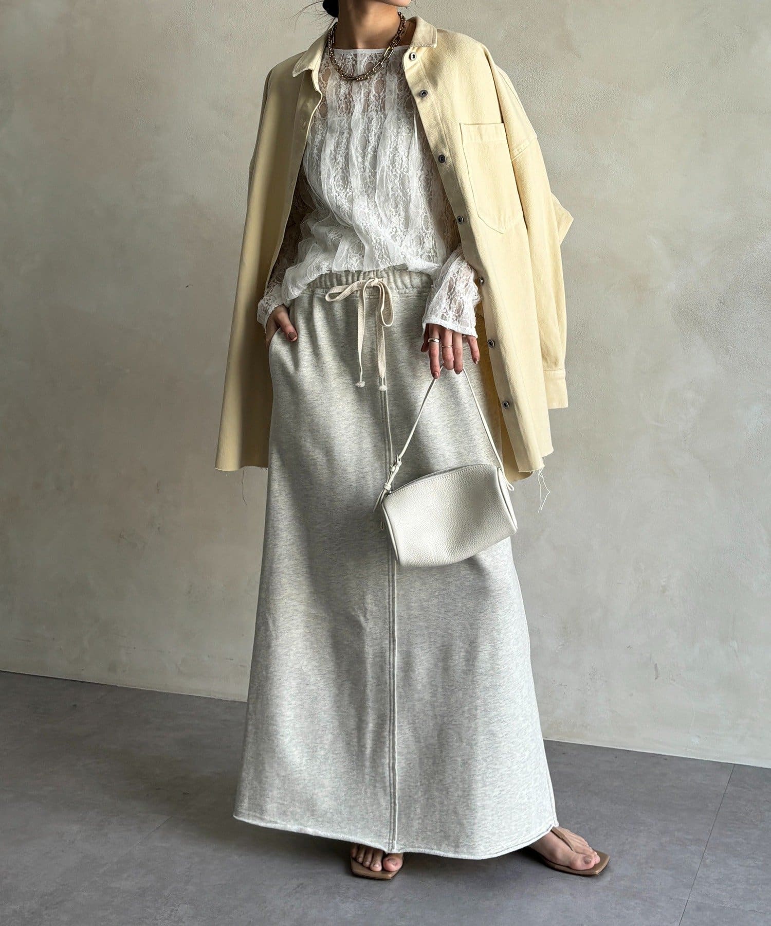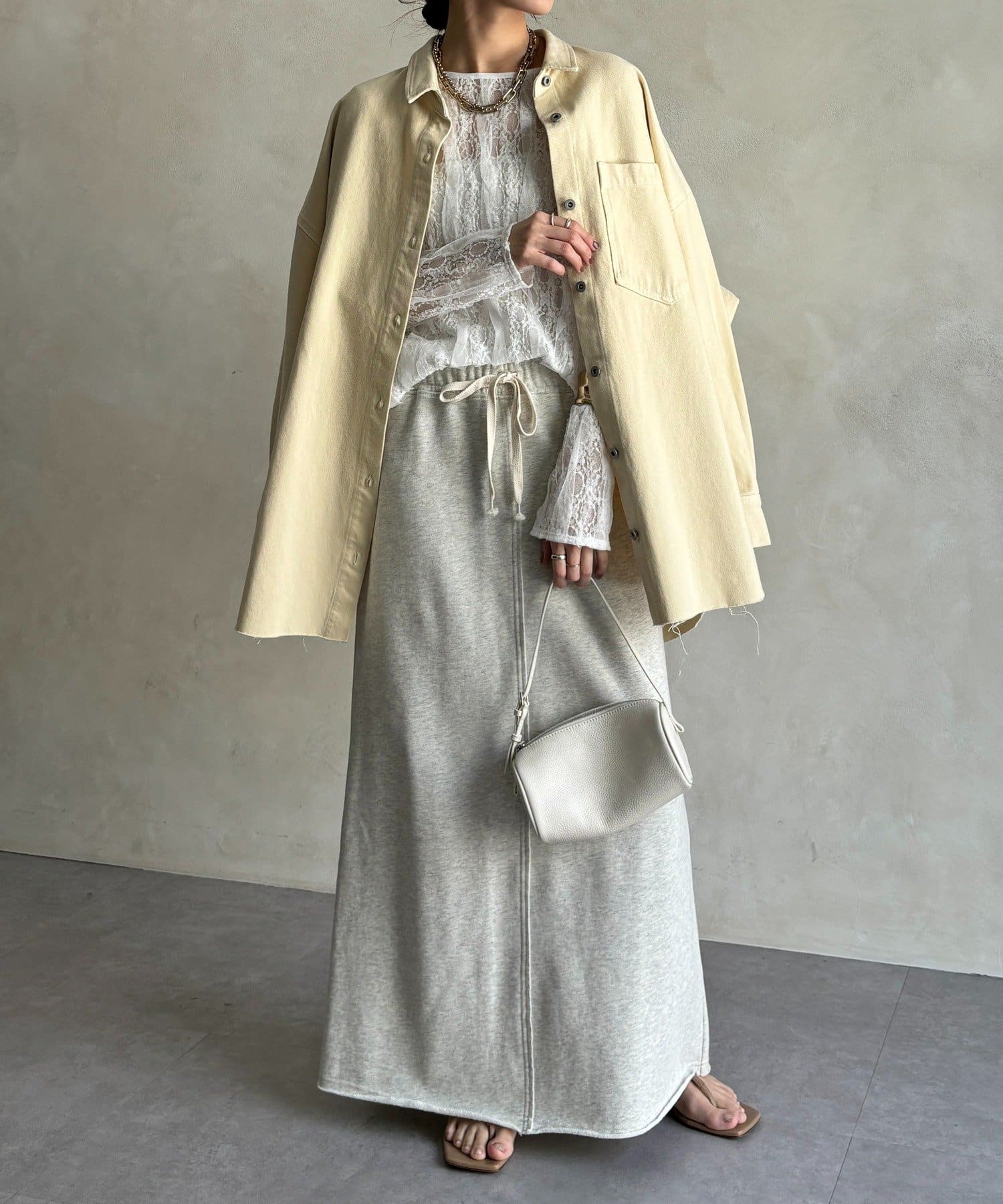 シルエットは身体のラインを拾いすぎず、程よくリラックスした印象に。