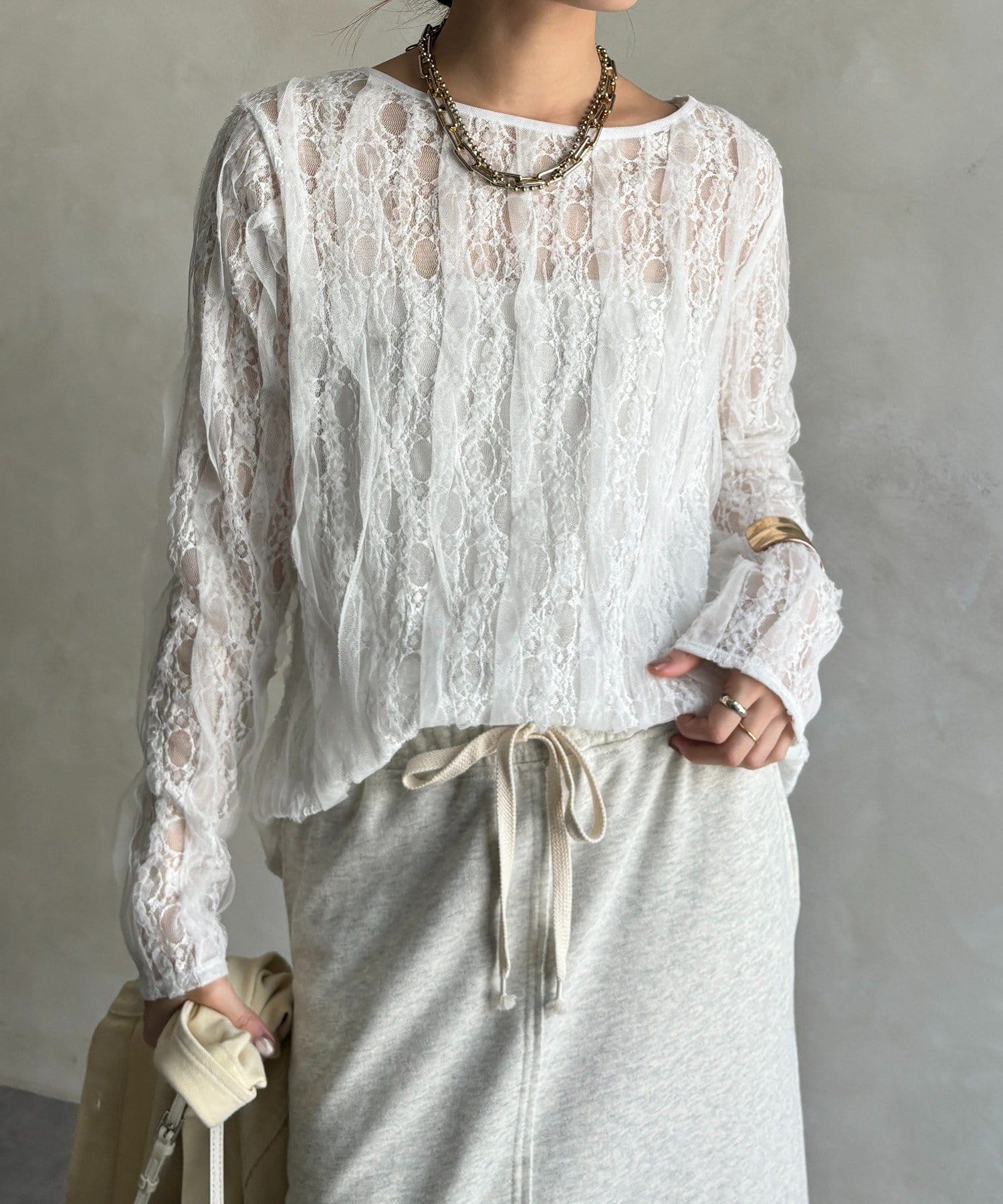 レース特有の華やかさを活かしつつ、ロンTEEの感覚で取り入れられるのが最大のポイント!