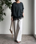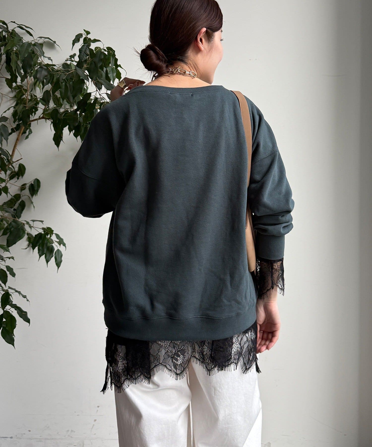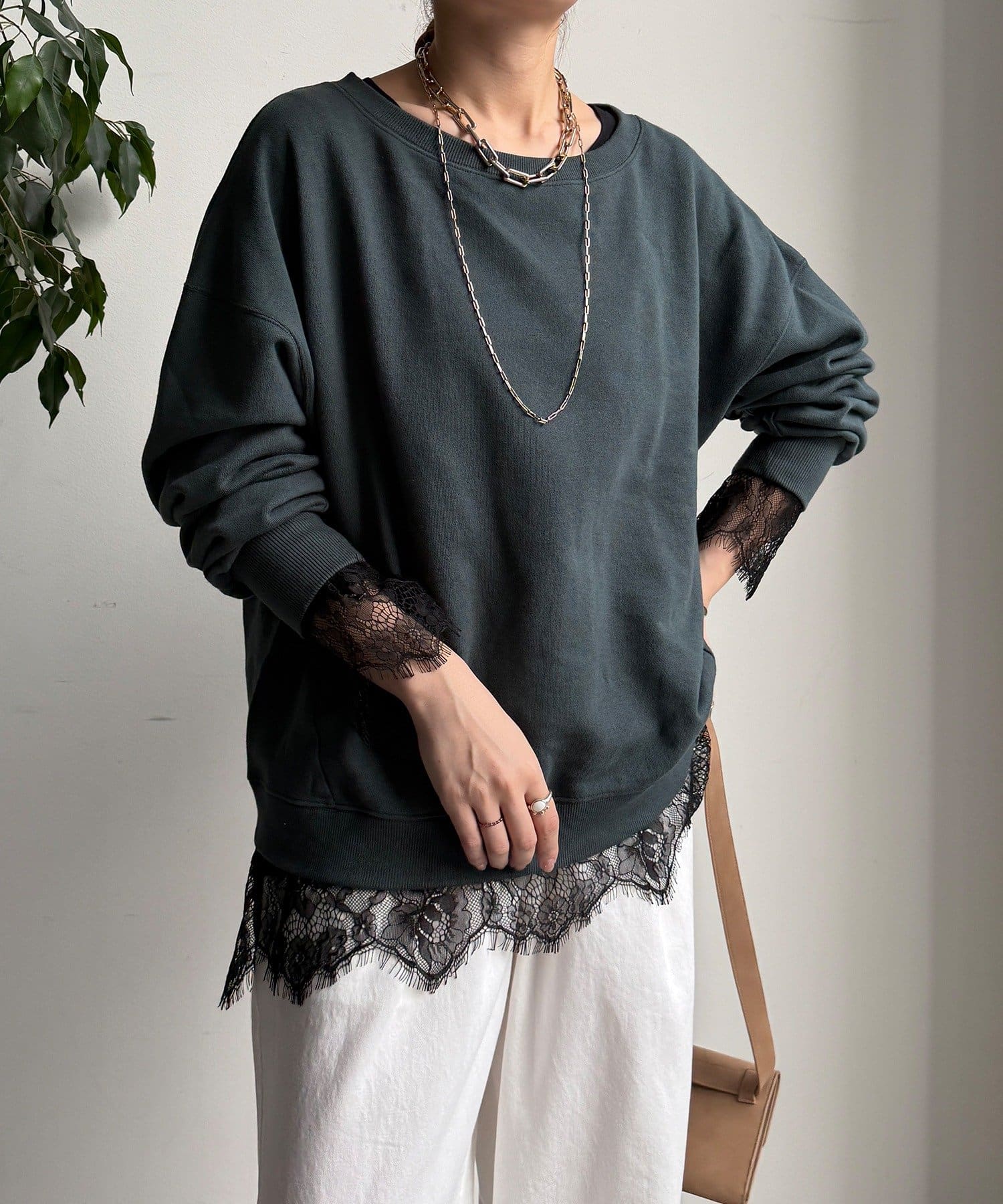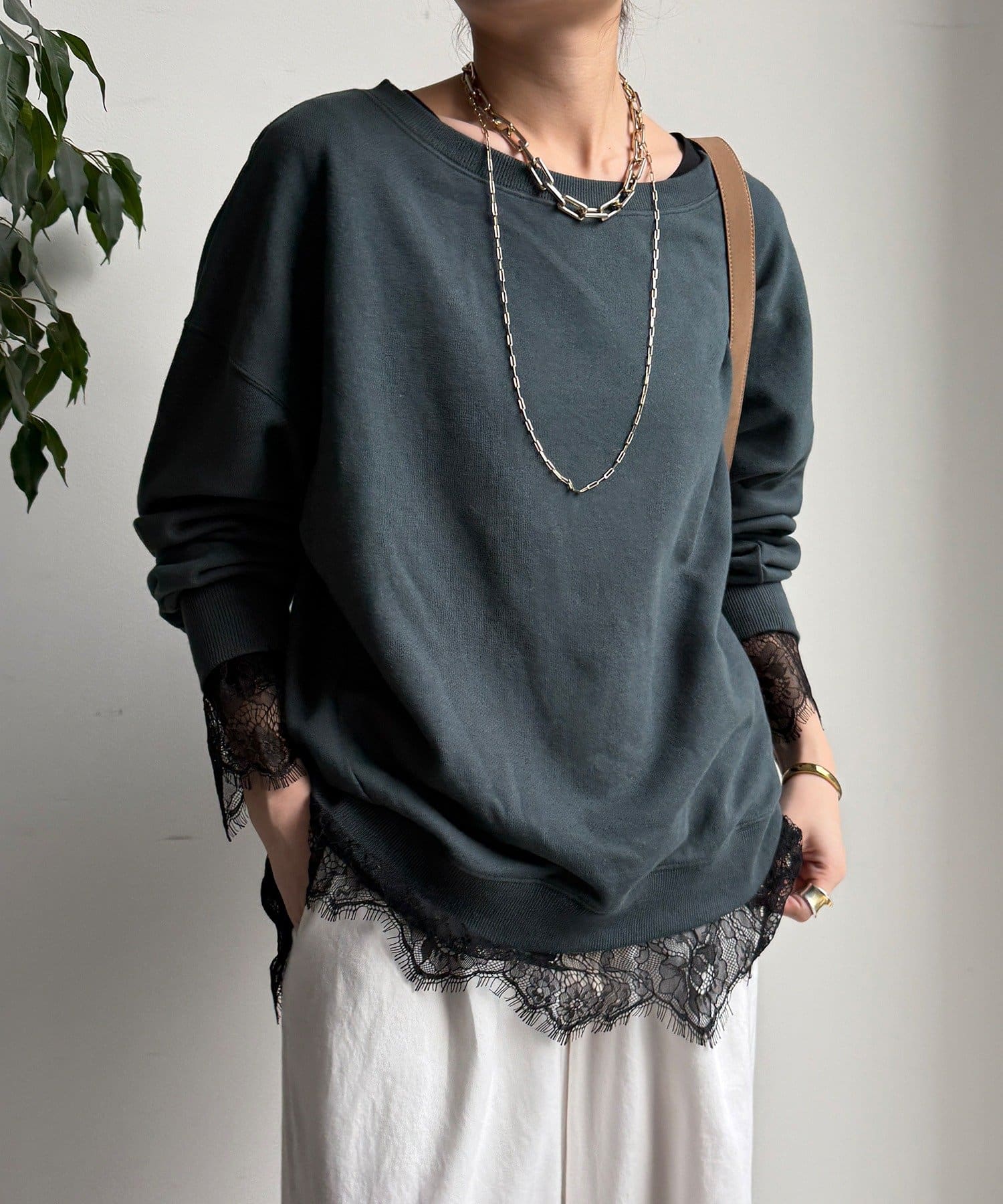 カジュアル見えするシカットソーにレースの上品さをミックスした大人の贅沢ロンT。
