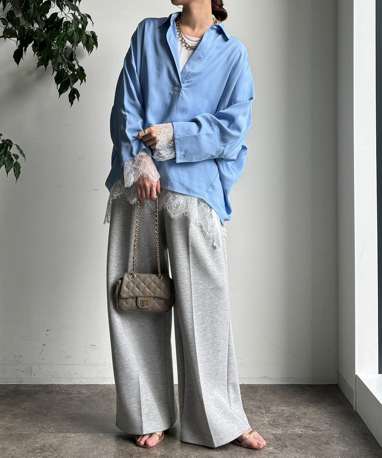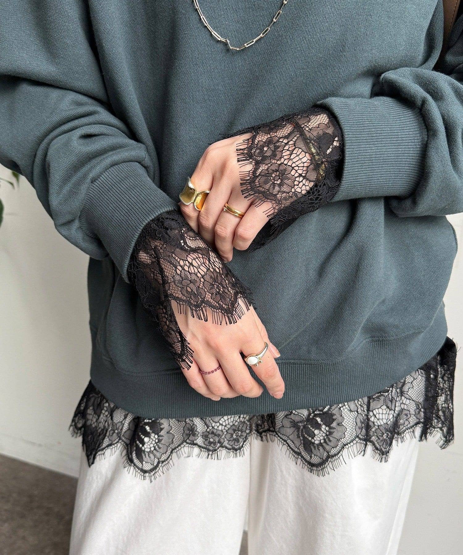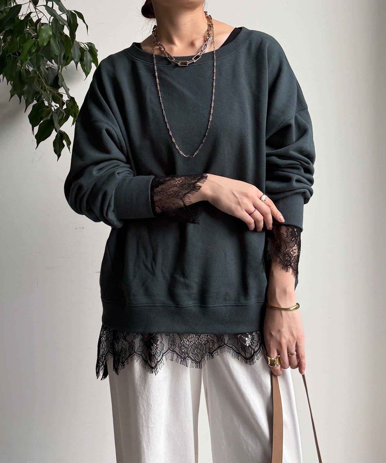 ざっくりとしたニットやシャツ、スウェットなど、お手持ちトップスのインナーに着るだけでレースがチラ見えし、スタイリングを一気に華やかにしてくれます。