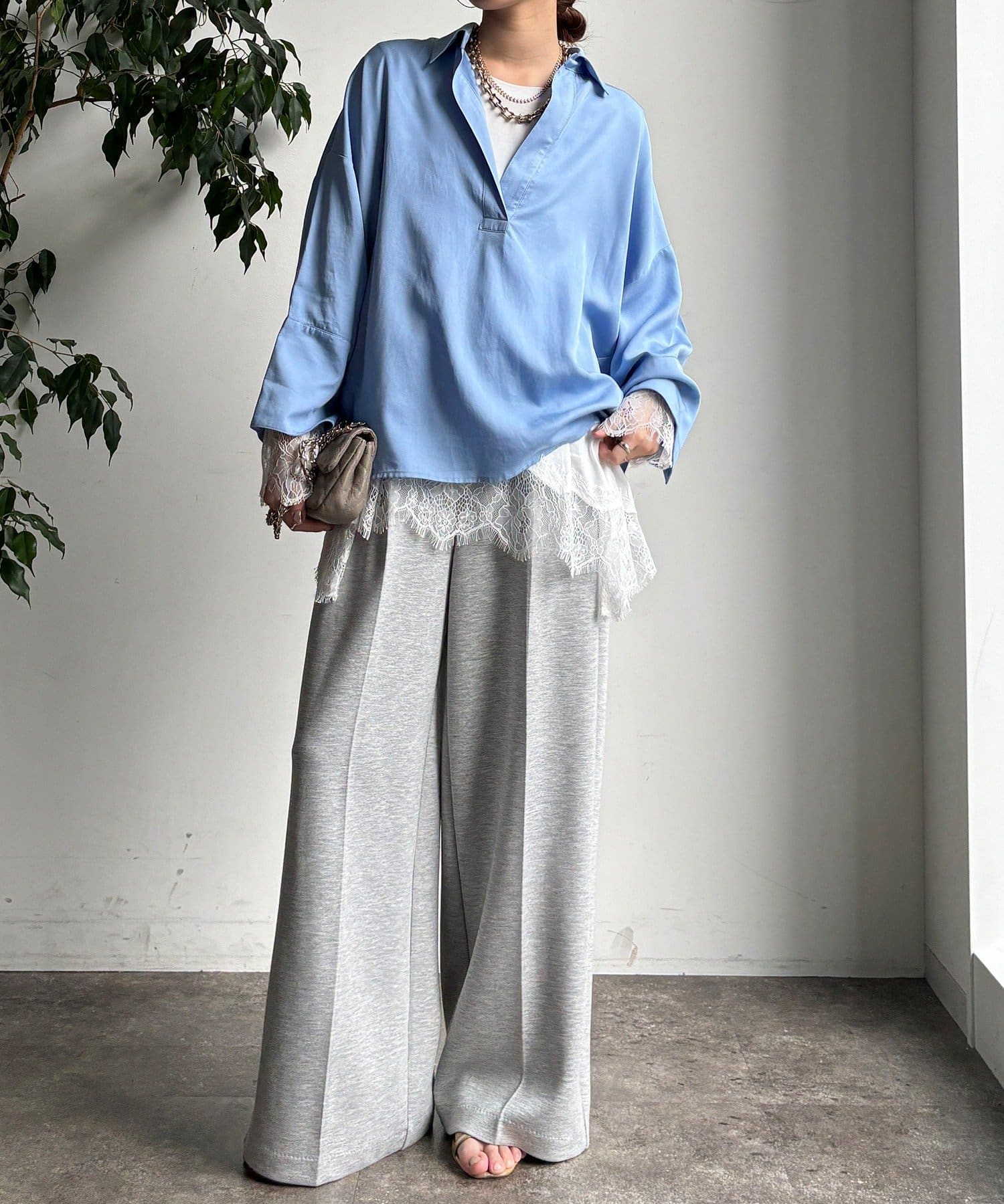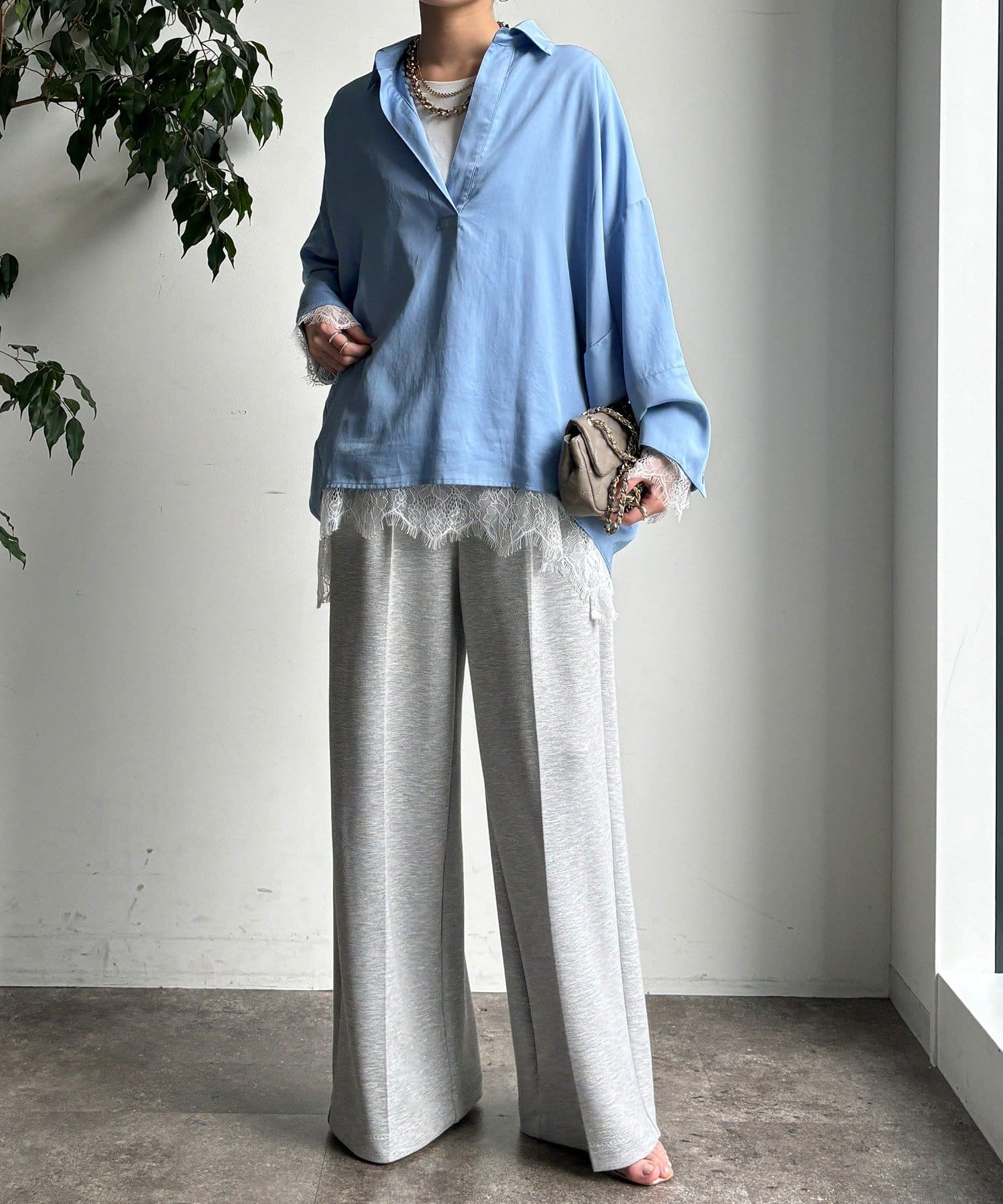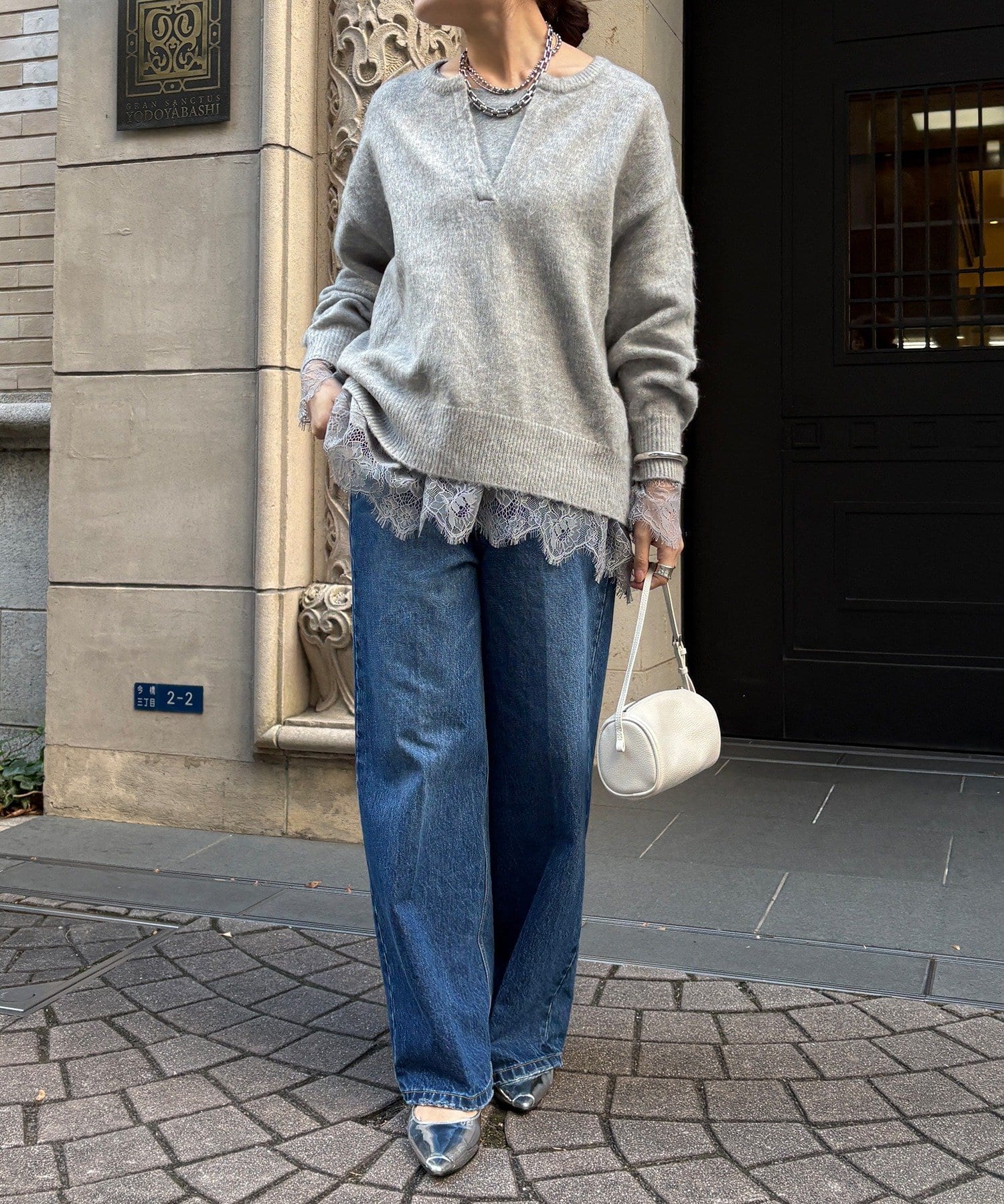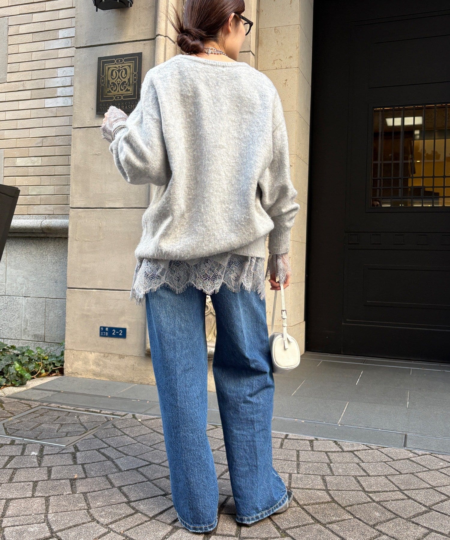 ざっくりとしたニットやシャツ、スウェットなど、お手持ちトップスのインナーに着るだけでレースがチラ見えし、スタイリングを一気に華やかにしてくれます。