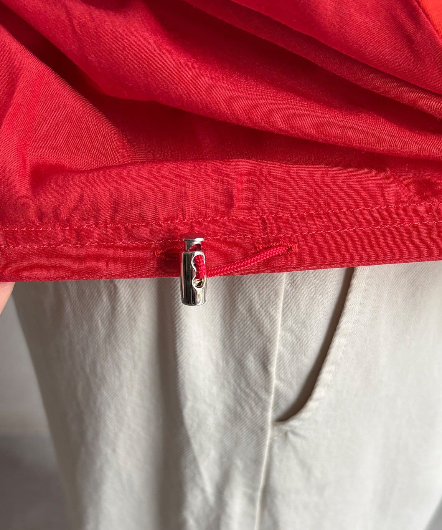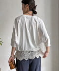 同系色でありながら異素材の生地を組み合わせたプルオーバー