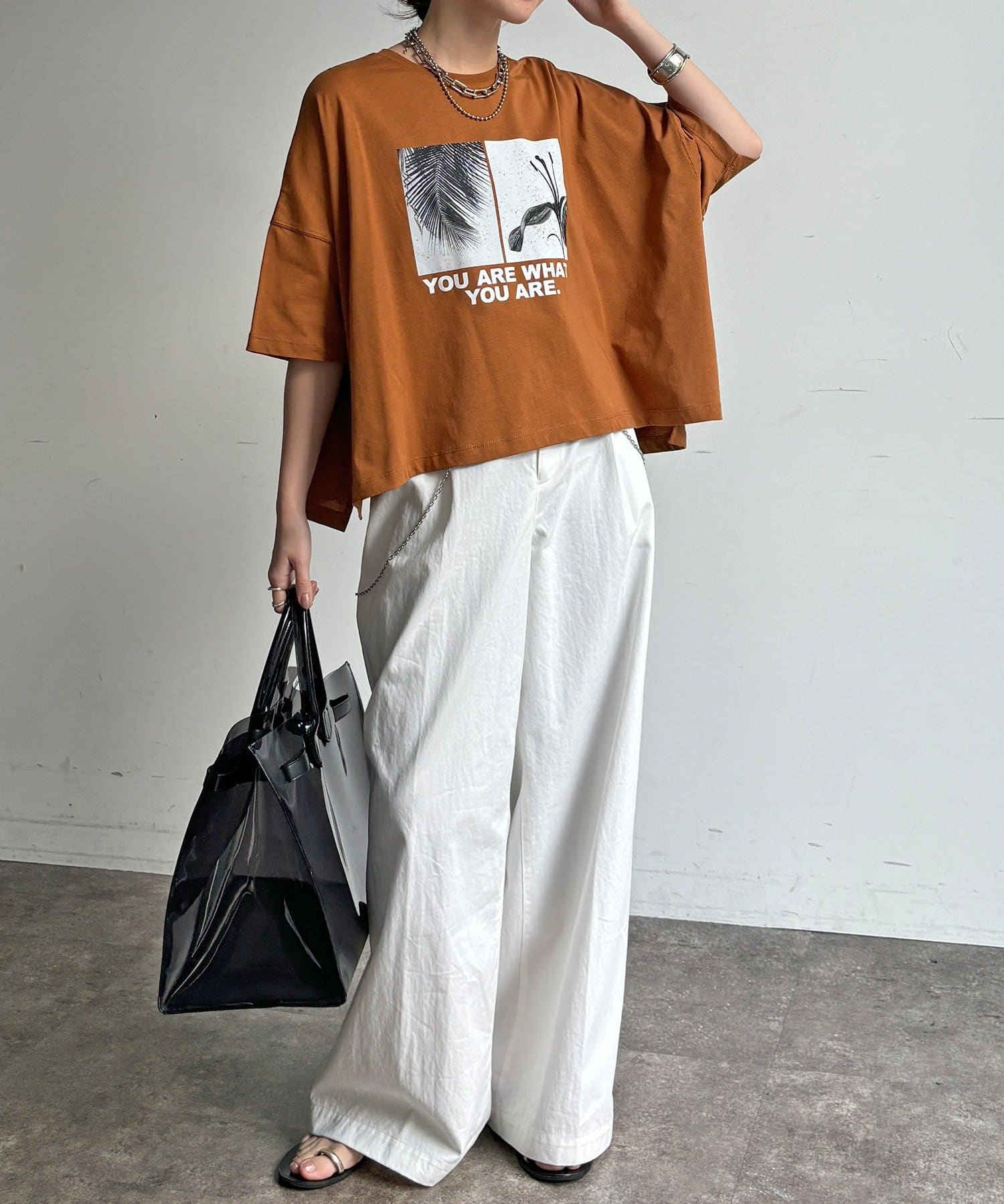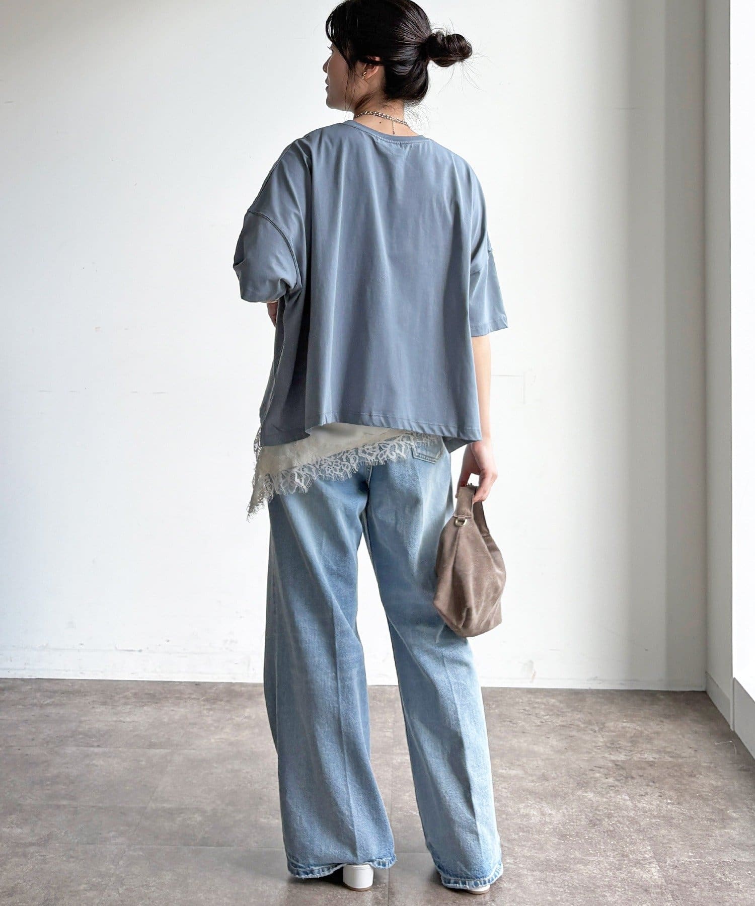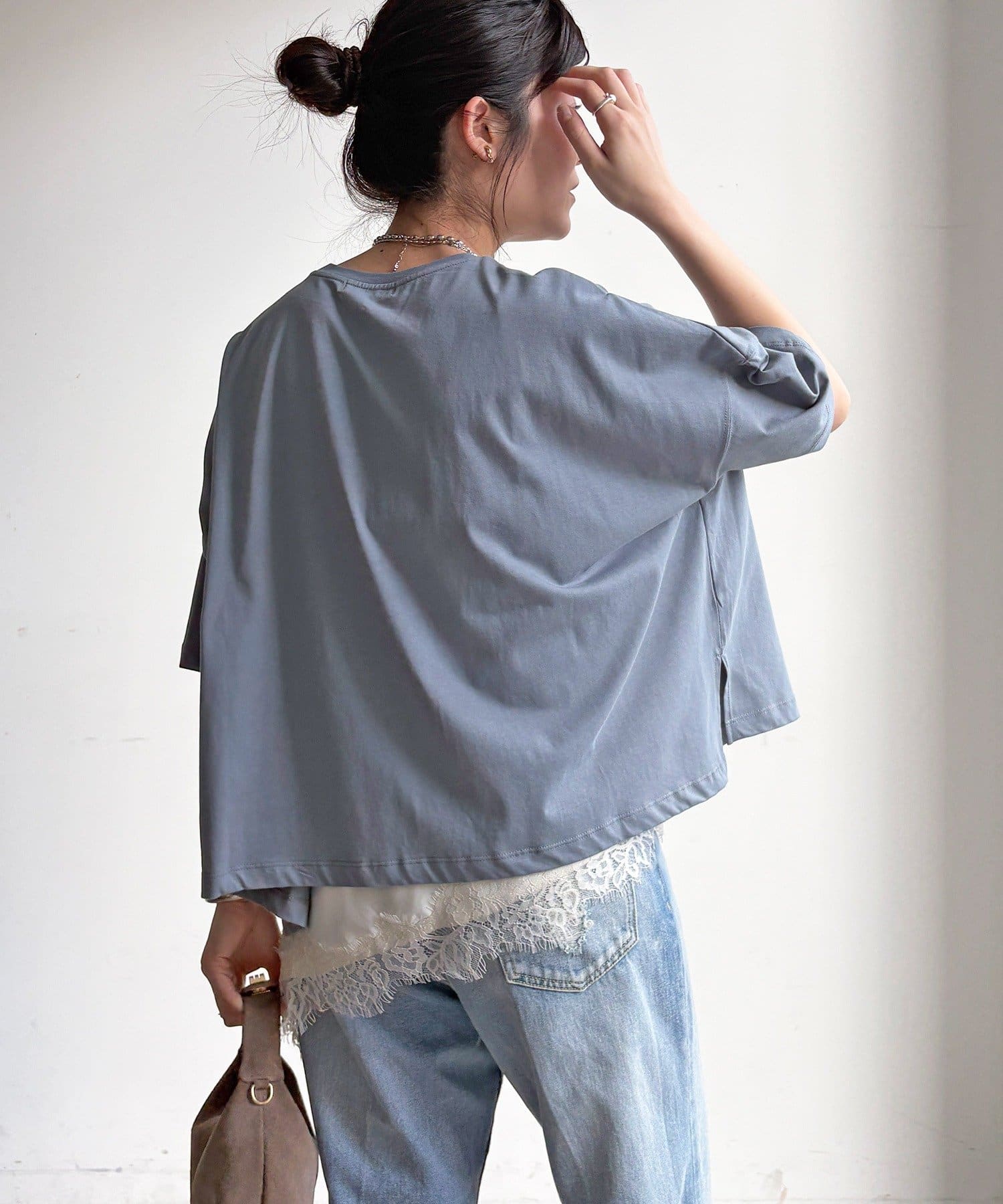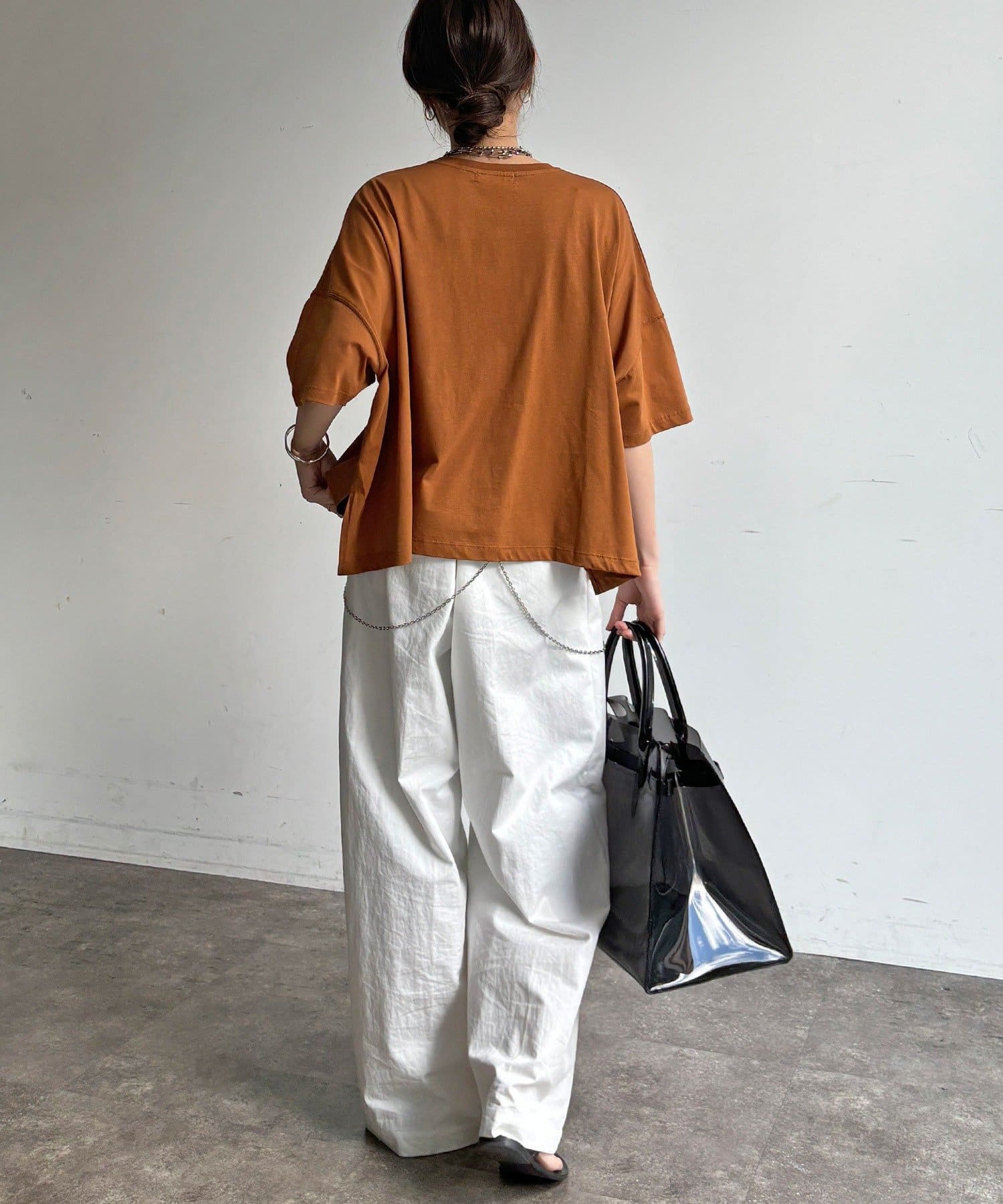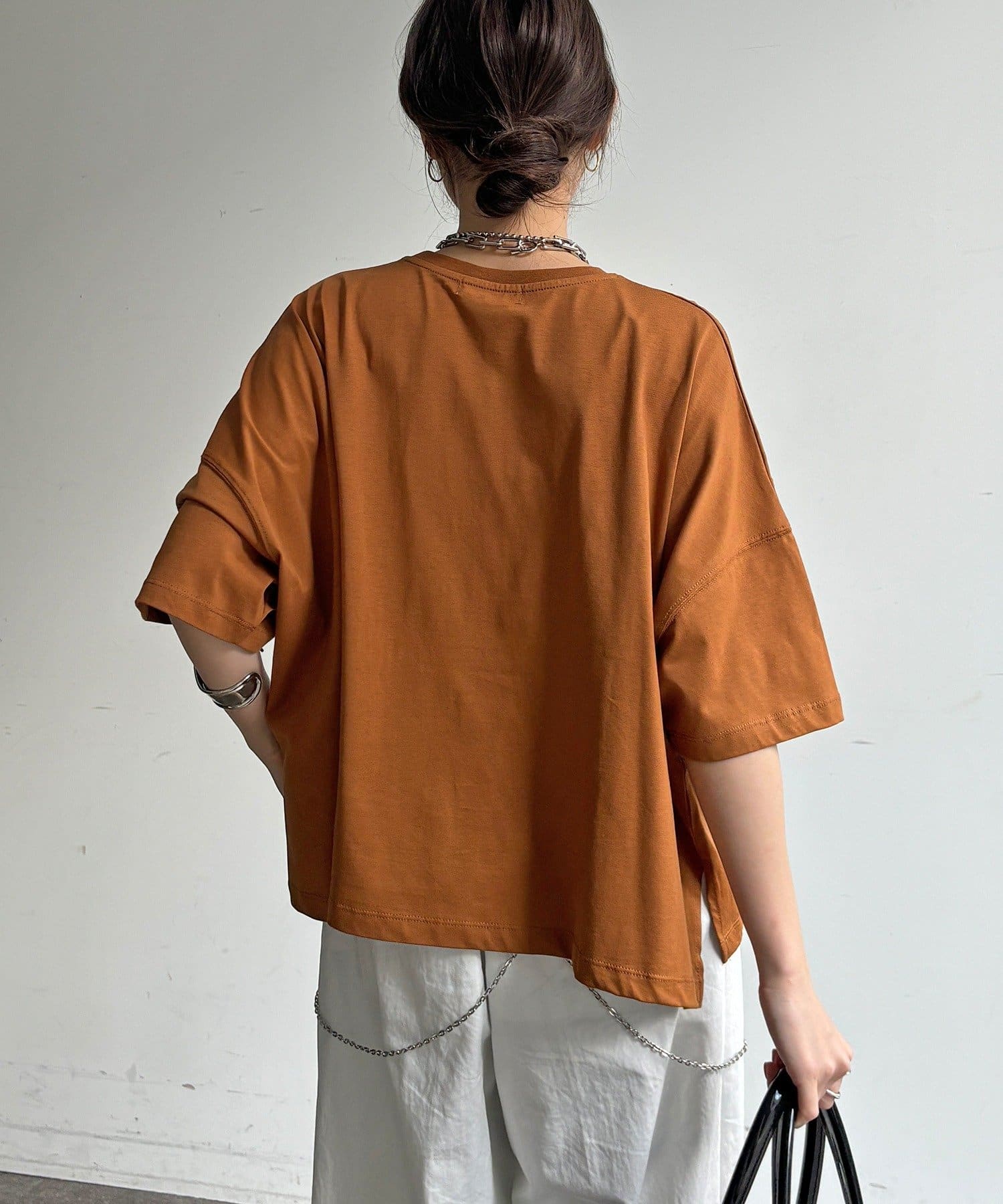 窮屈感のないワイドシルエットは汗ばむ季節でも肌離れが良く、快適です。