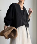顔まわりをすっきりと見せてくれるスキッパーデザイン。