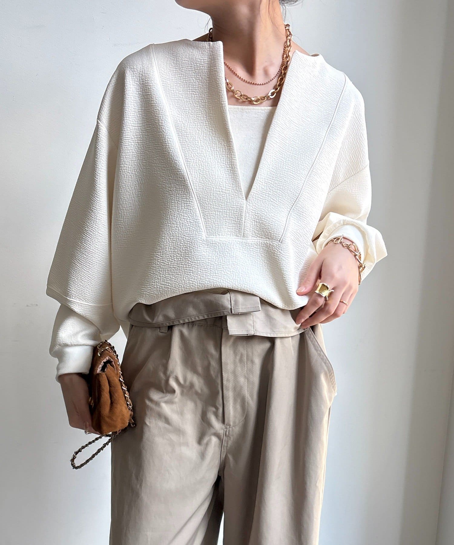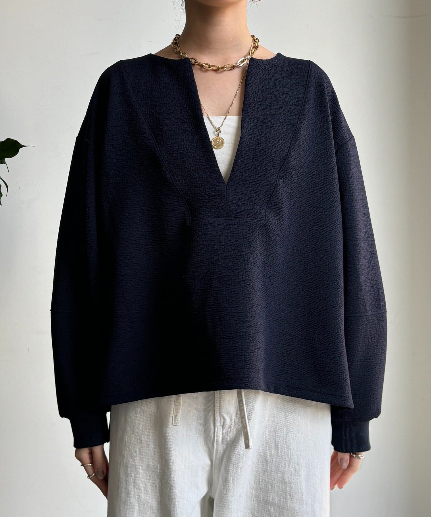 立体感が映える大人スキッパープルオーバー