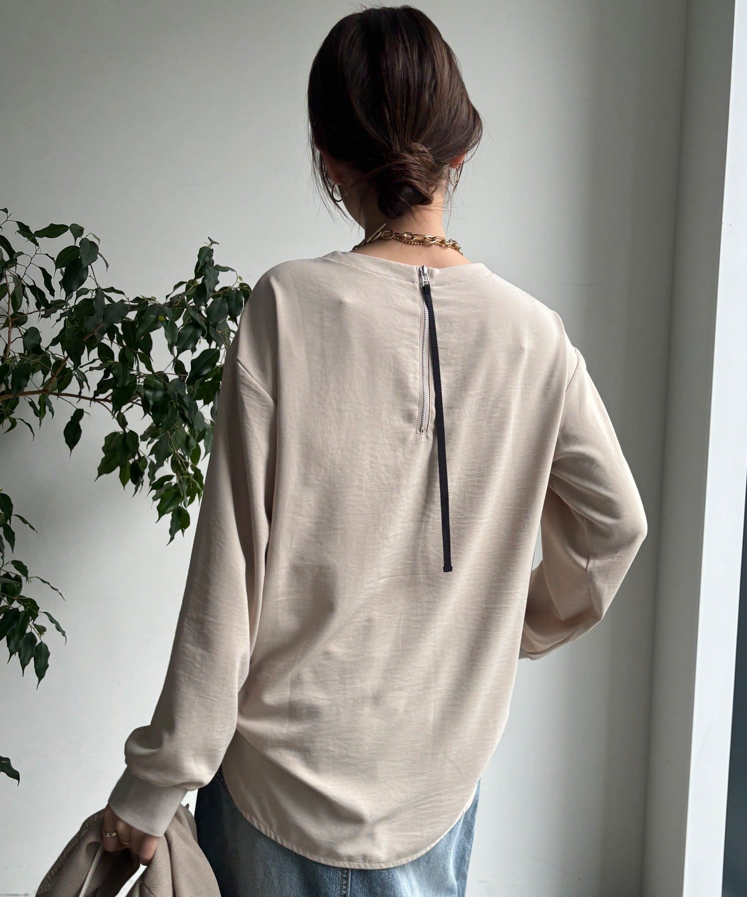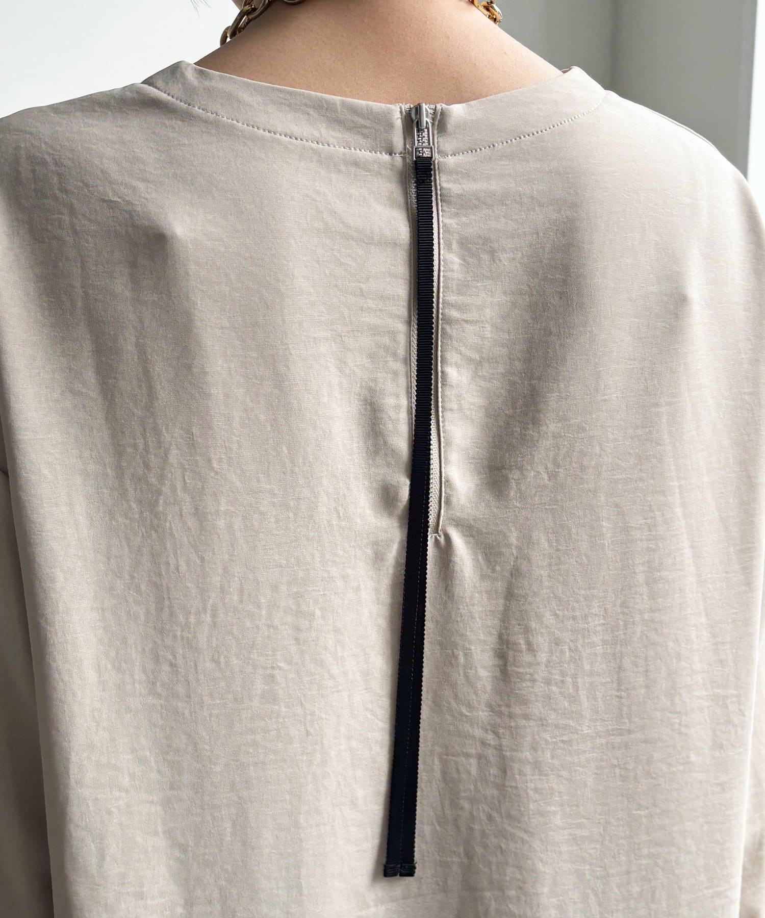 バックスタイルにはファスナーを施し、さりげないコントラストが、後ろ姿まで印象的に仕上げてくれます。