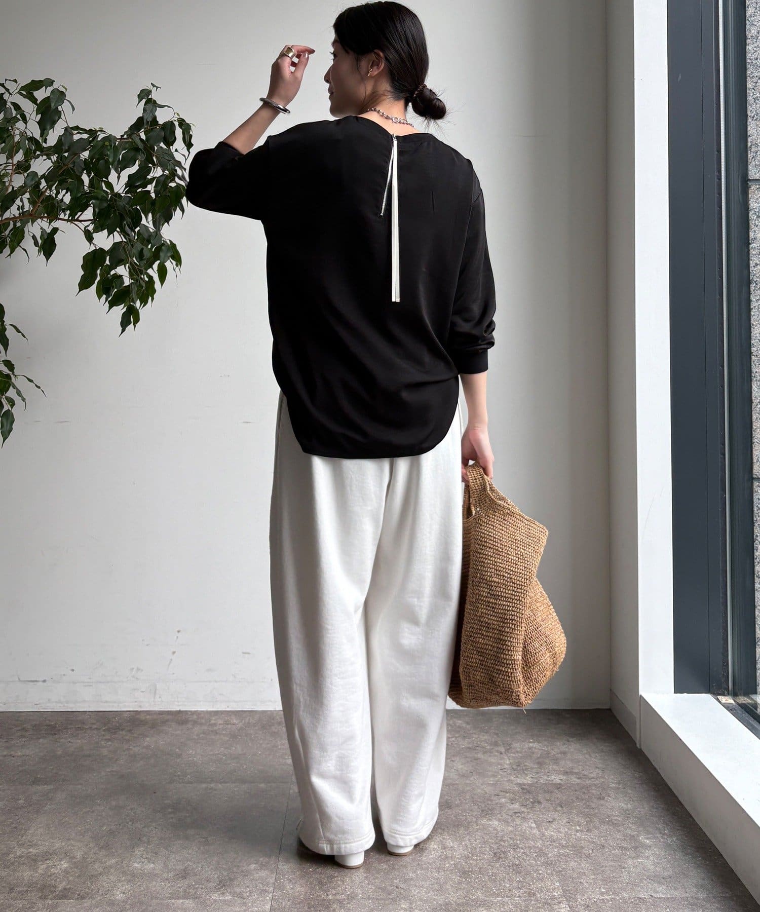 落ち感のあるなめらかな素材で、肌あたりもやさしく快適な着心地。
