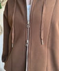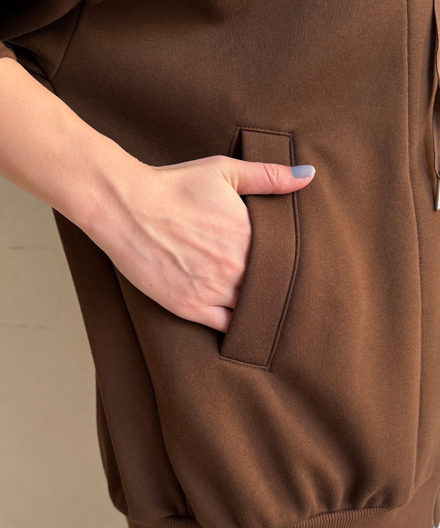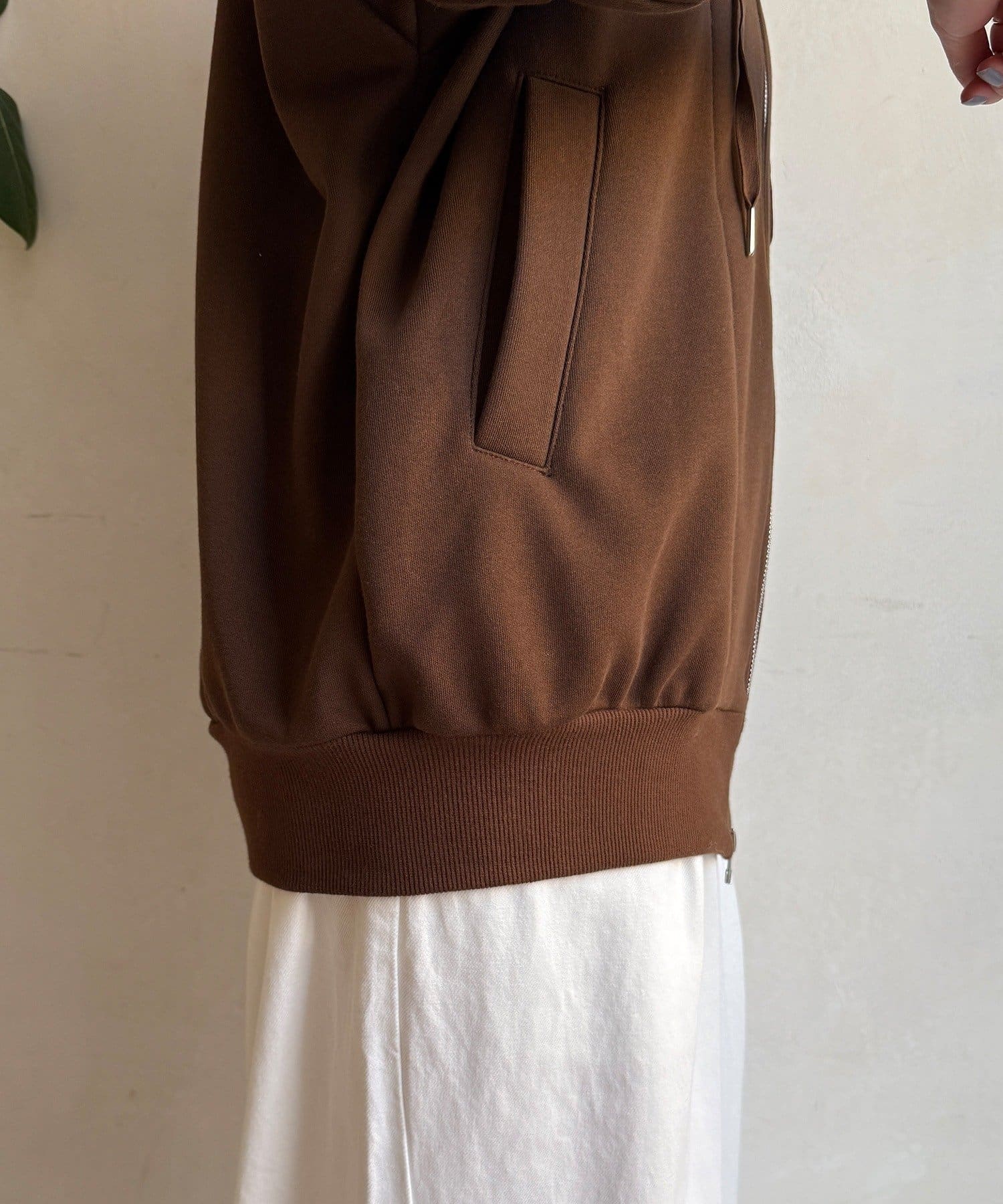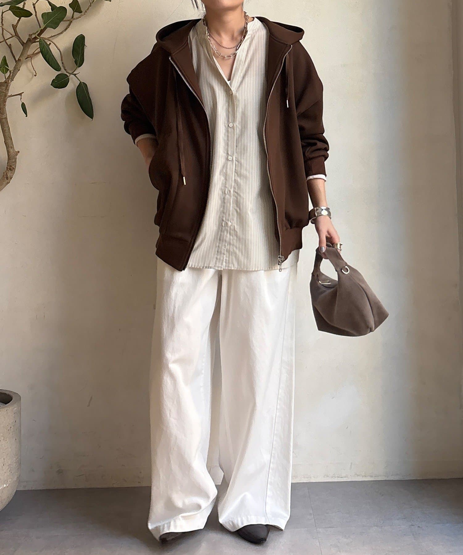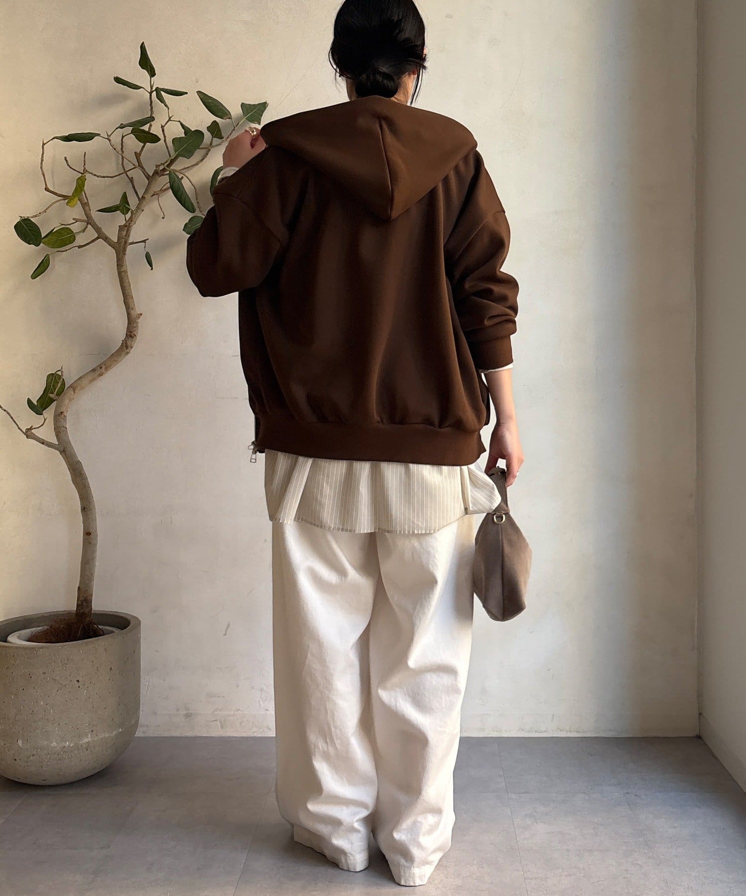 下のジップを上げることで、抜け感が出てオシャレに見えます。