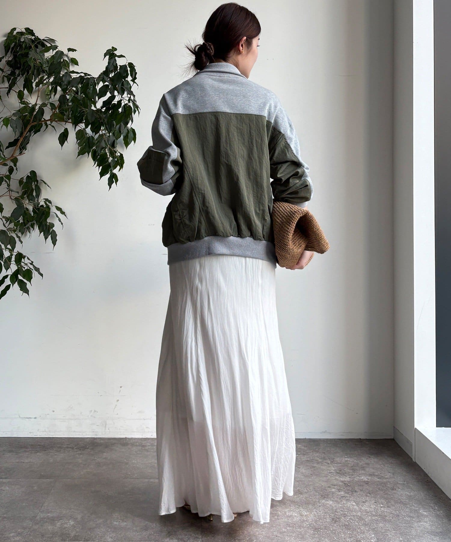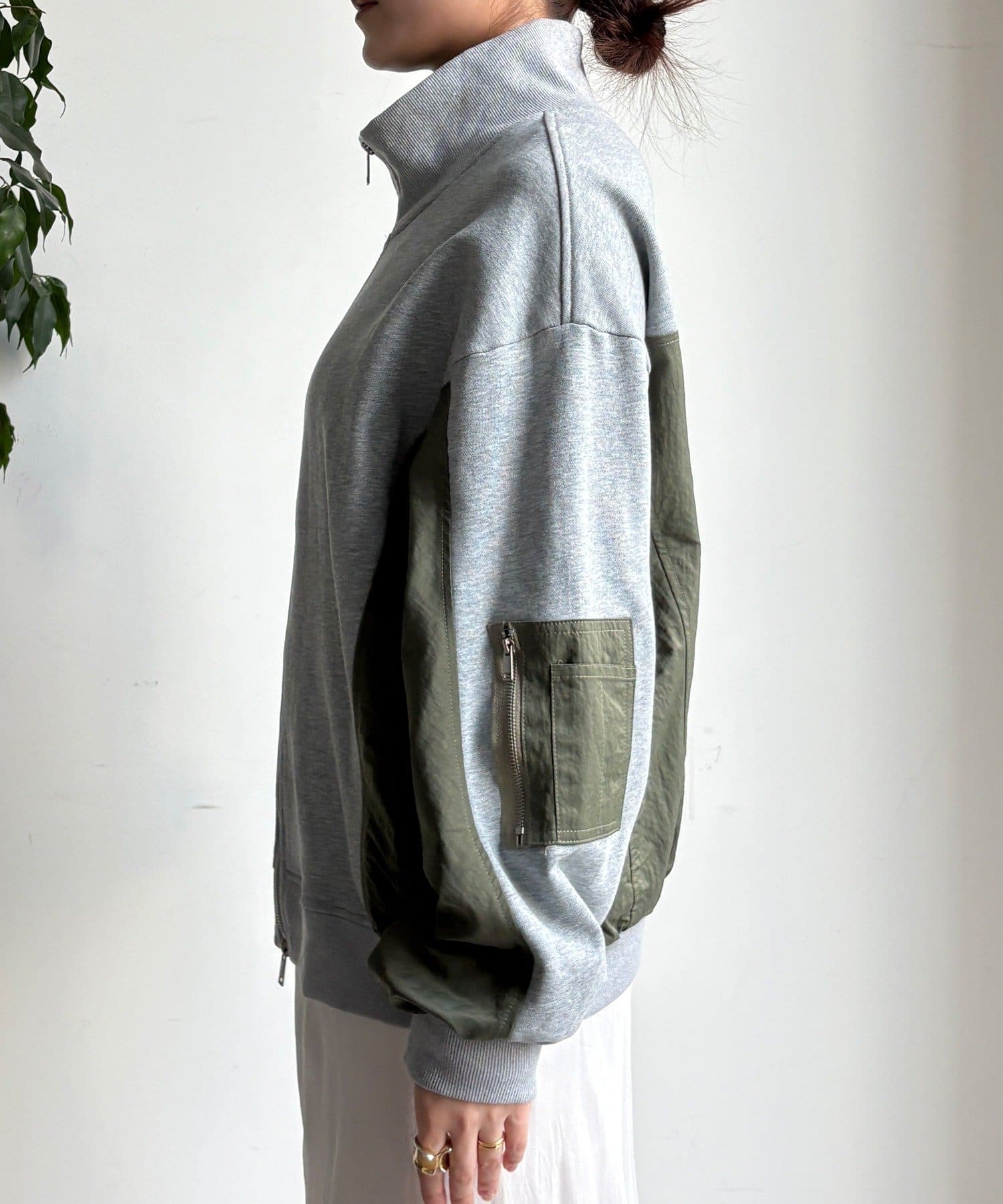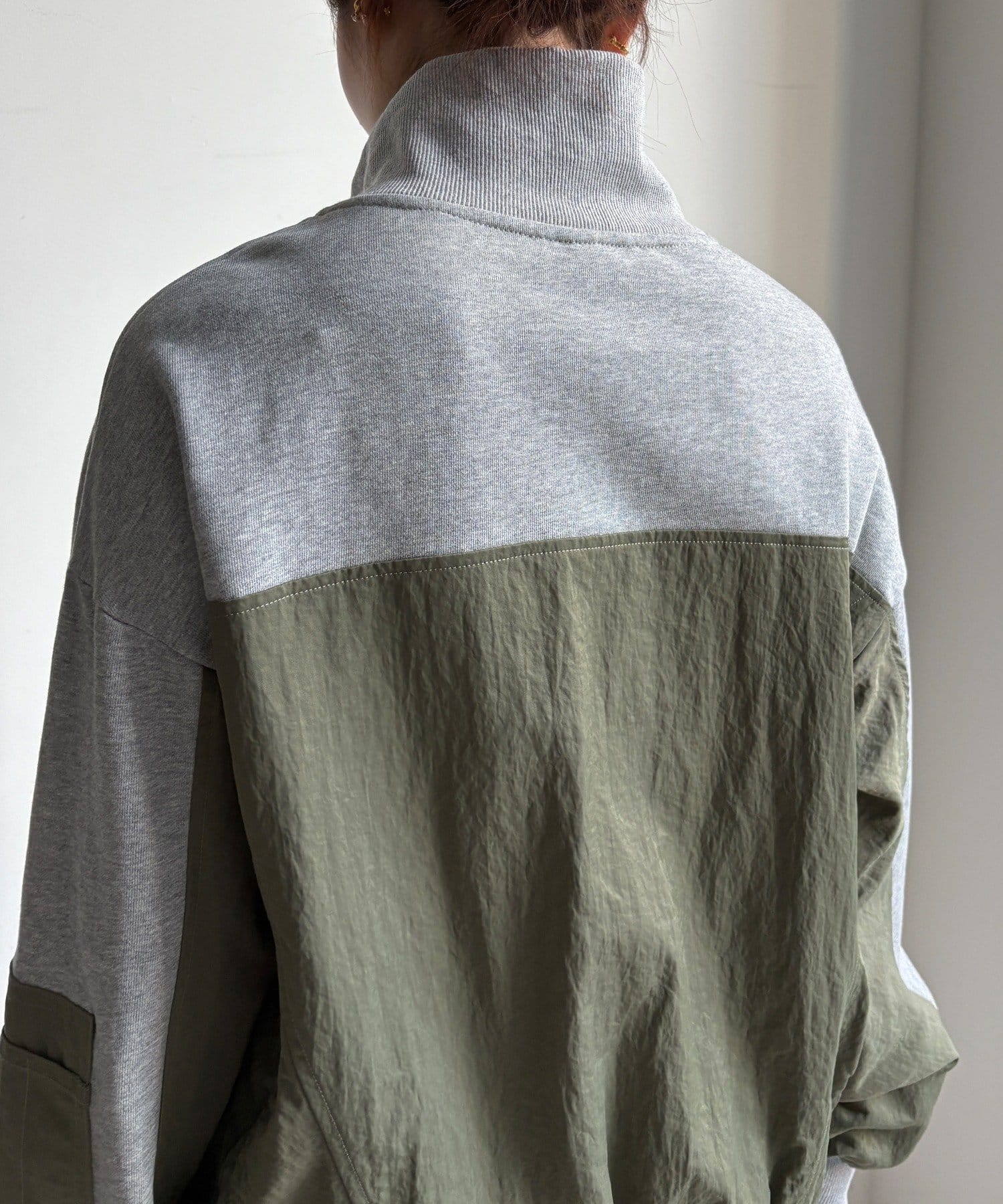 袖にナイロンの異素材を掛け合わせることで、スポーティすぎず上品な印象に。