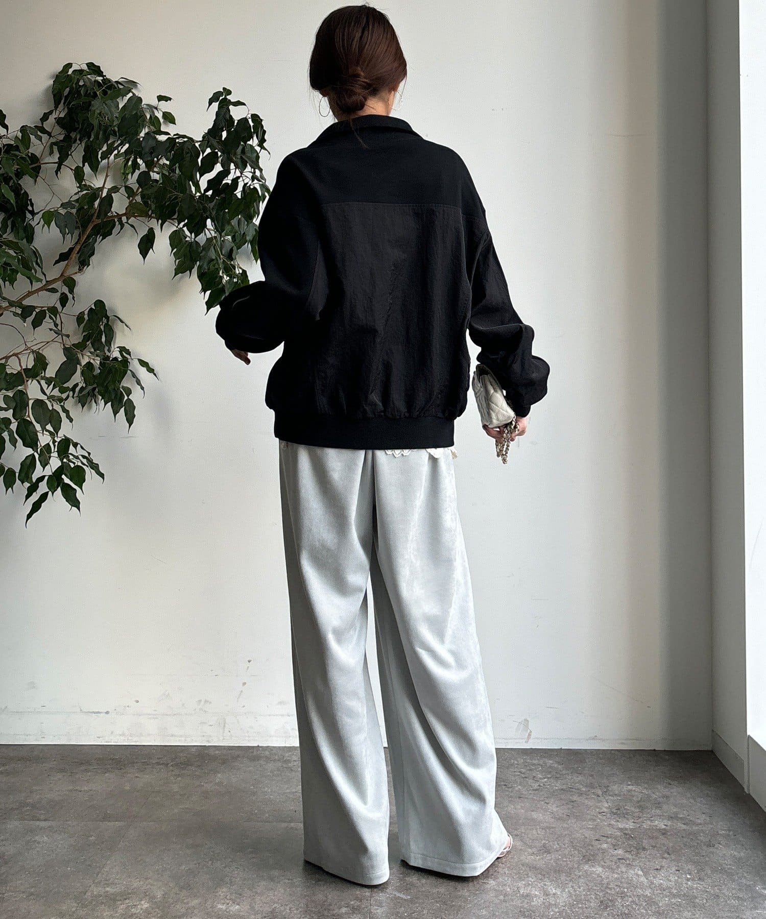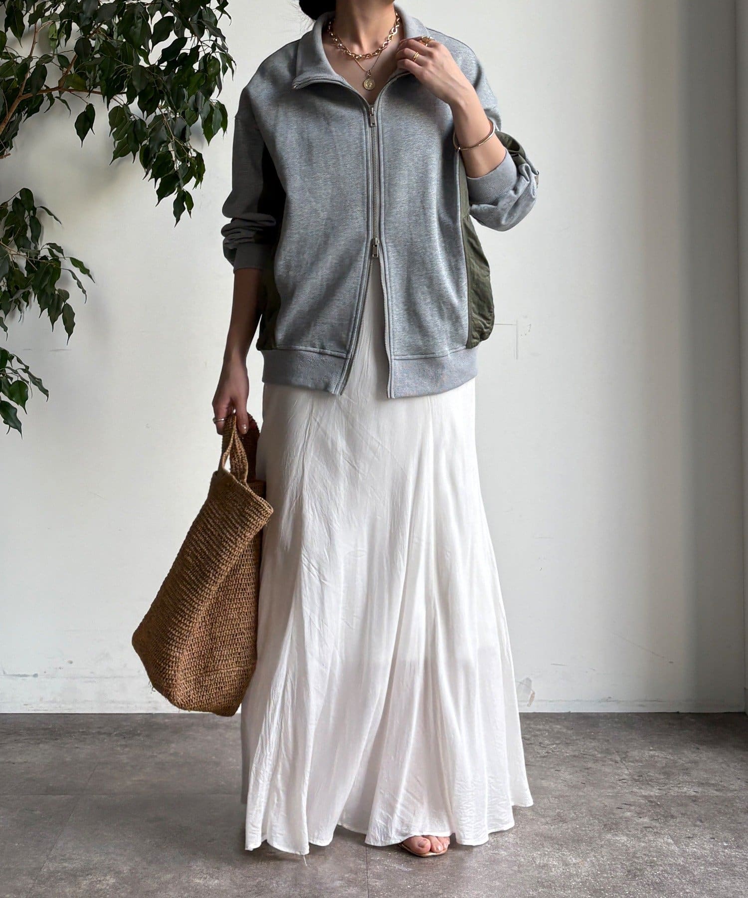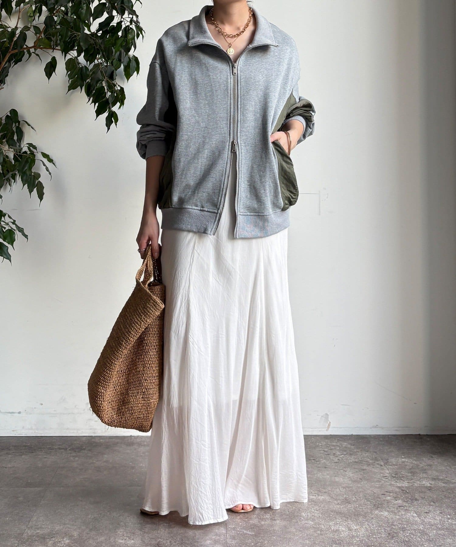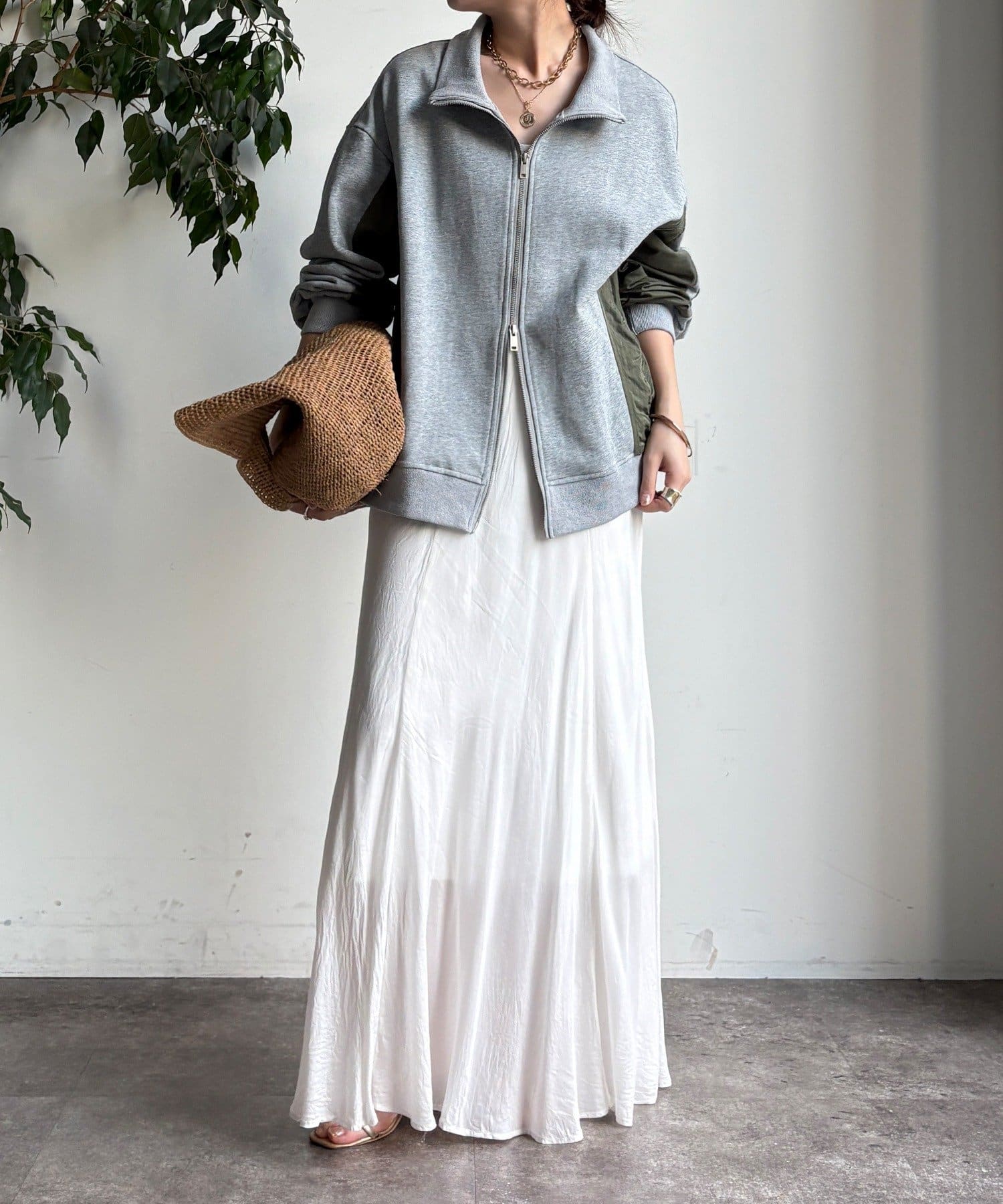 袖にナイロンの異素材を掛け合わせることで、スポーティすぎず上品な印象に。