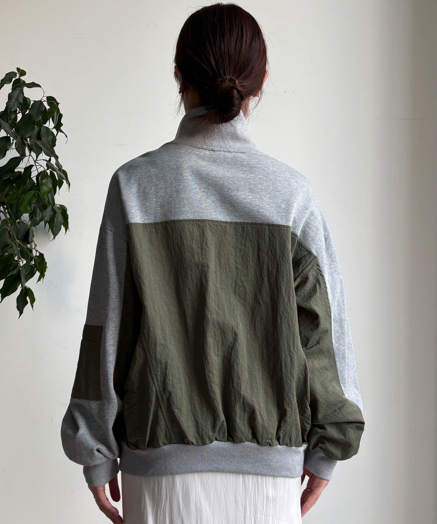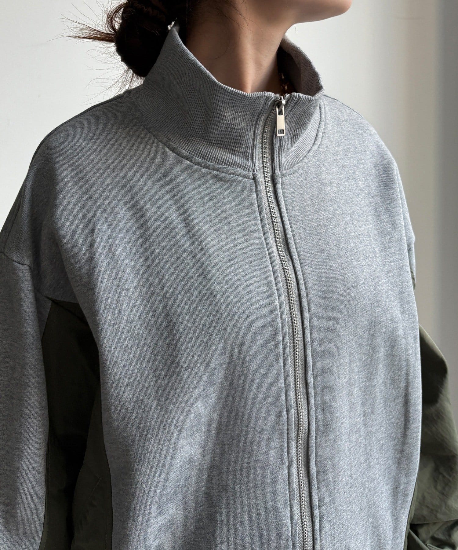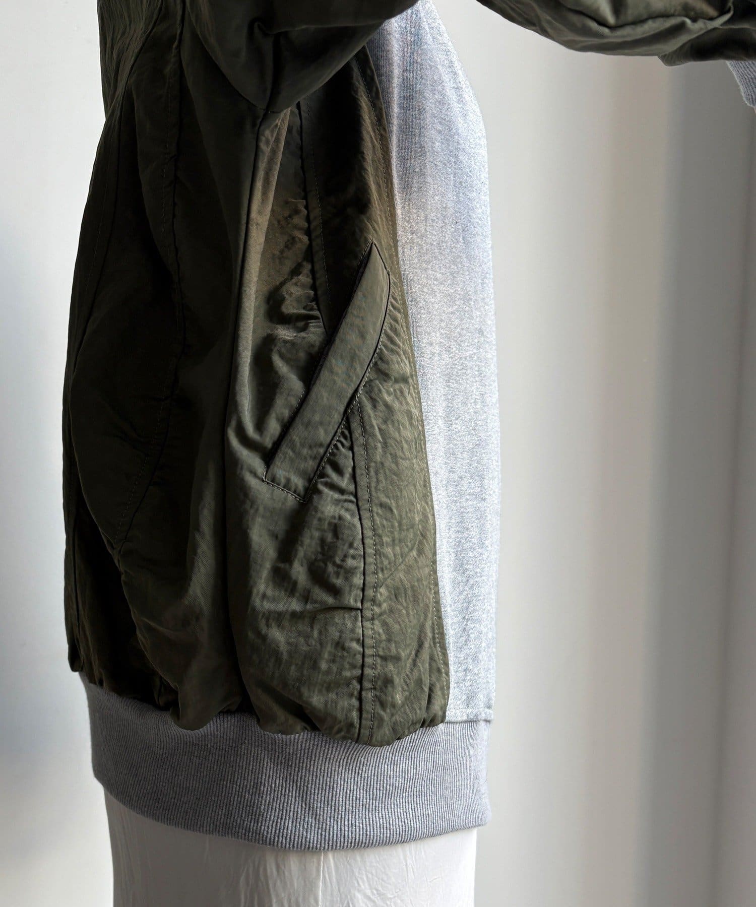 スウェット素材にナイロンを組み合わせた、デザイン性の高い大人のブルゾンです。