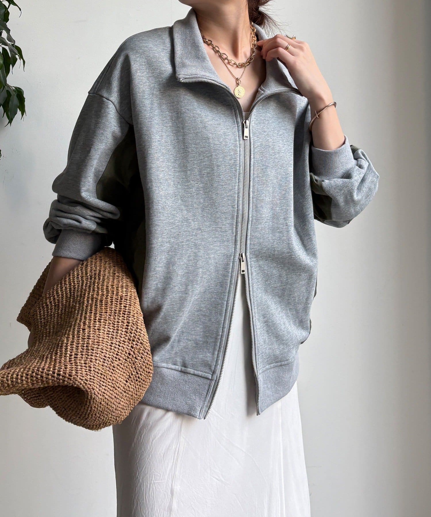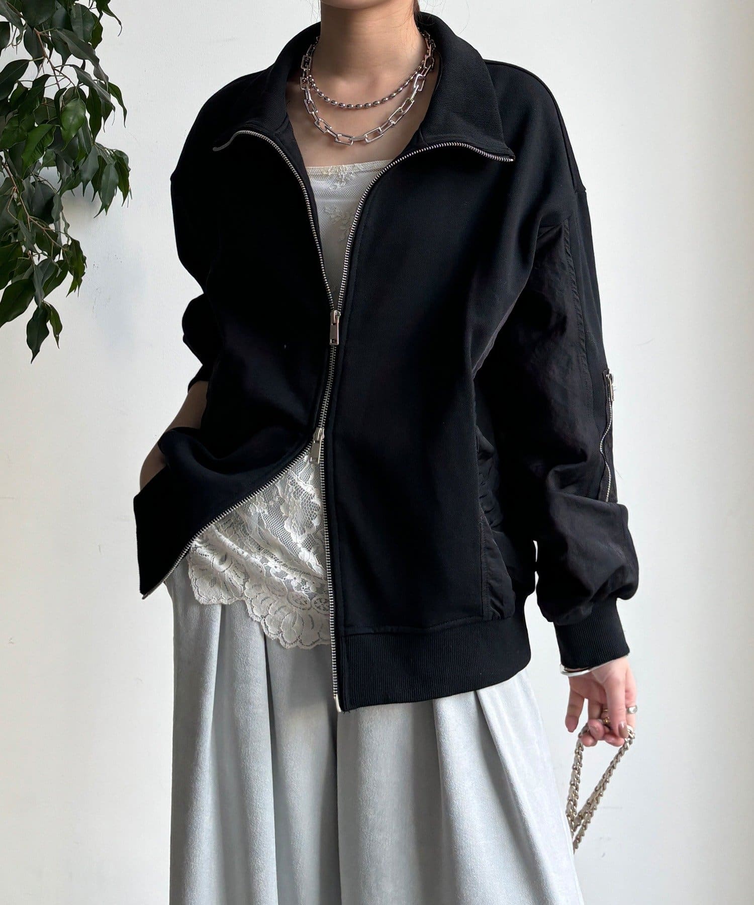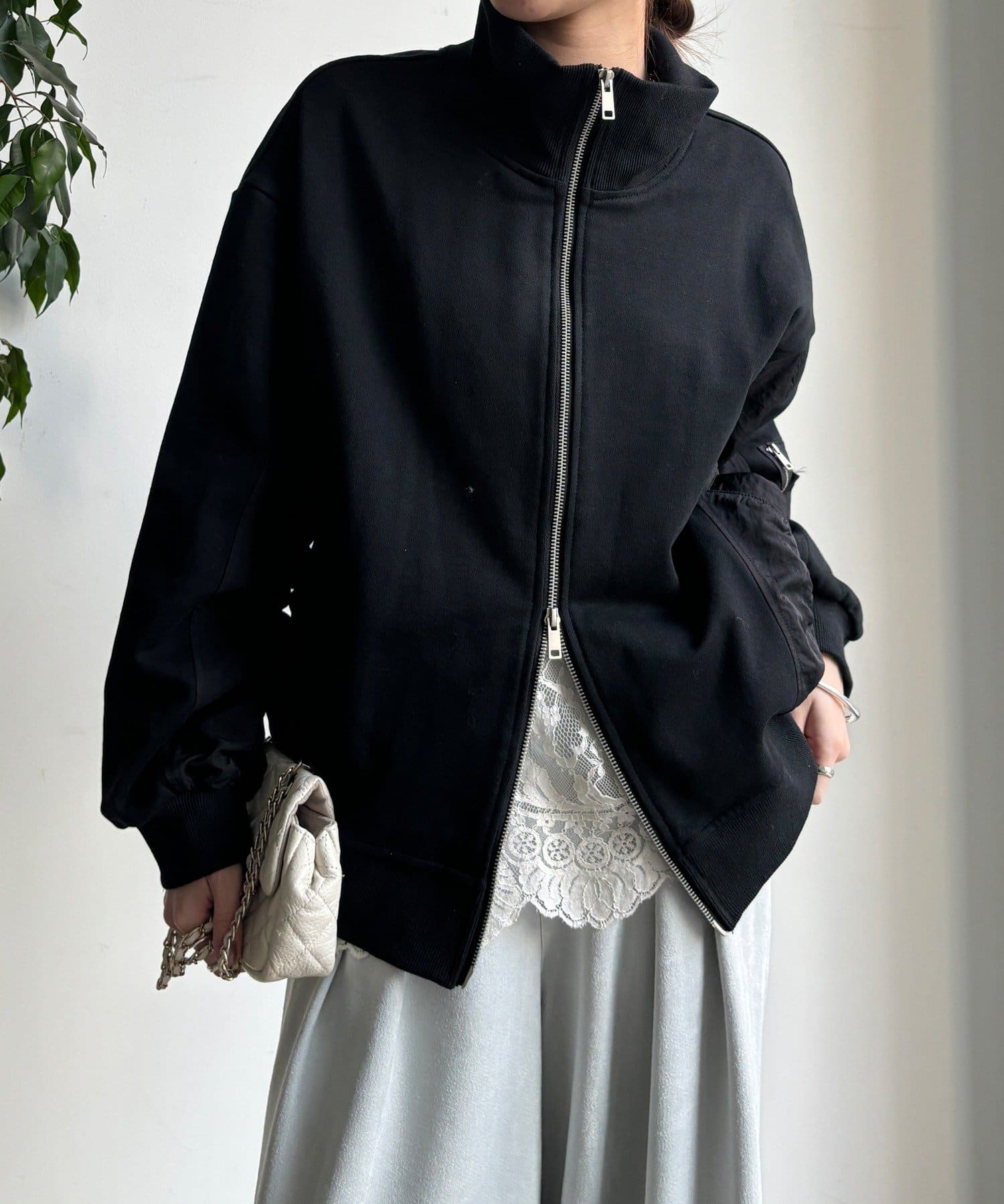 ダブルジップ仕様で、下を開けることで腰の一を高くみせてくれ、スタイルアップ効果も◎