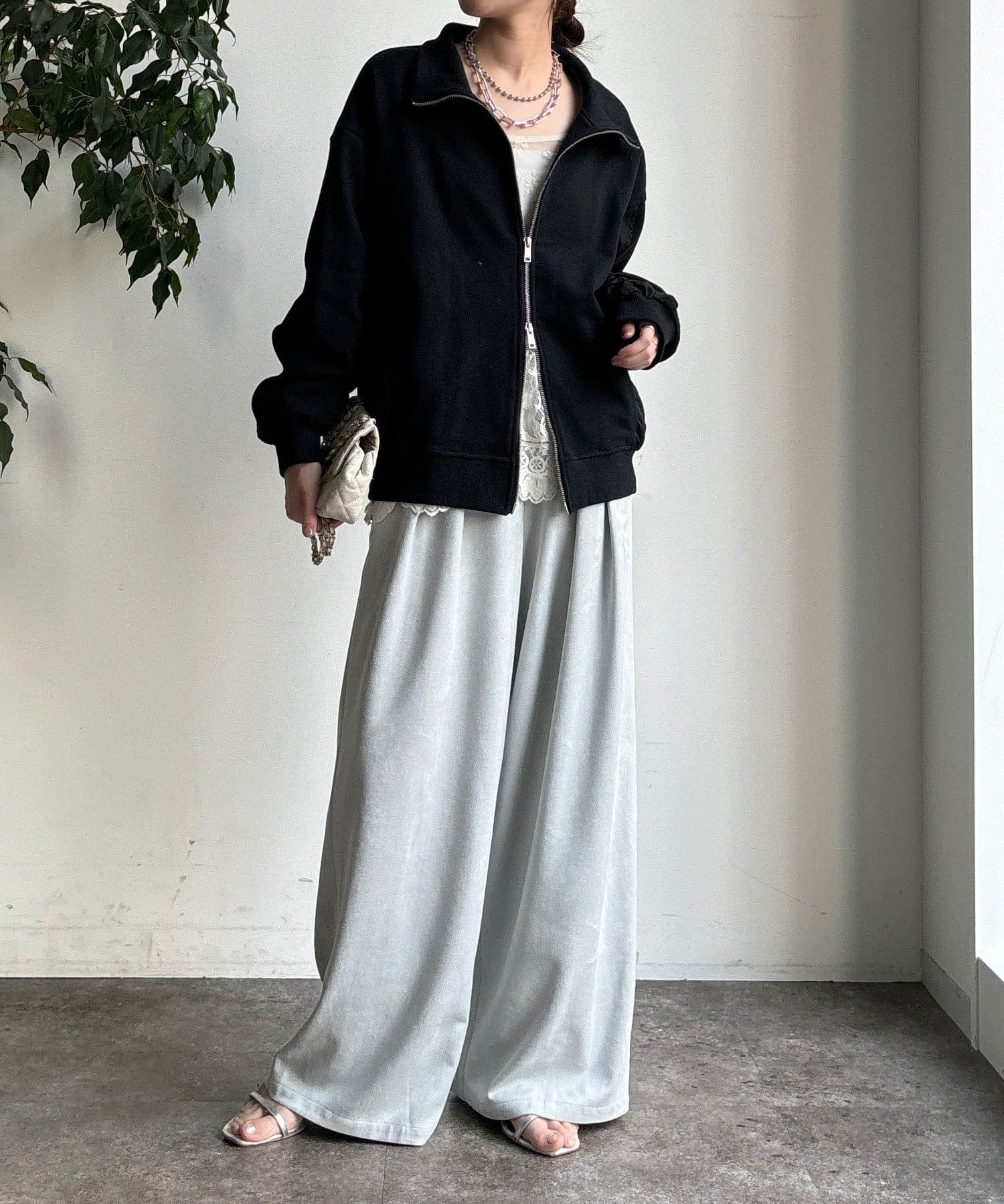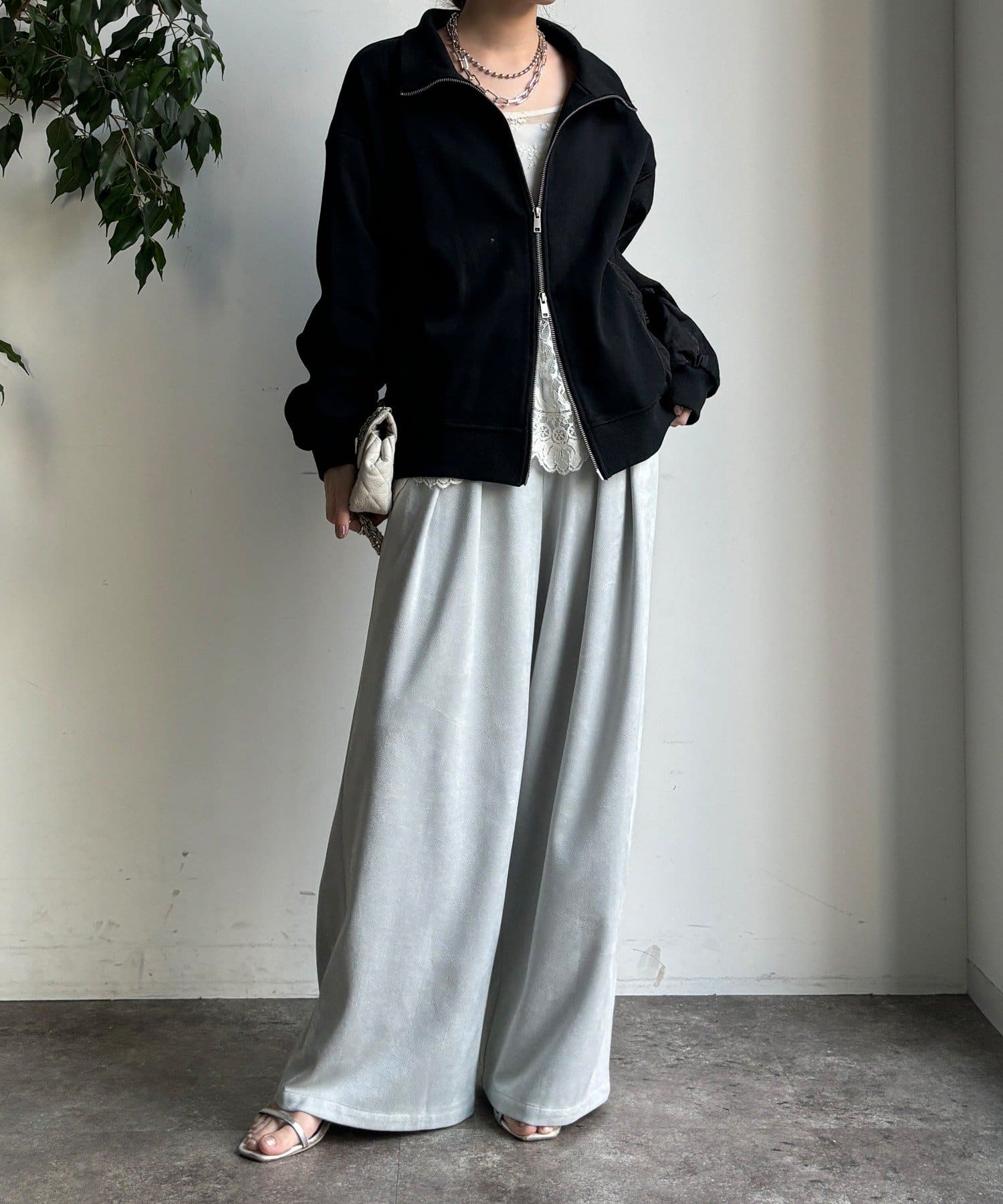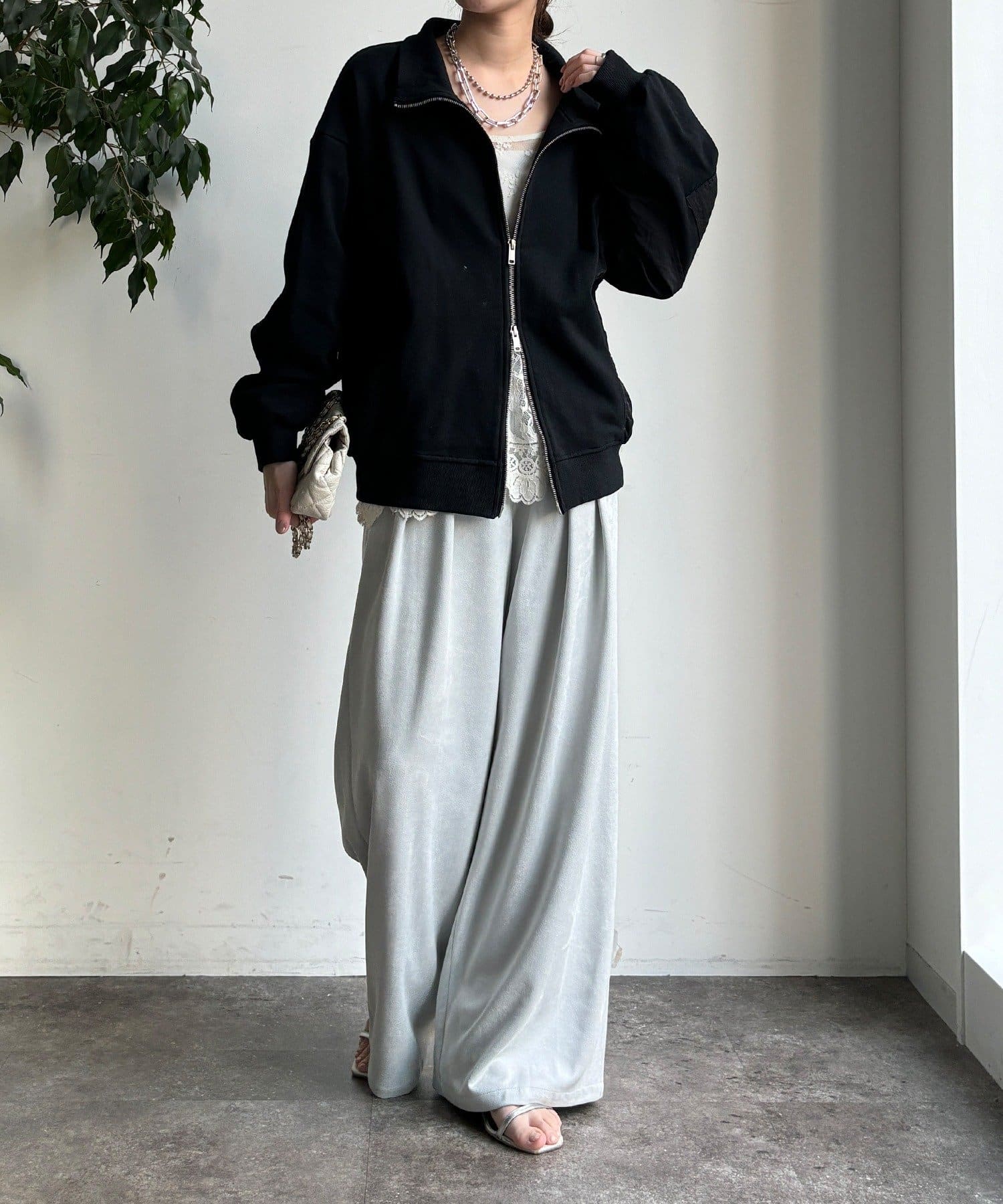 ダブルジップ仕様で、下を開けることで腰の一を高くみせてくれ、スタイルアップ効果も◎