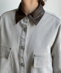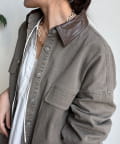 【DouDou】フェイクレザー衿シャツジャケット