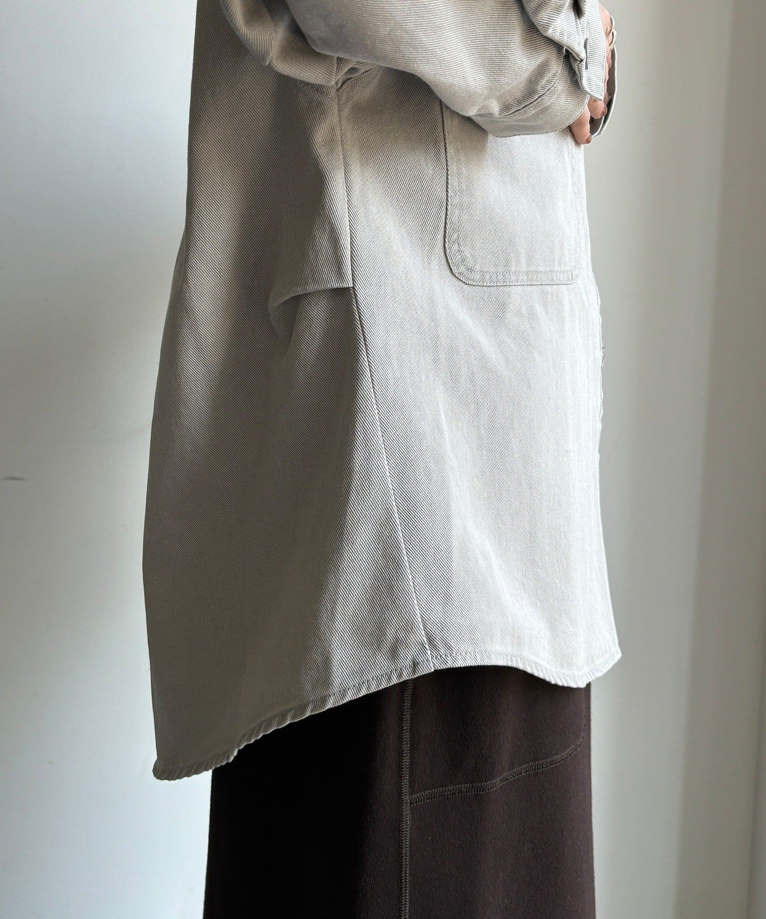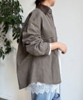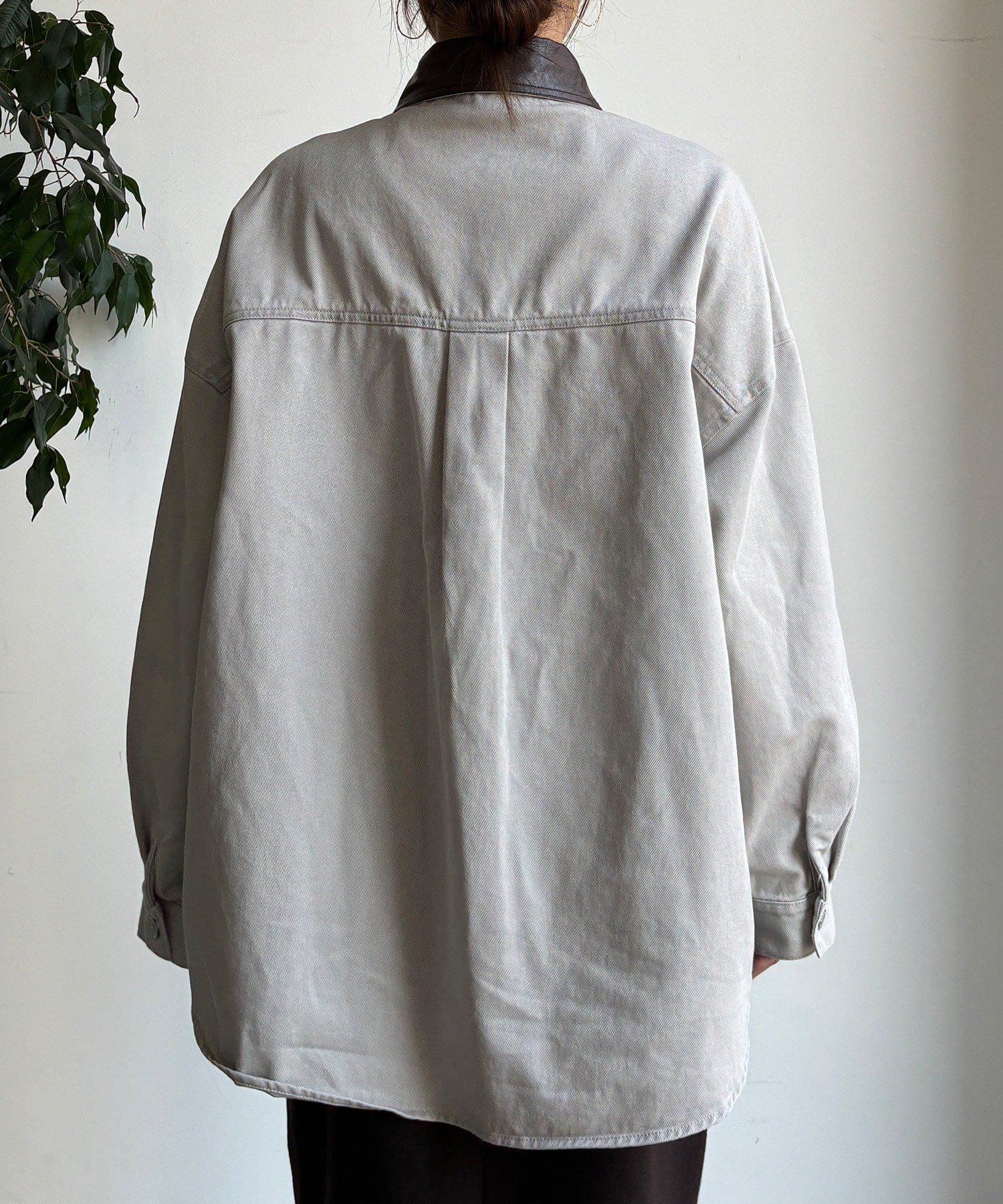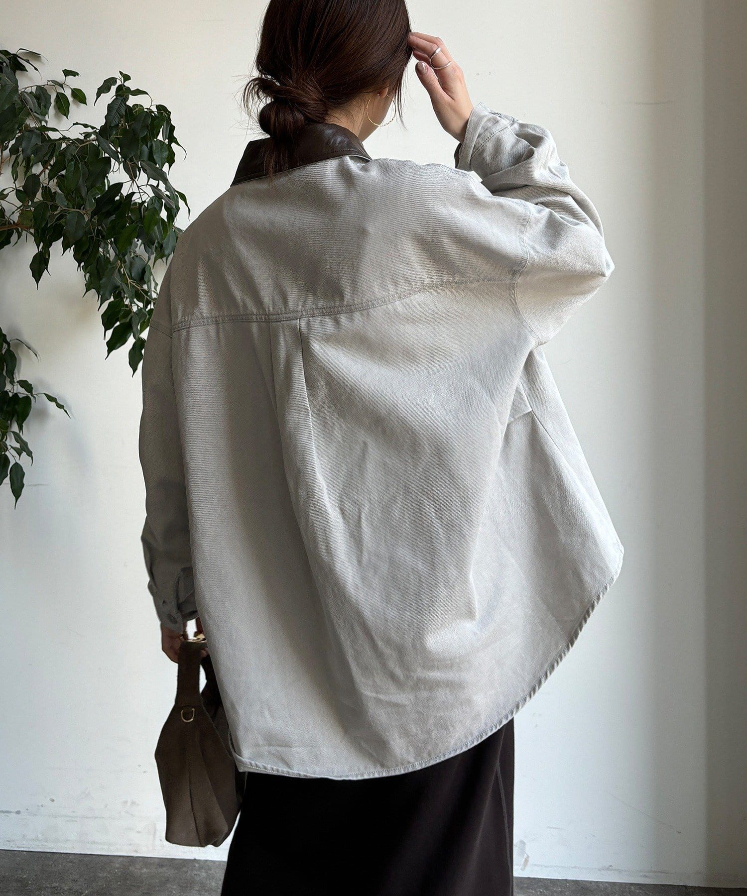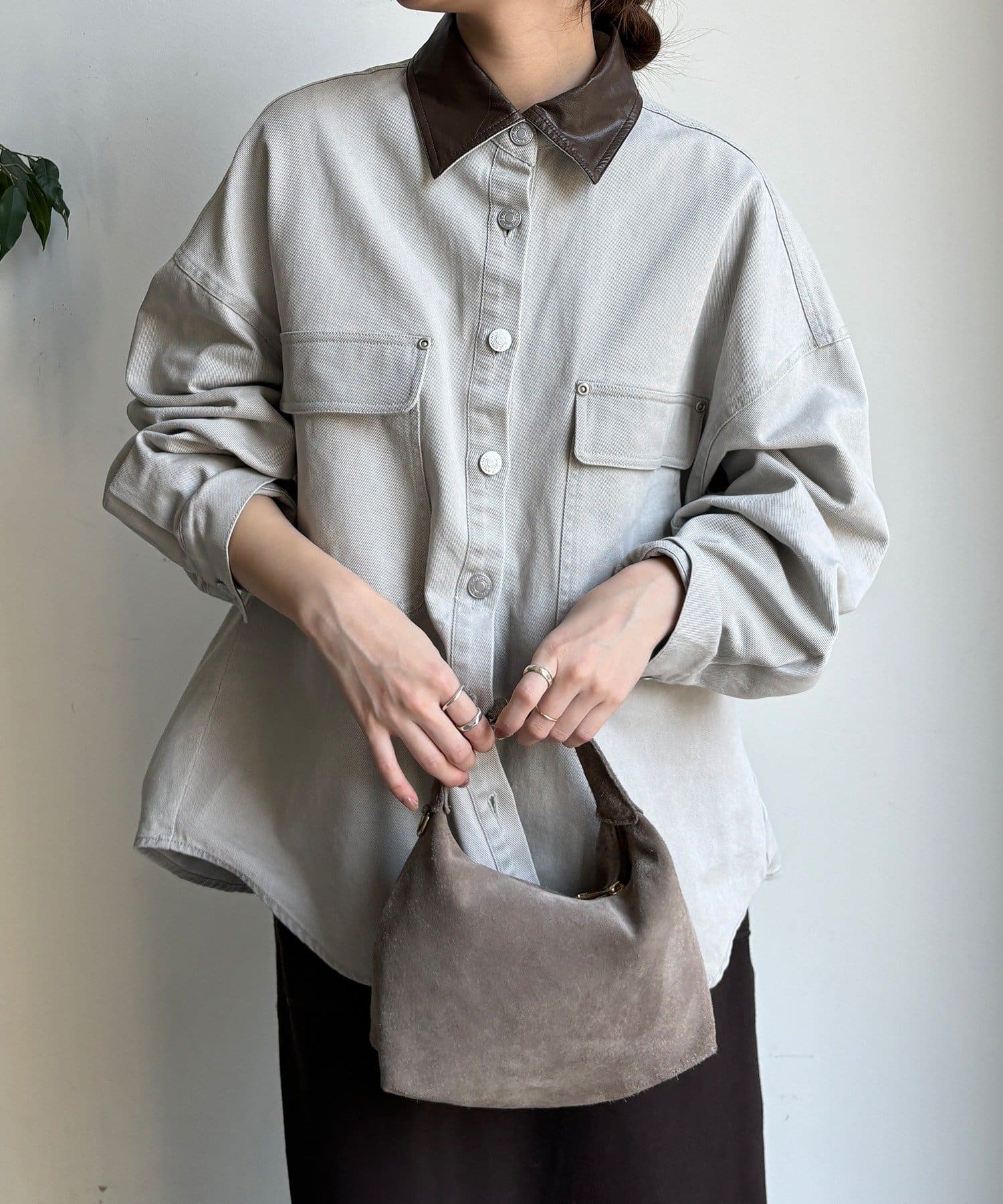 衿はフェイクレザーになっており、カジュアルなシャツを