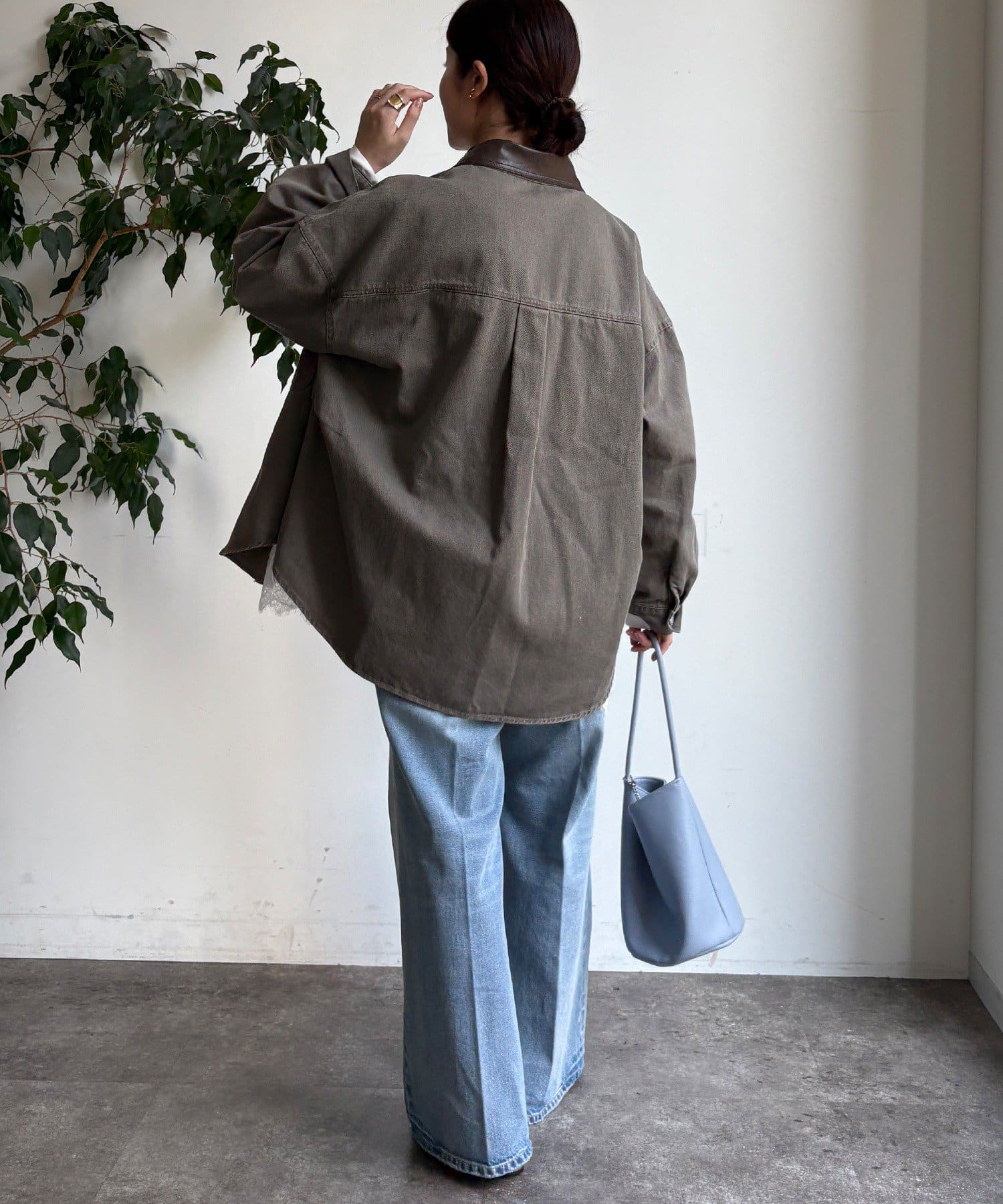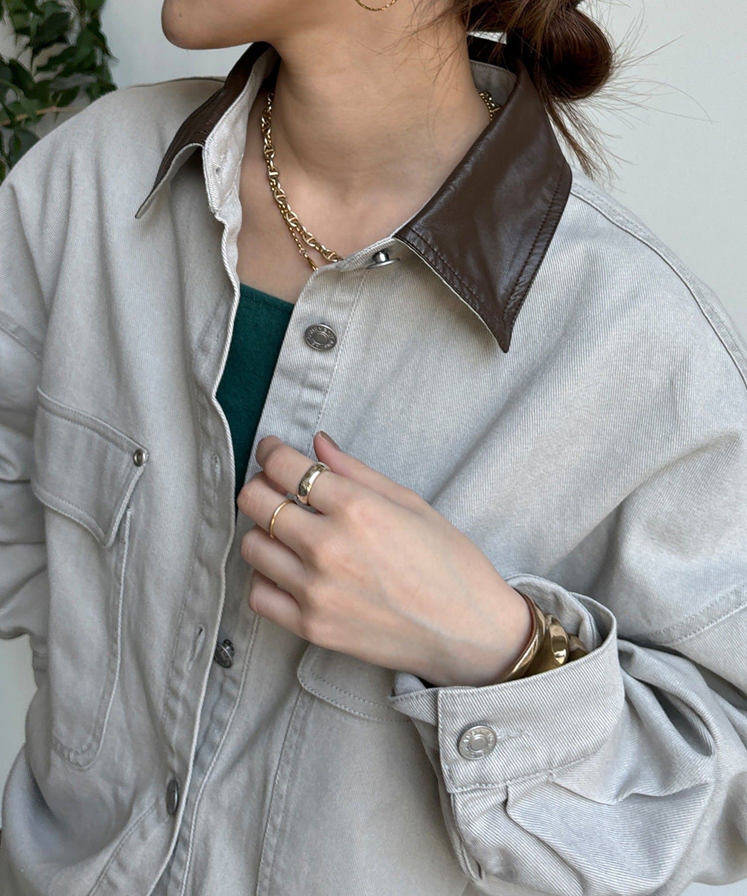 ・衿がフェイクレザーで大人カジュアルに