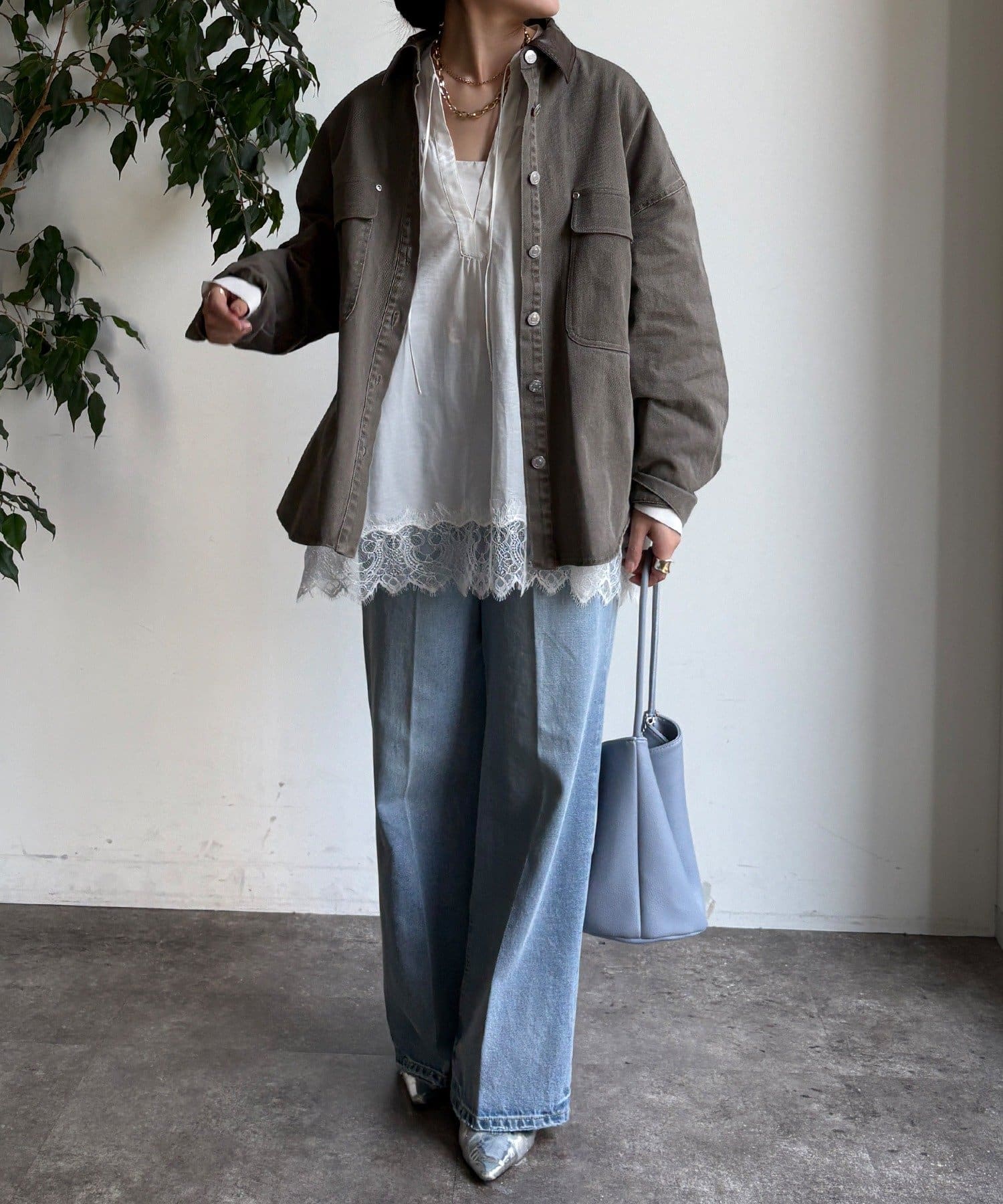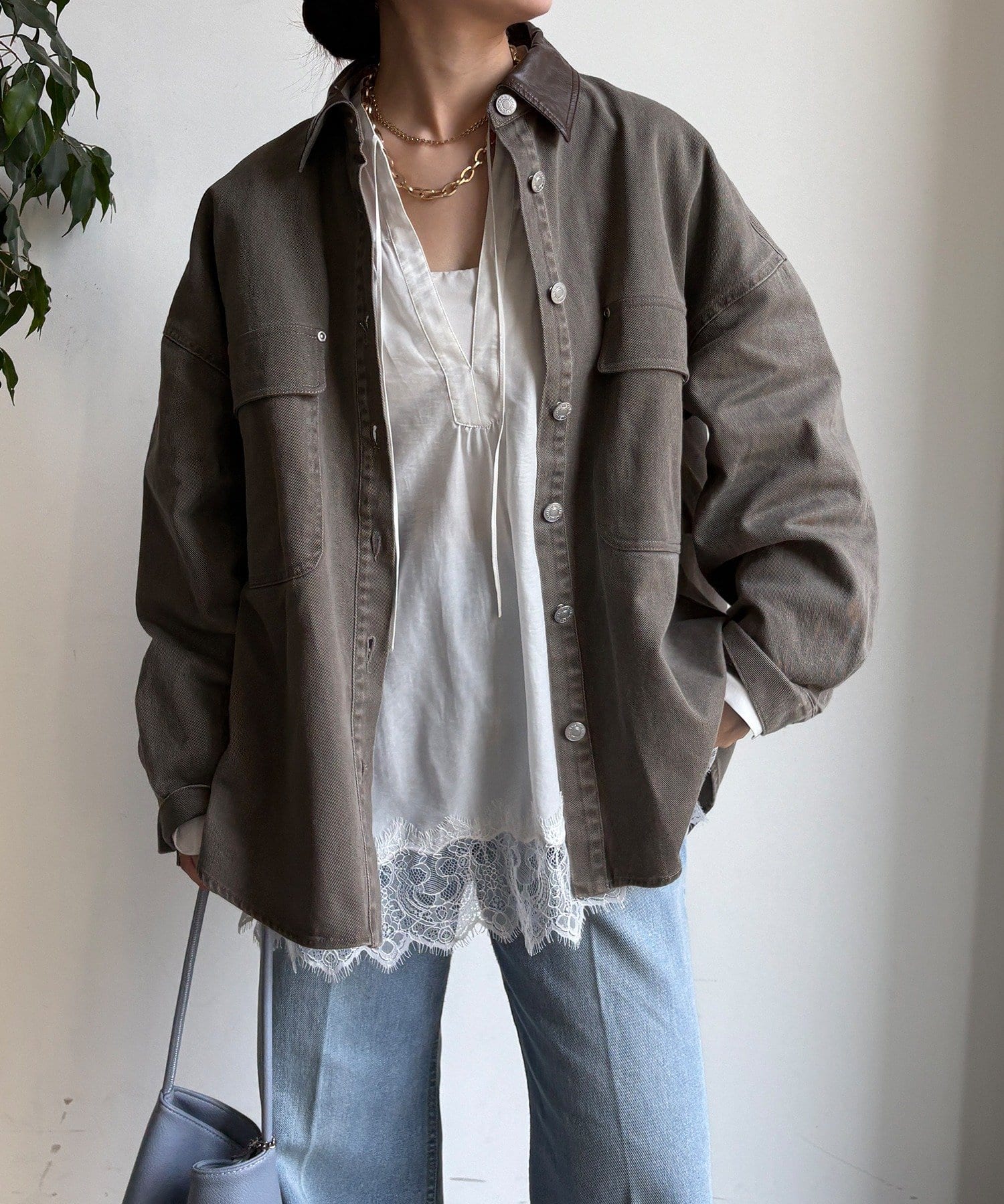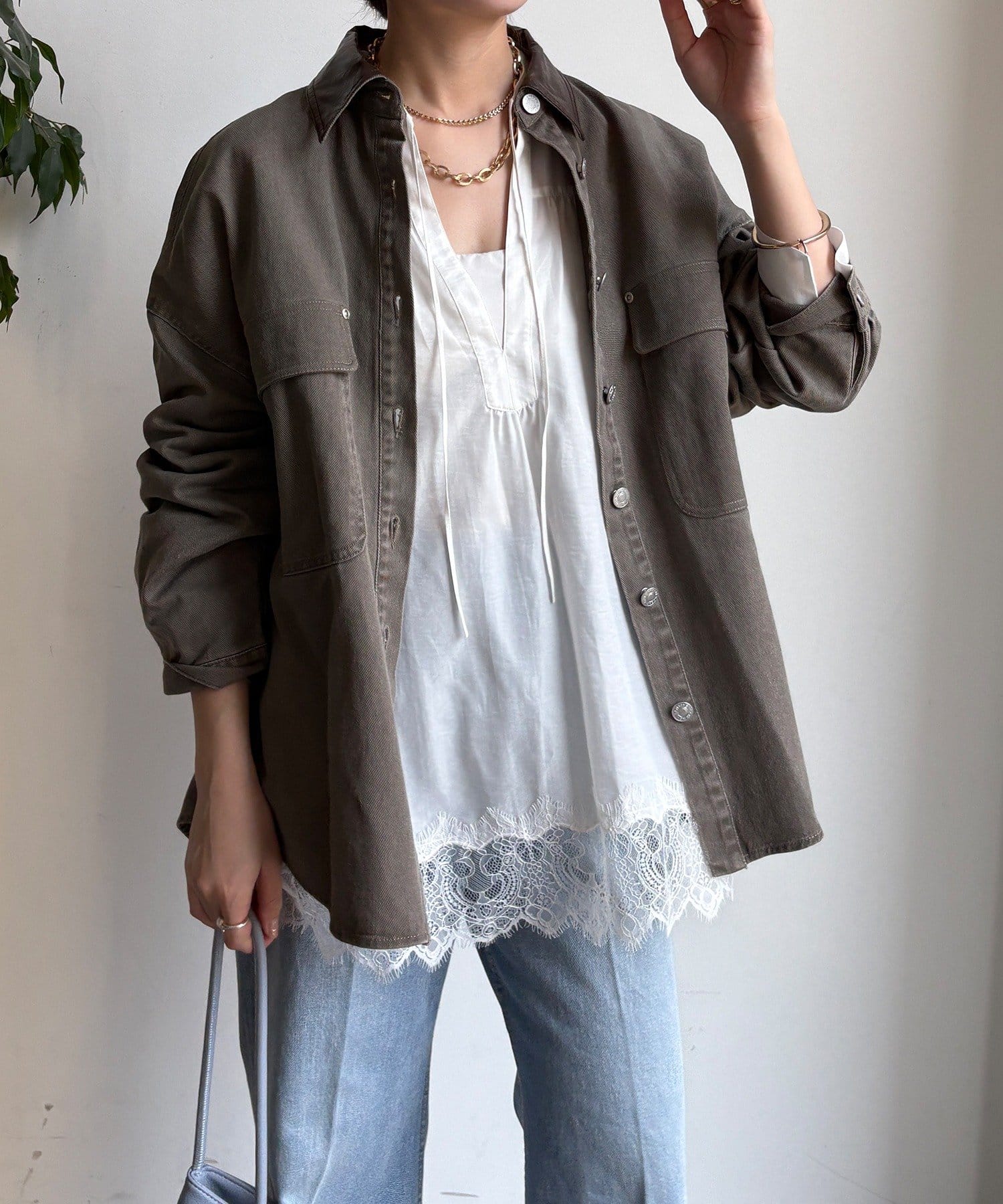 スタイリングが完成するシャツジャケット。