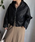 • DOUDOU(ドゥドゥ) 【WEB限定】フェイクレザーショートフーディージャケット