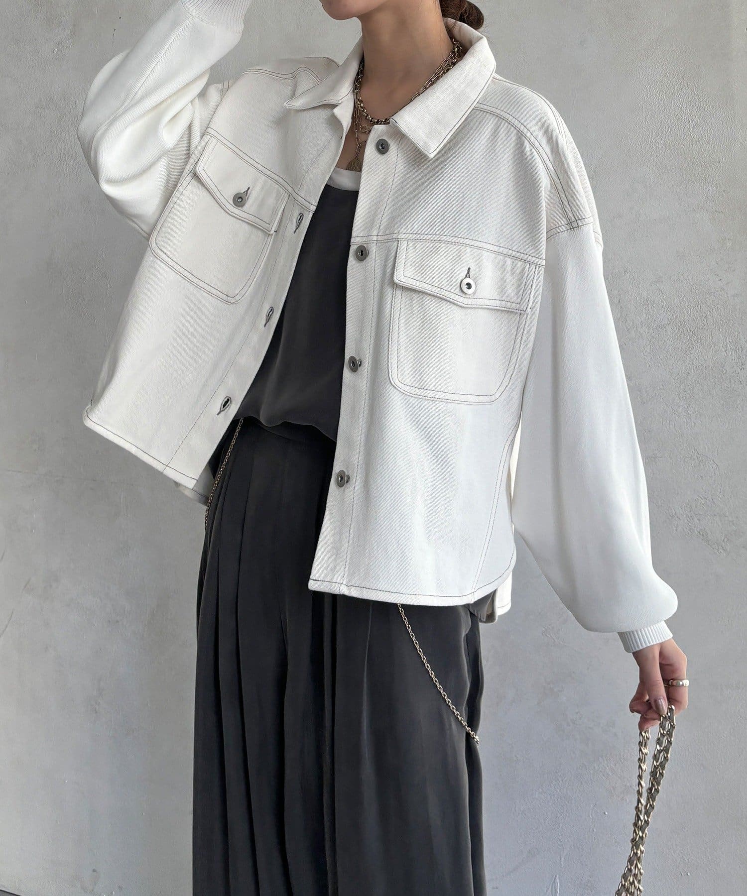 • DOUDOU(ドゥドゥ) 【WEB限定】袖ニットデニムジャケット