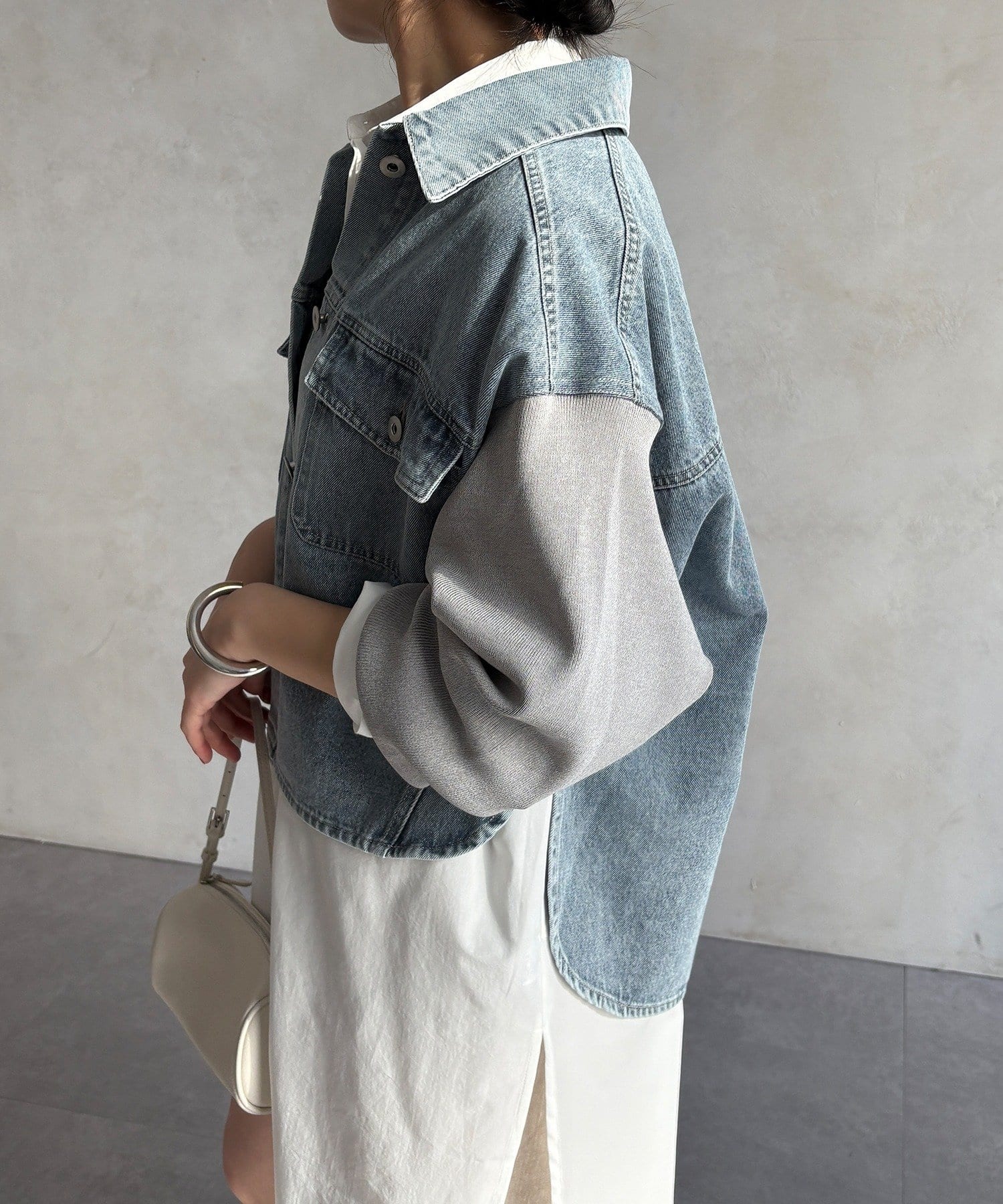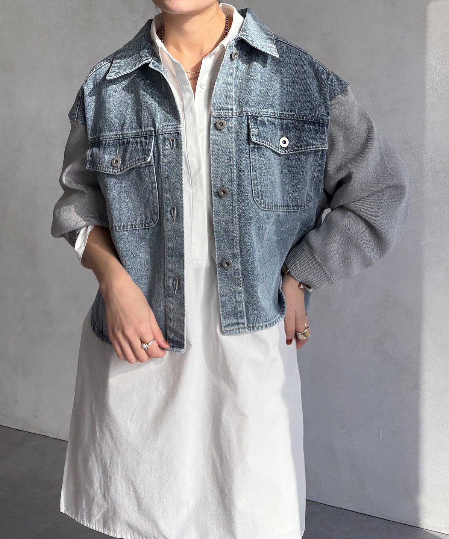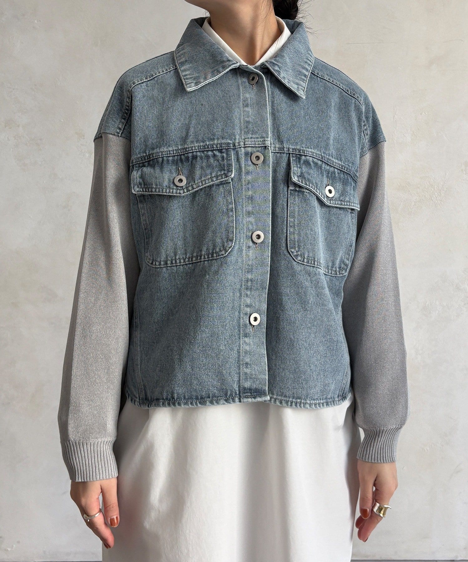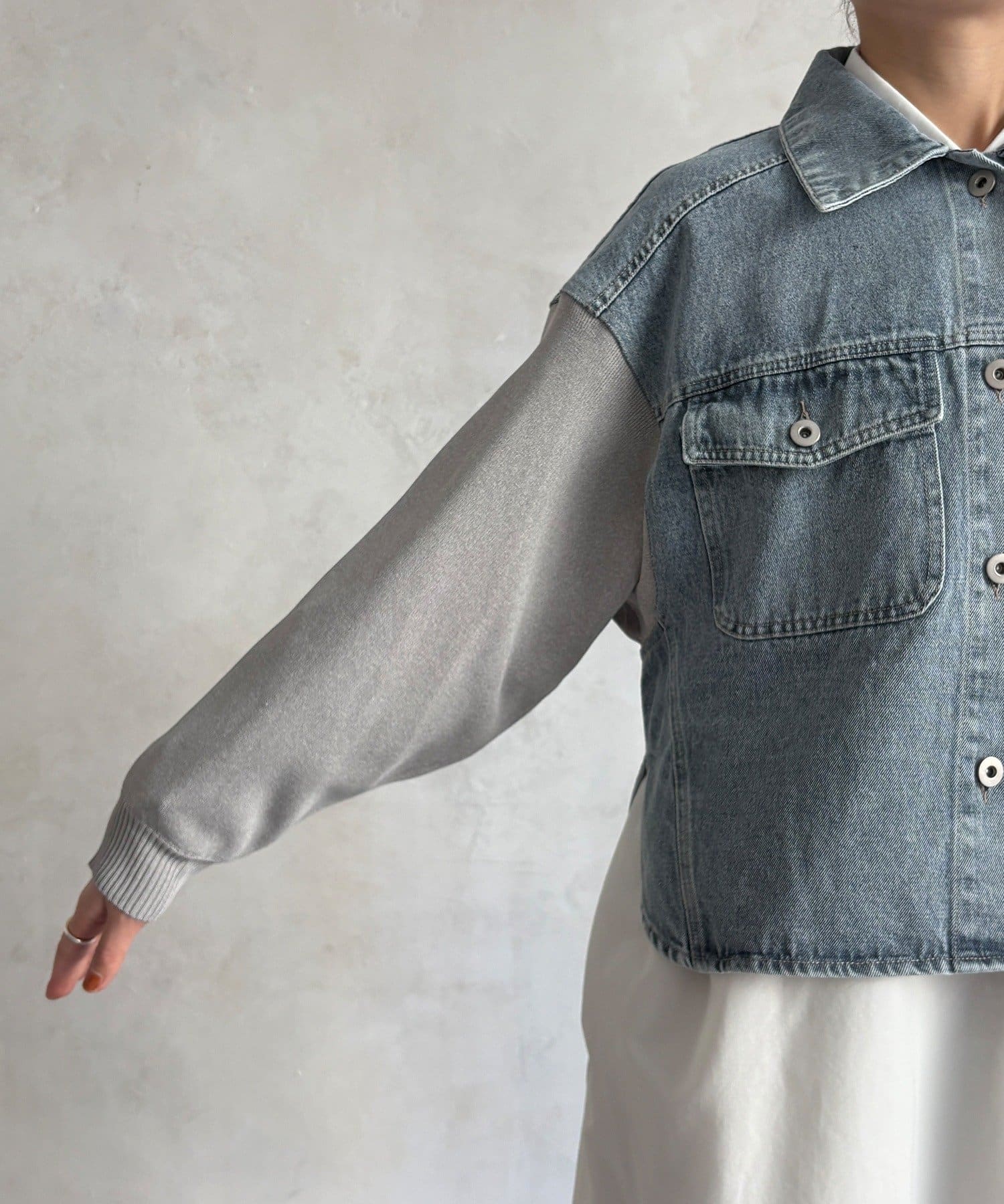DOUDOU(ドゥドゥ) 【WEB限定】袖ニットデニムジャケット