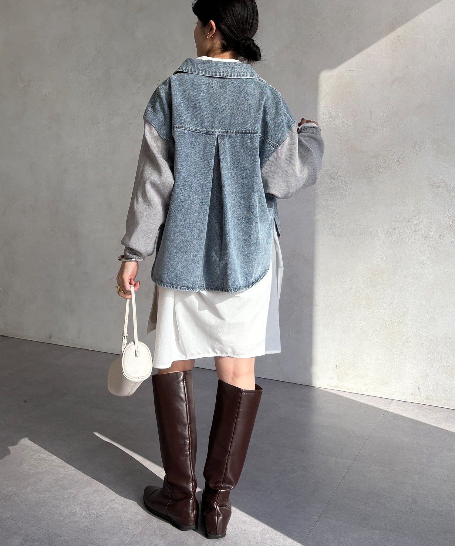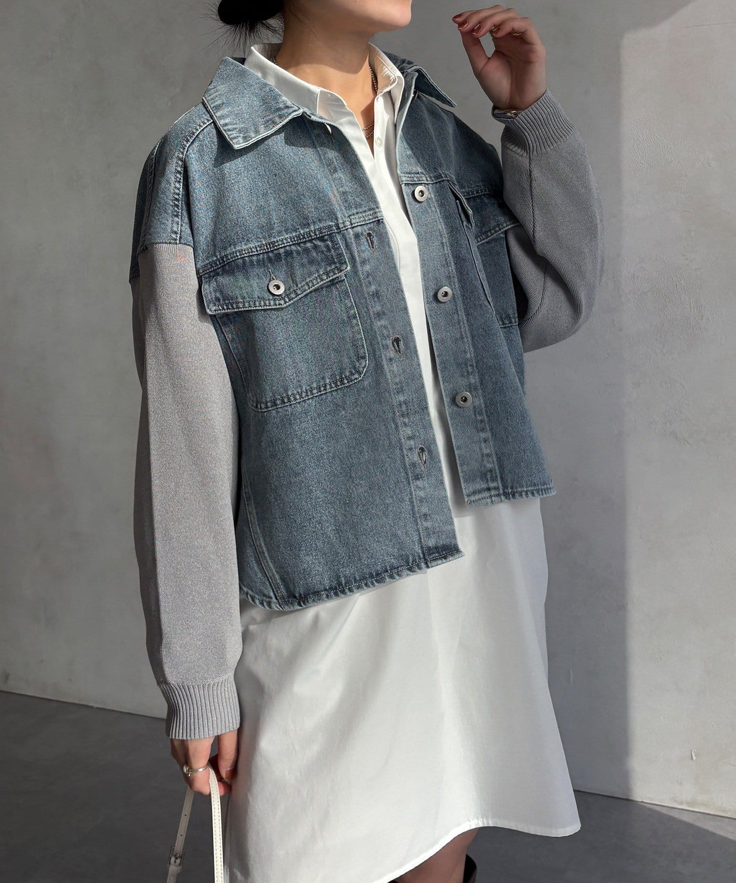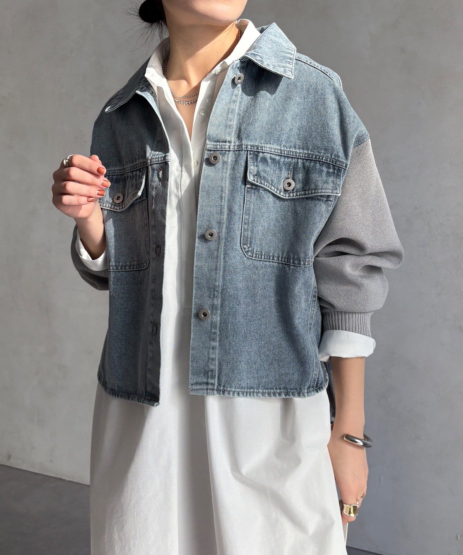 DOUDOU(ドゥドゥ) 【WEB限定】袖ニットデニムジャケット