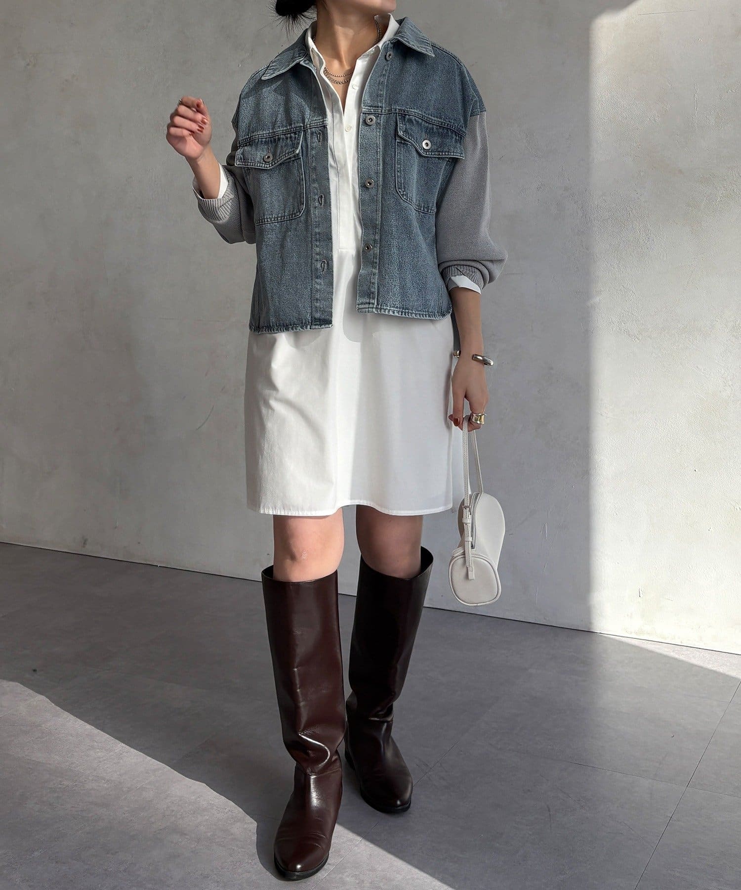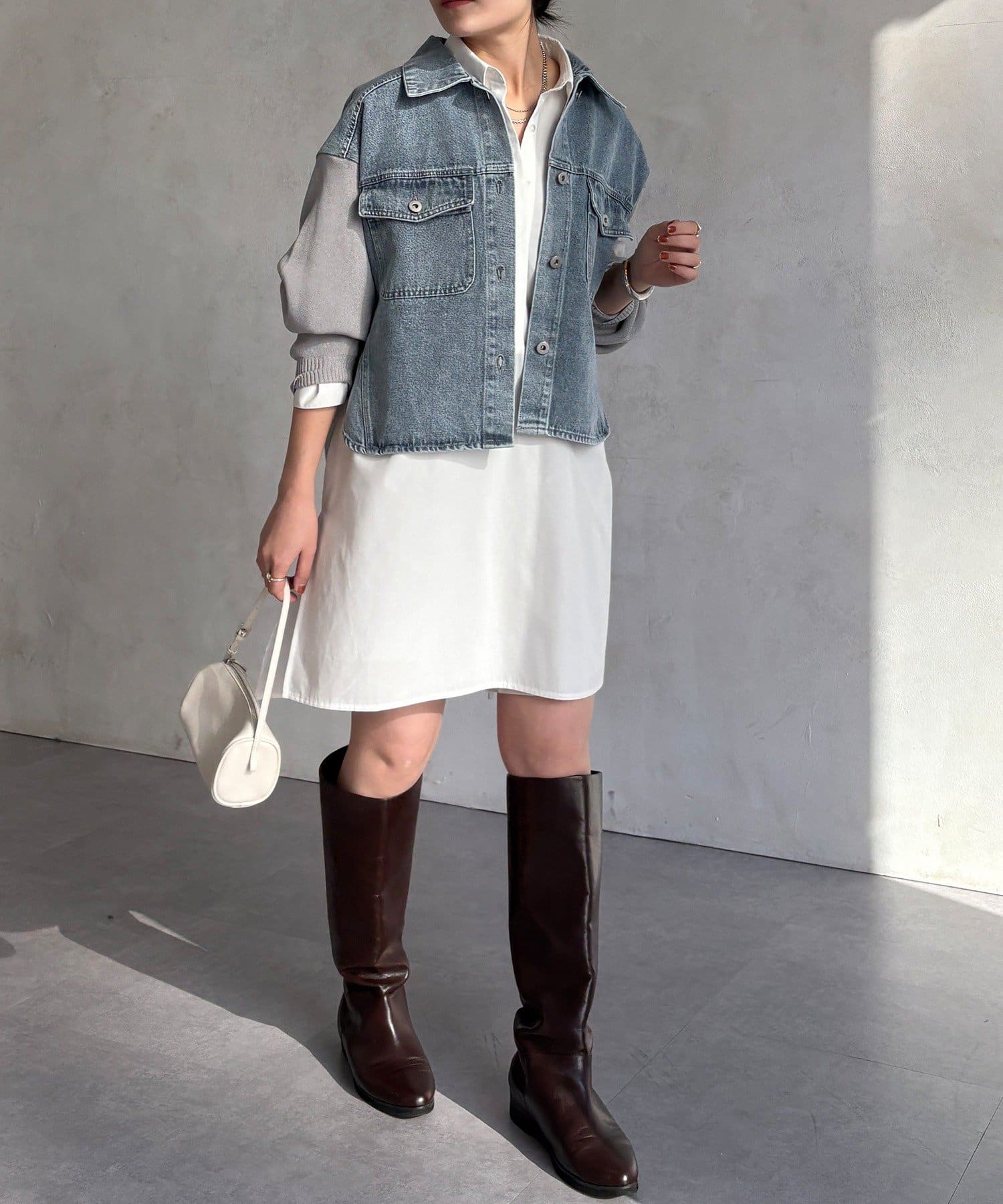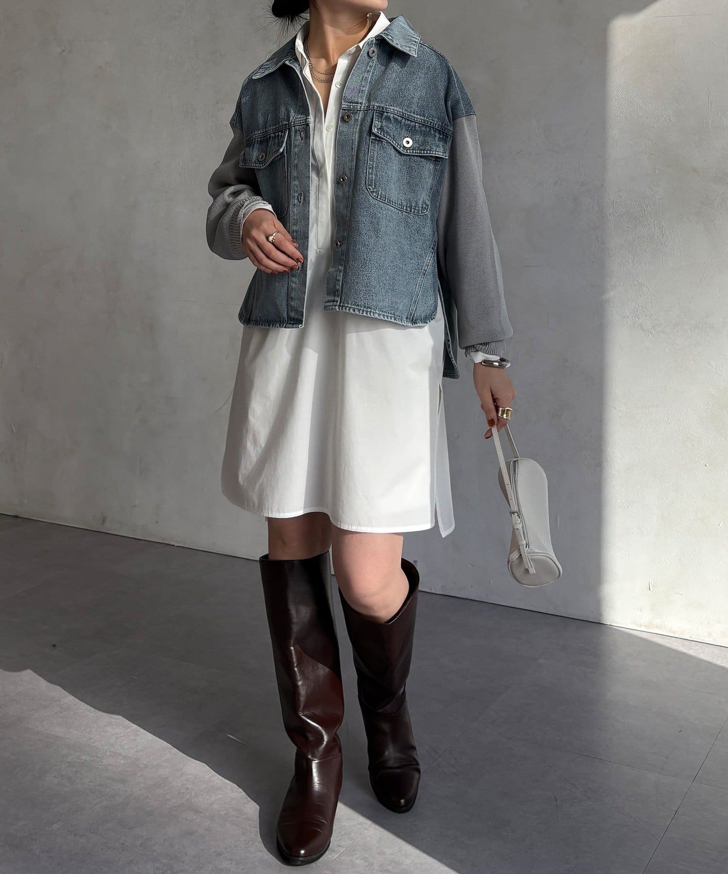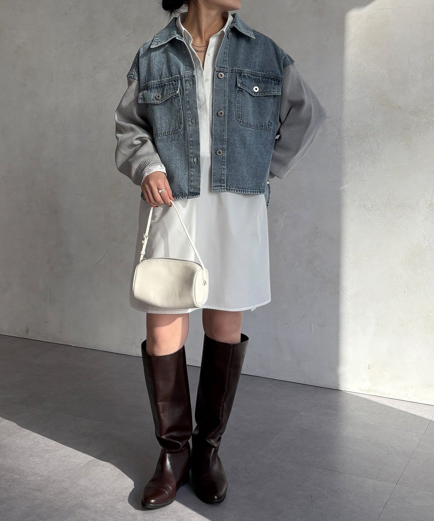 DOUDOU(ドゥドゥ) 【WEB限定】袖ニットデニムジャケット