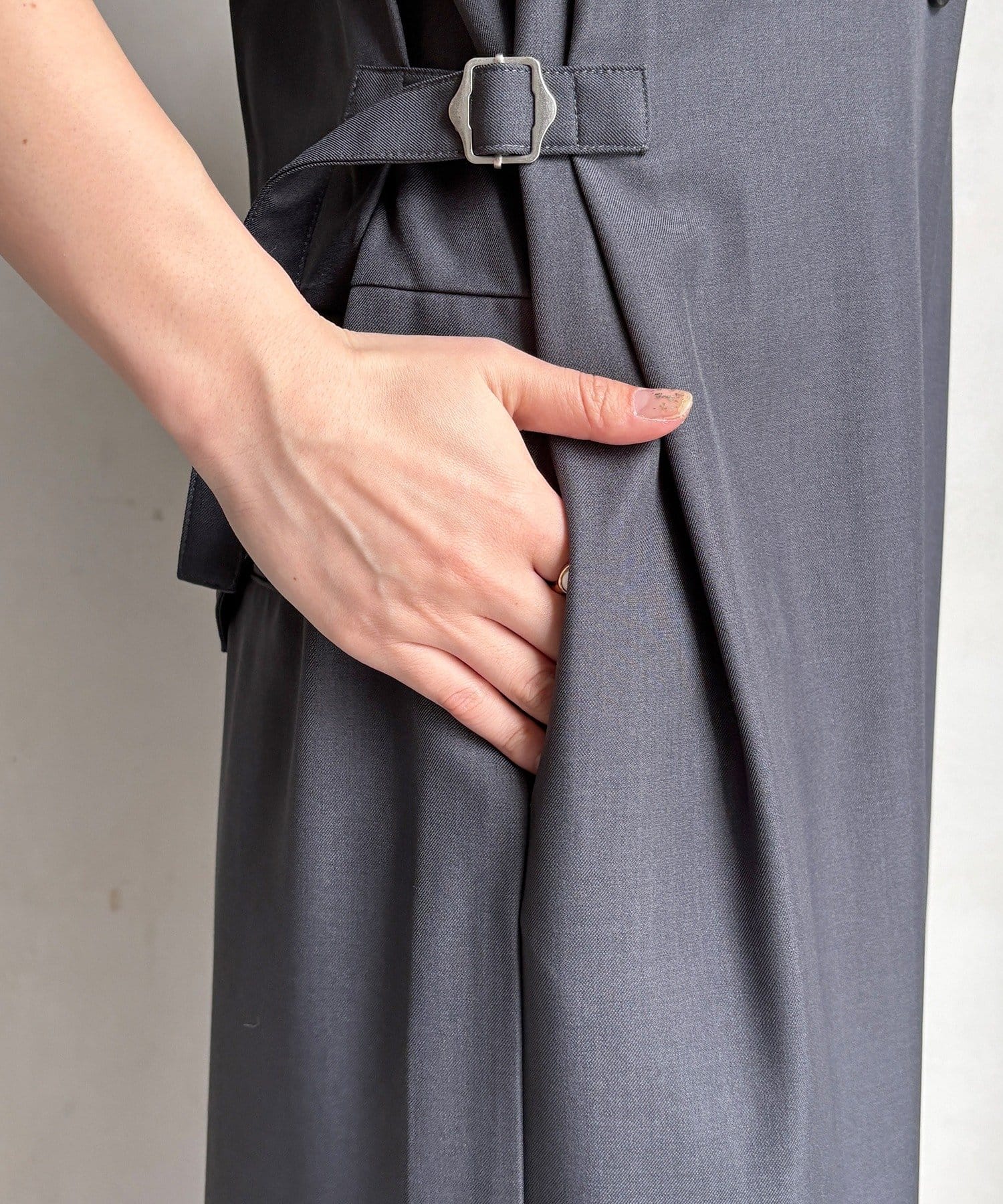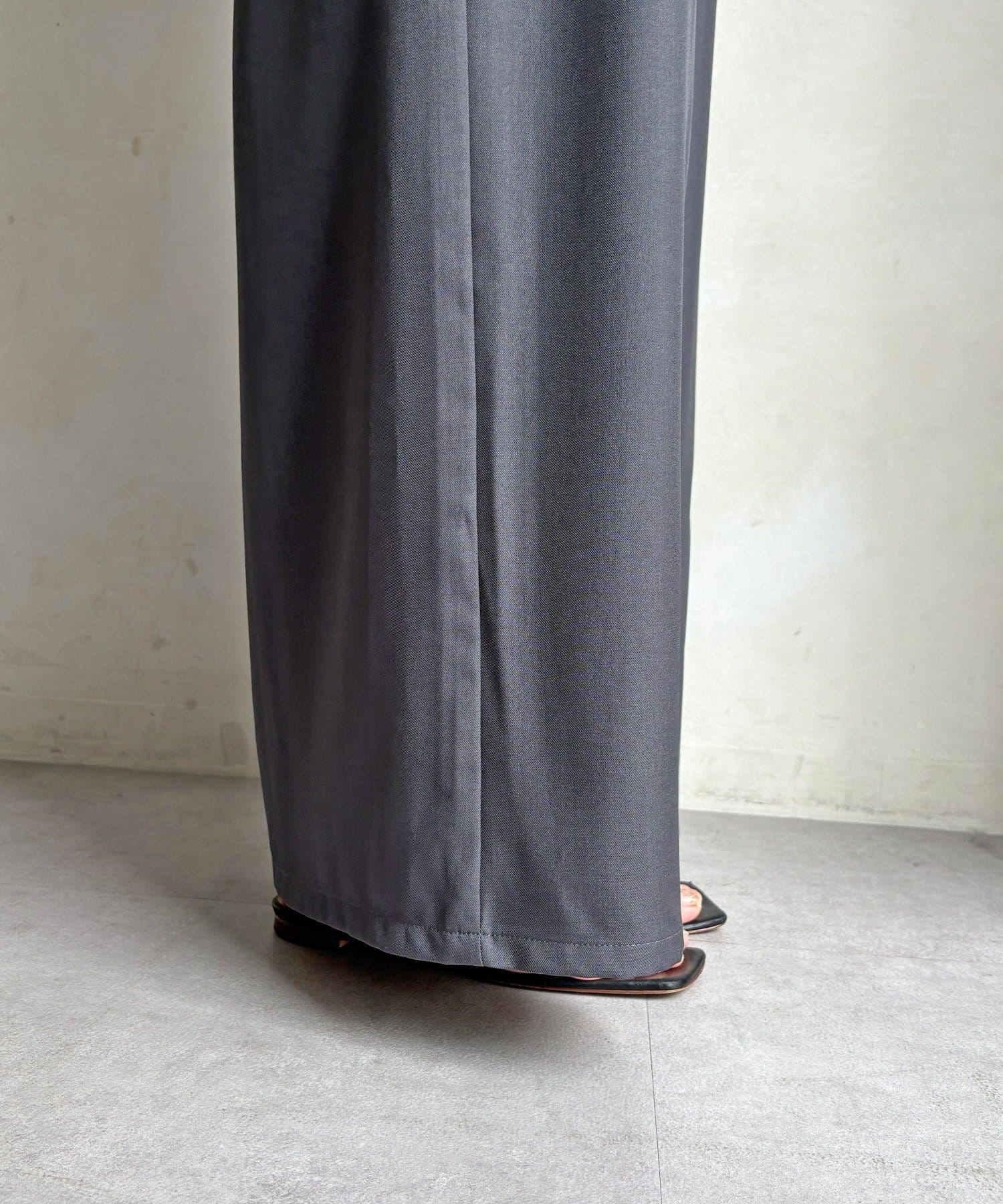 キレイ目な落ち感素材なので長時間着用してもシワになりにくいのも嬉しいポイント◎