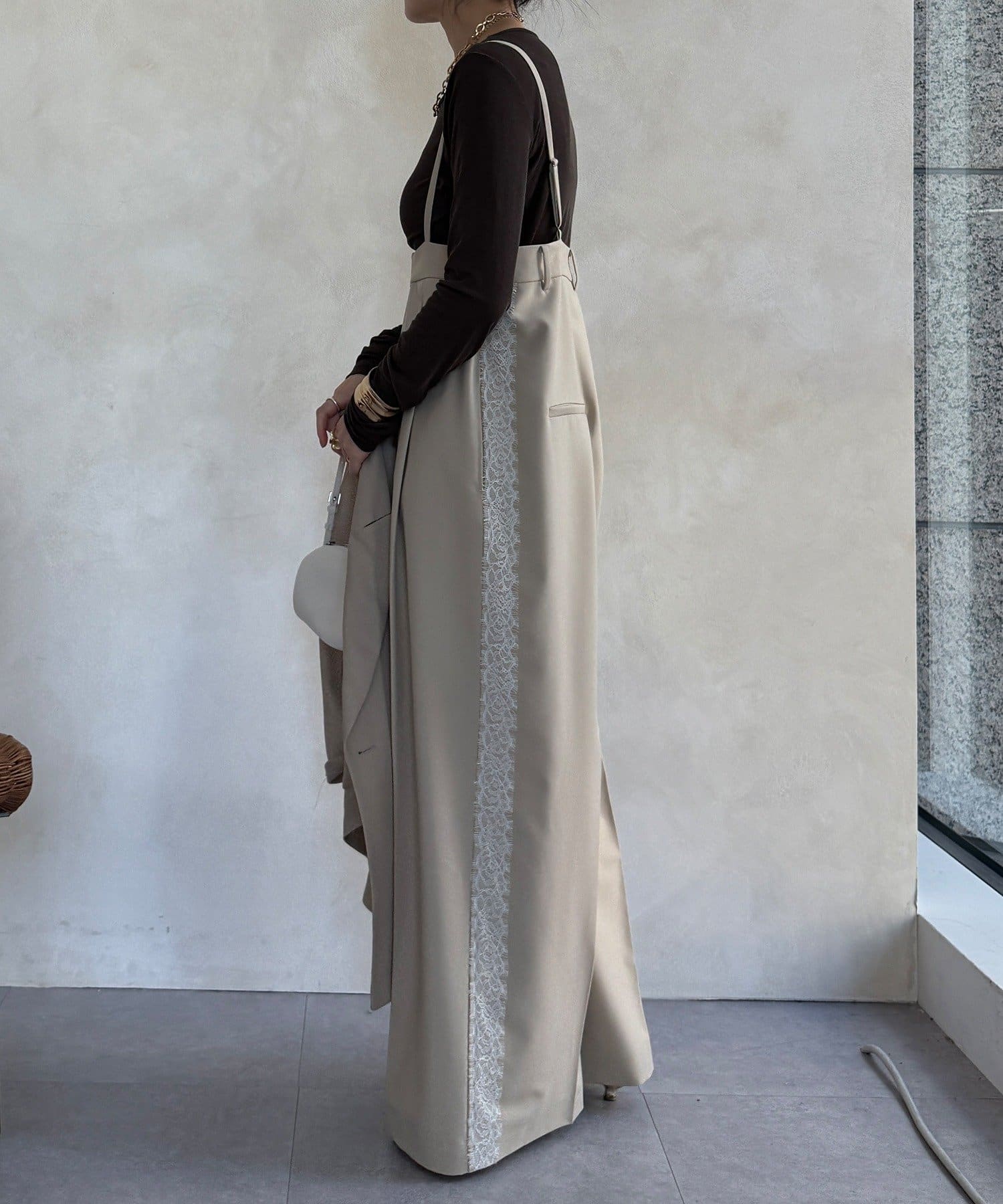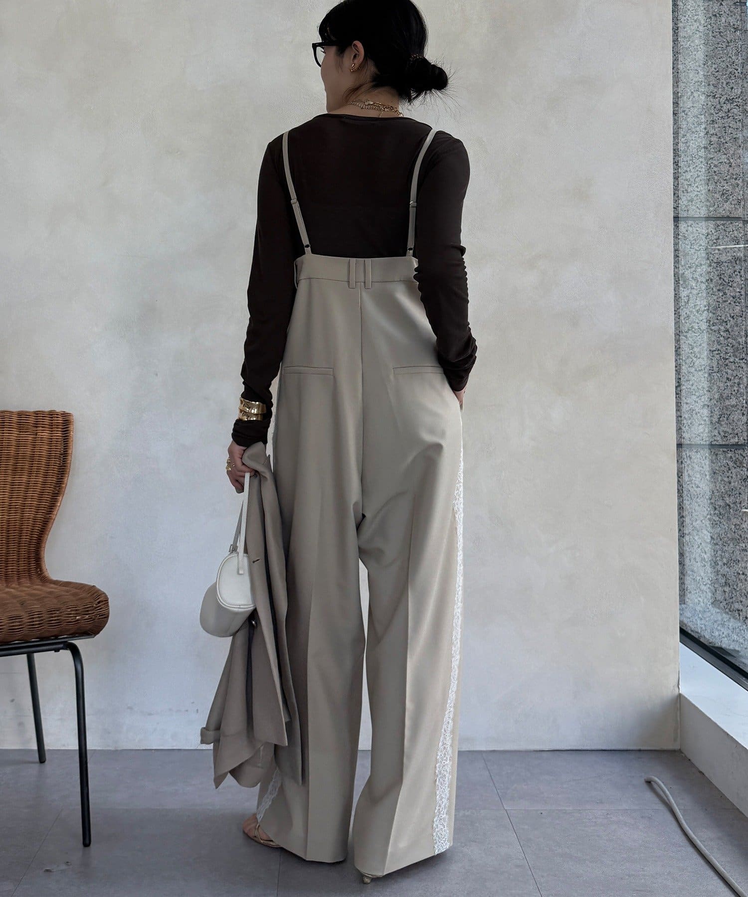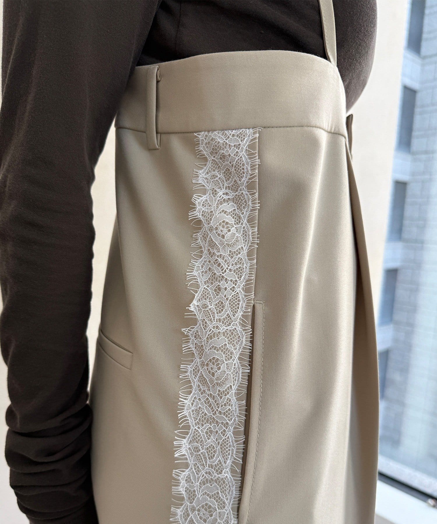 キレイ目なワイドシルエットで、サイドにはレースラインが施されてます。