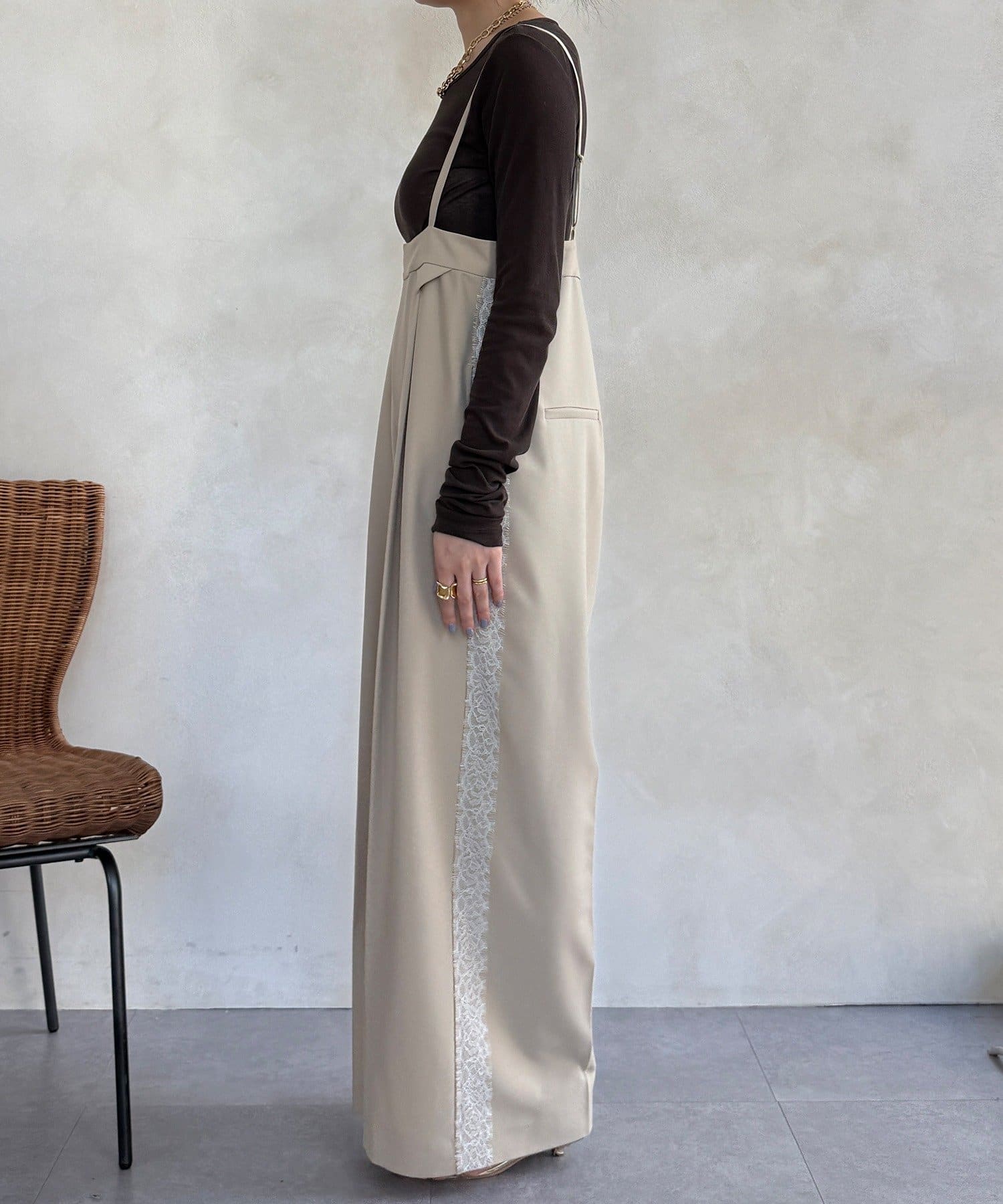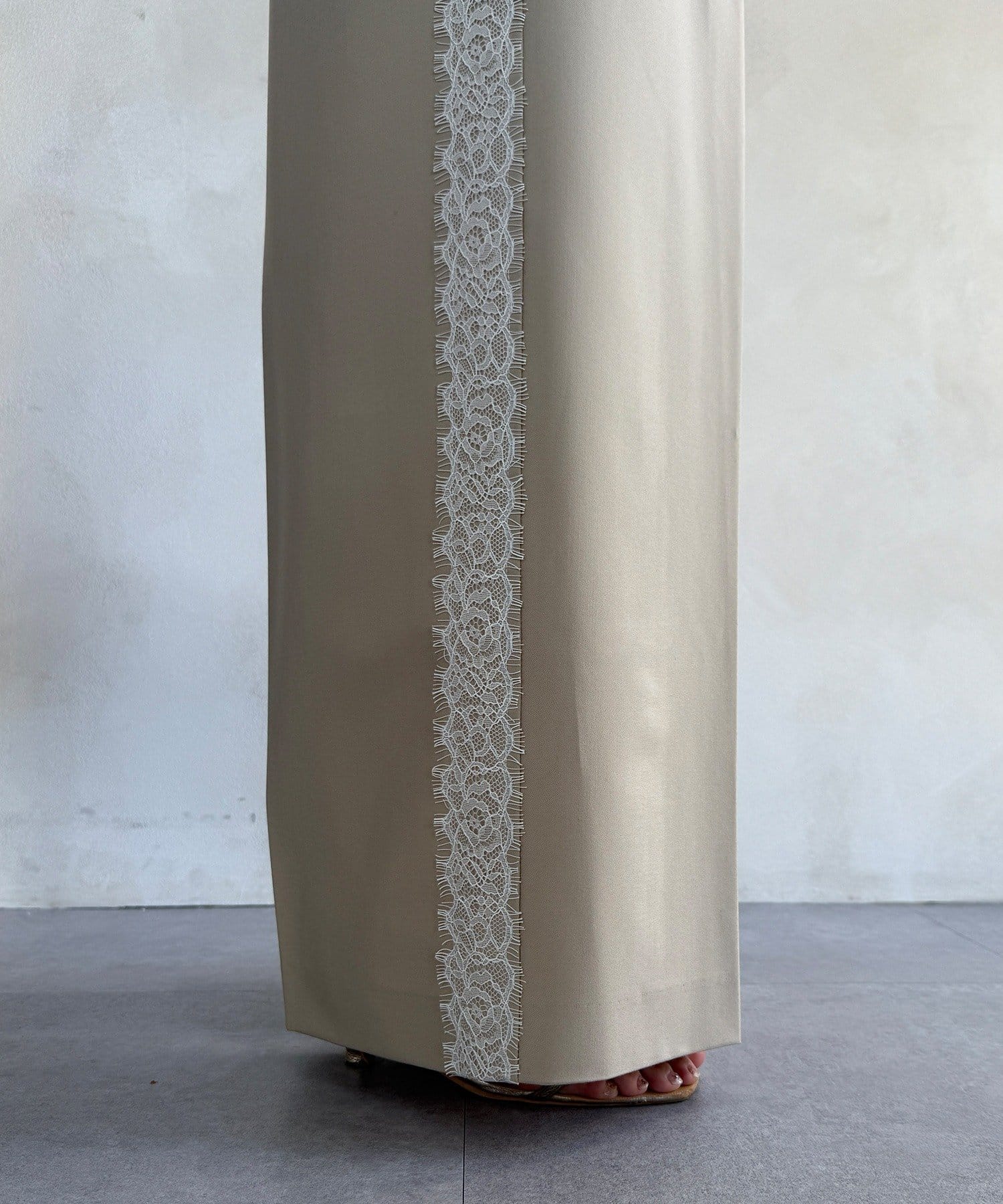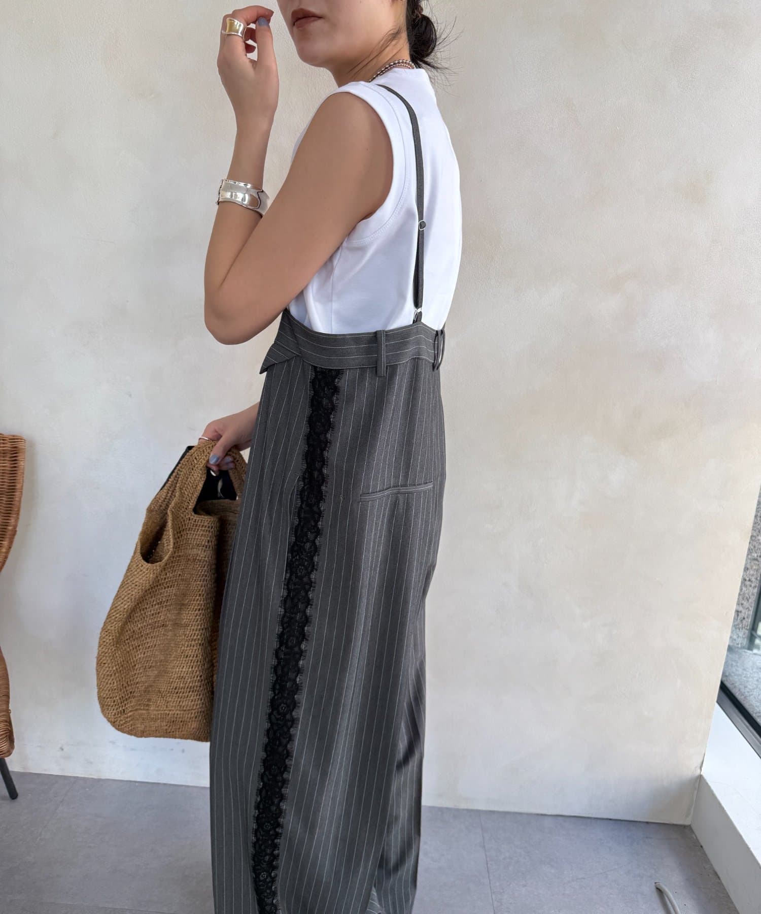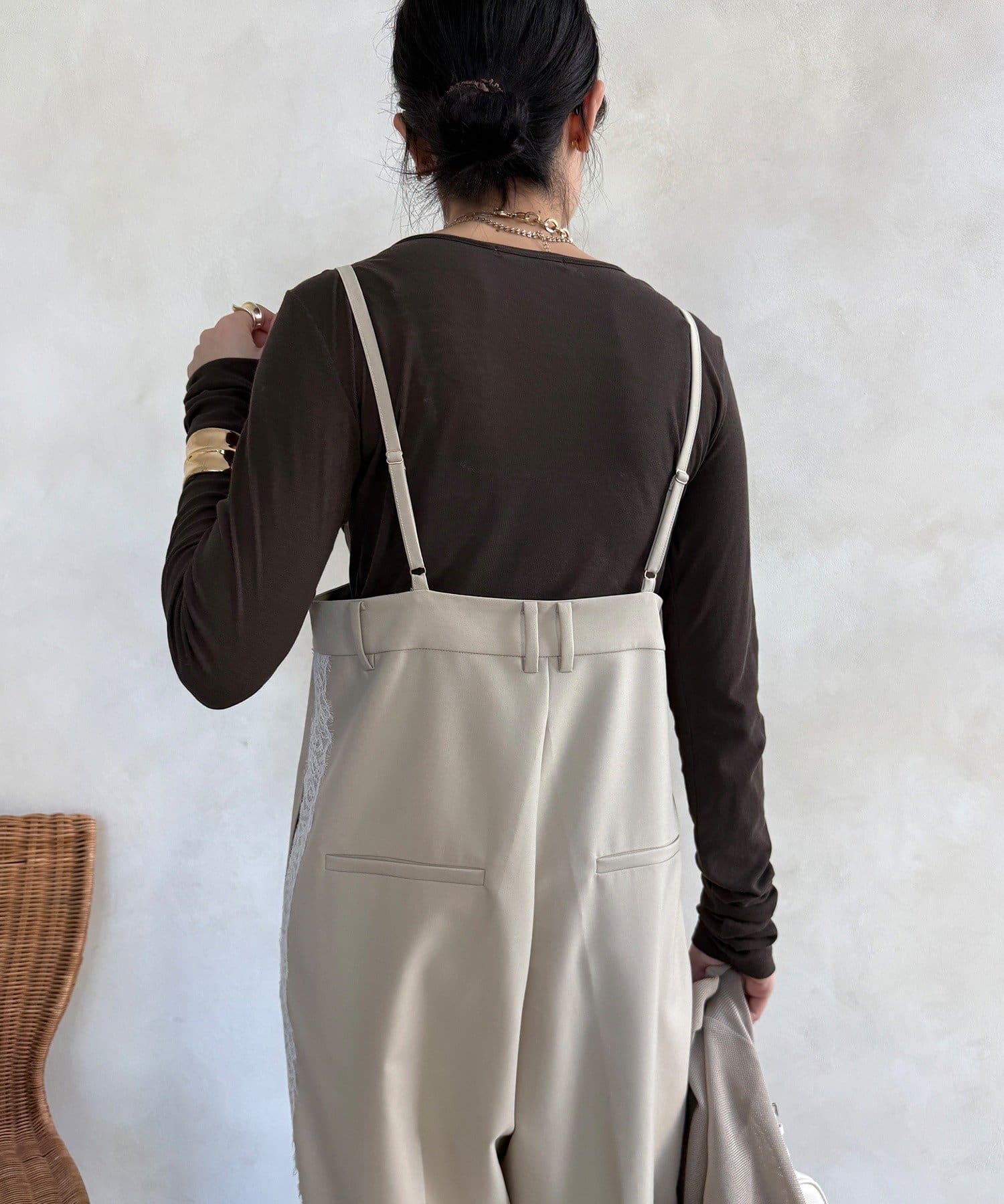 キレイ目なワイドシルエットで、サイドにはレースラインが施されてます。