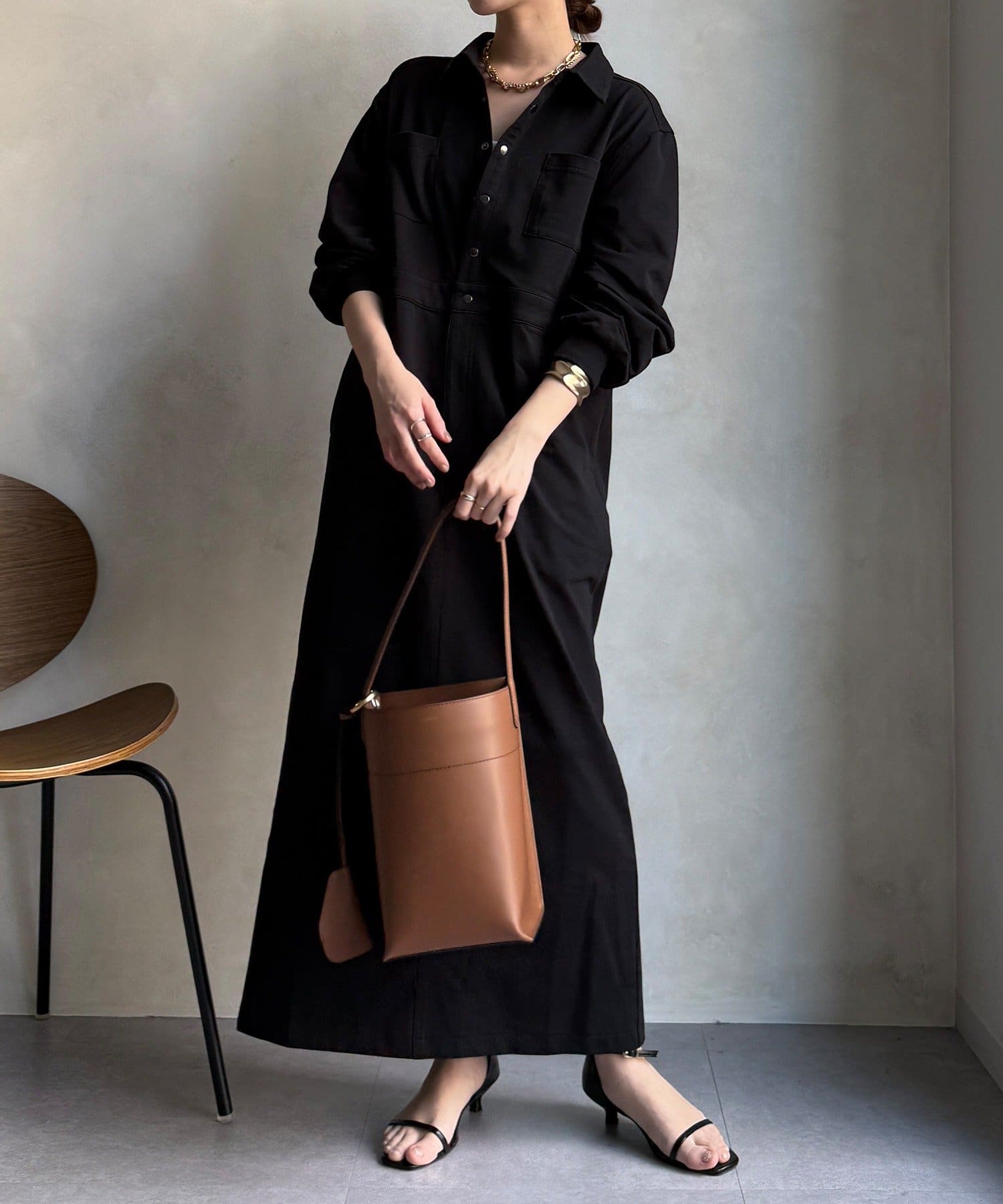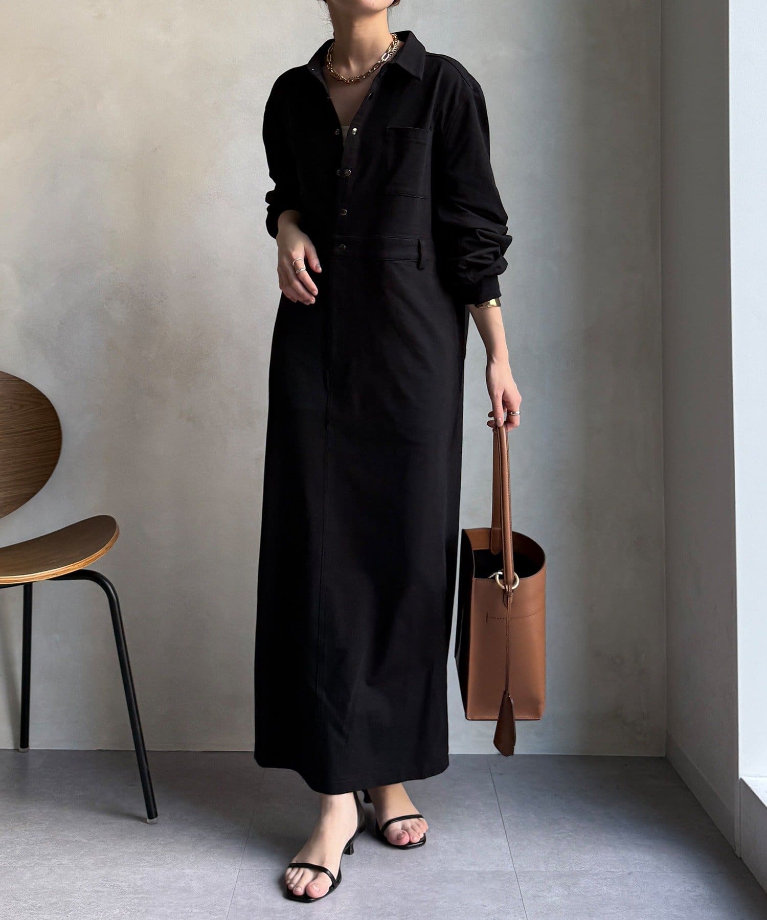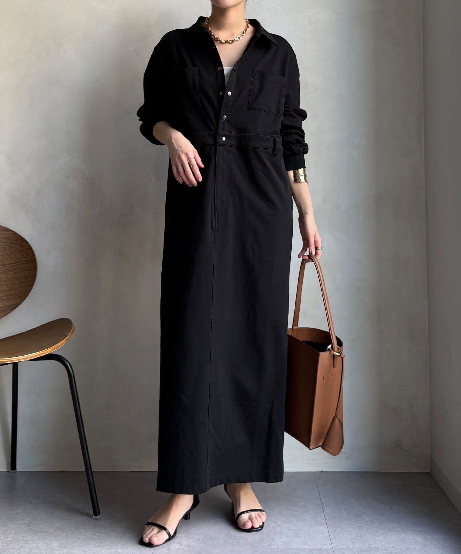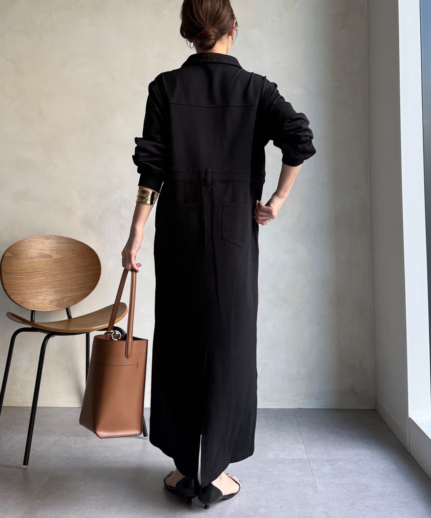 足首まであるマキシ丈が一枚でサラッと着れて安心感を与えてくれます。