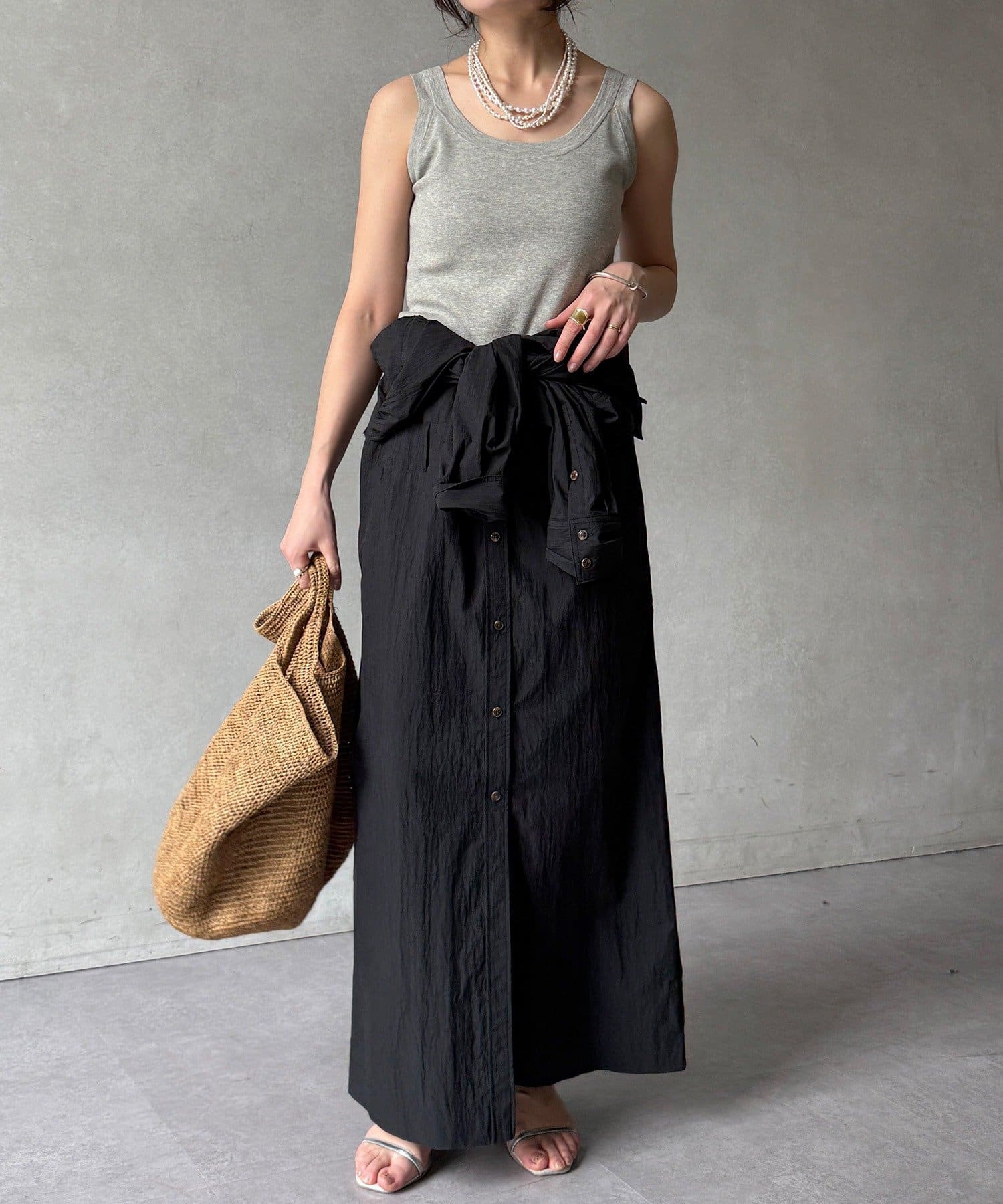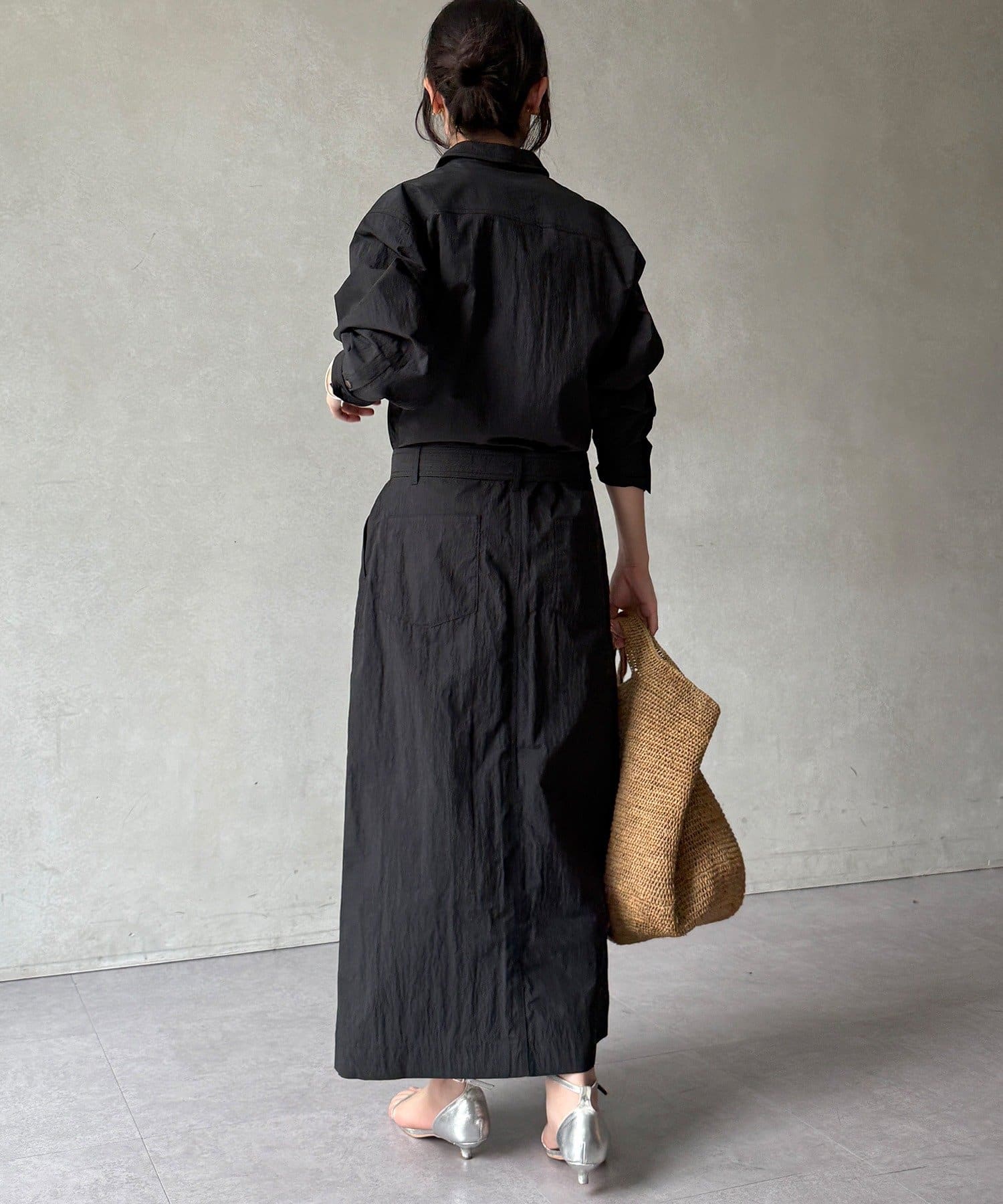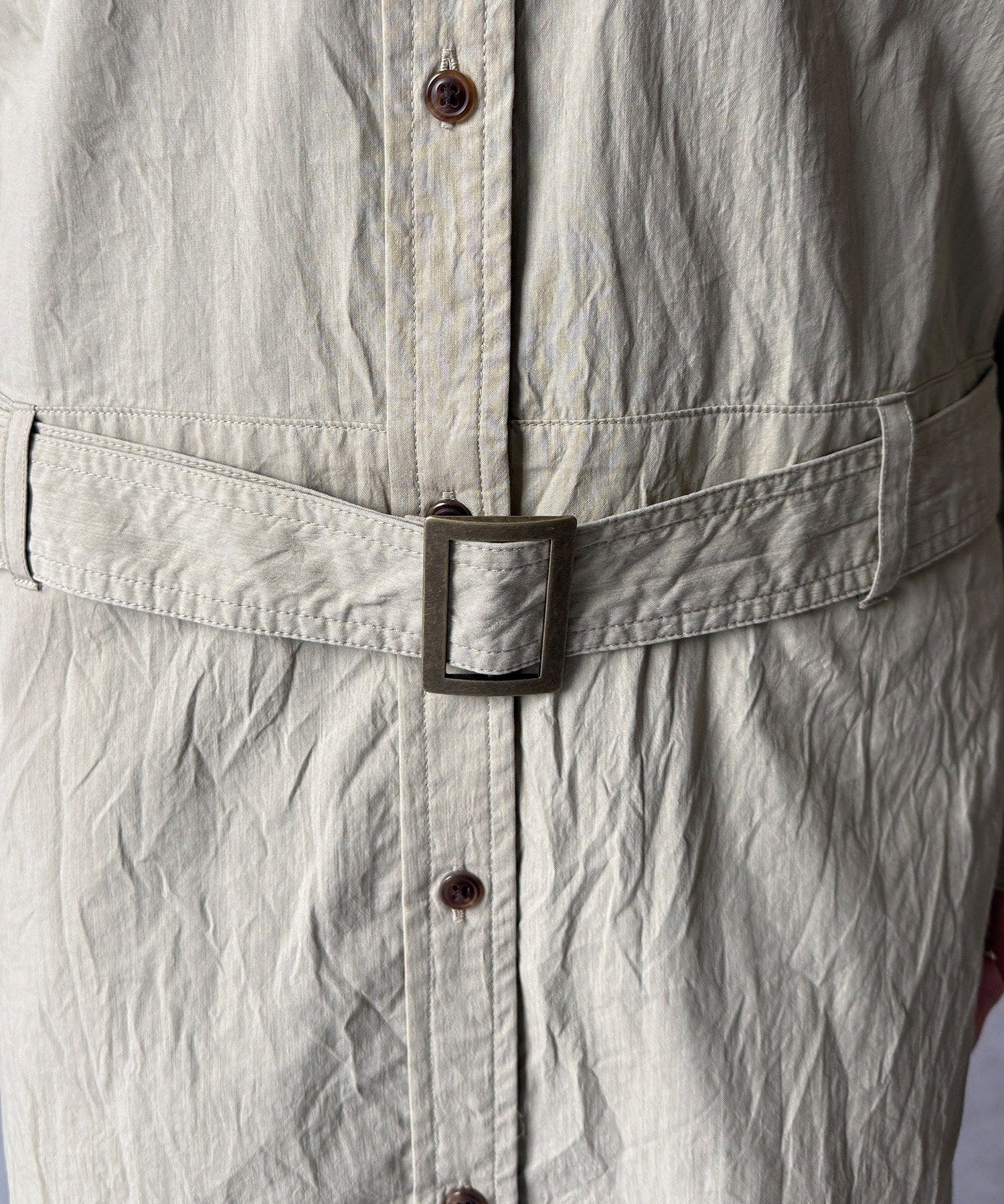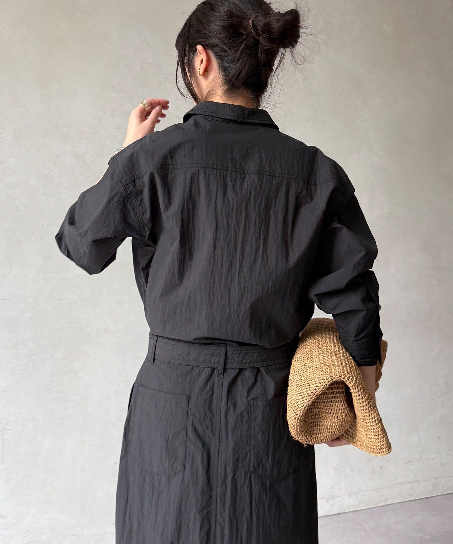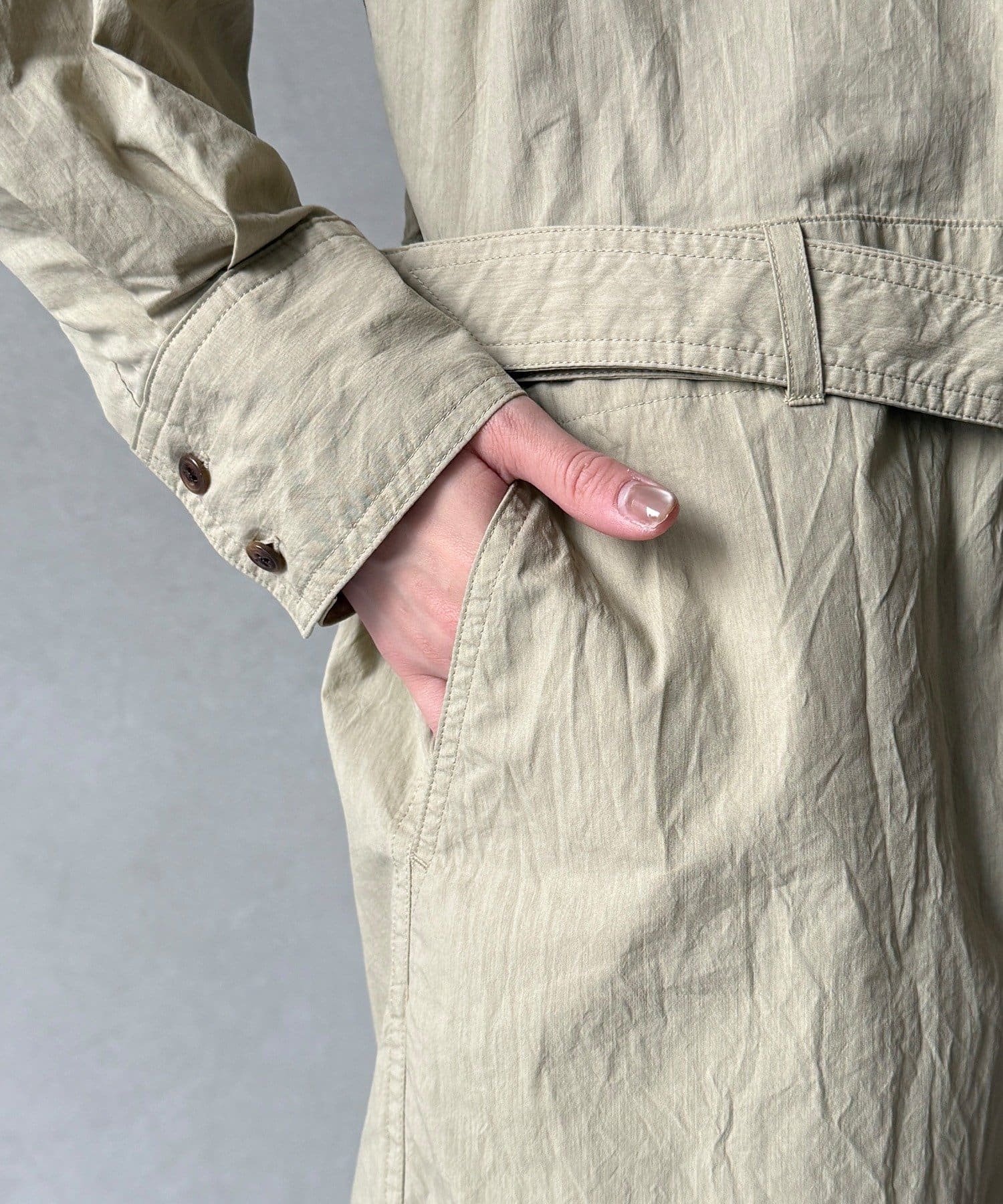 付属のベルトでウエストマークすれば、シルエットにメリハリをプラスでき