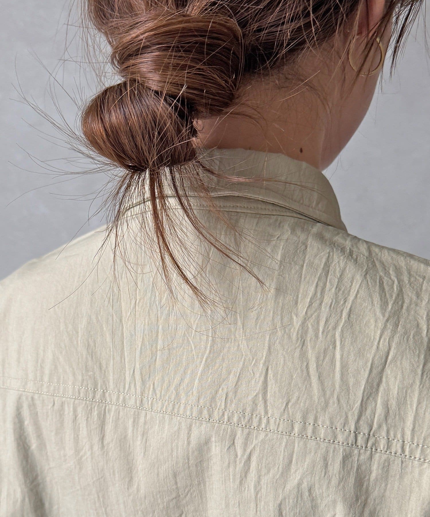 襟周りにワイヤーが内蔵されているシャツワンピース。