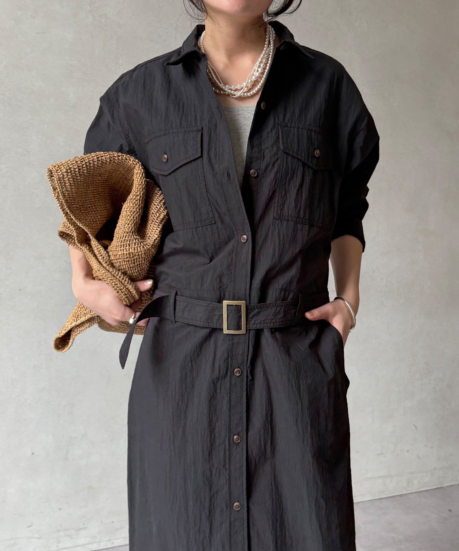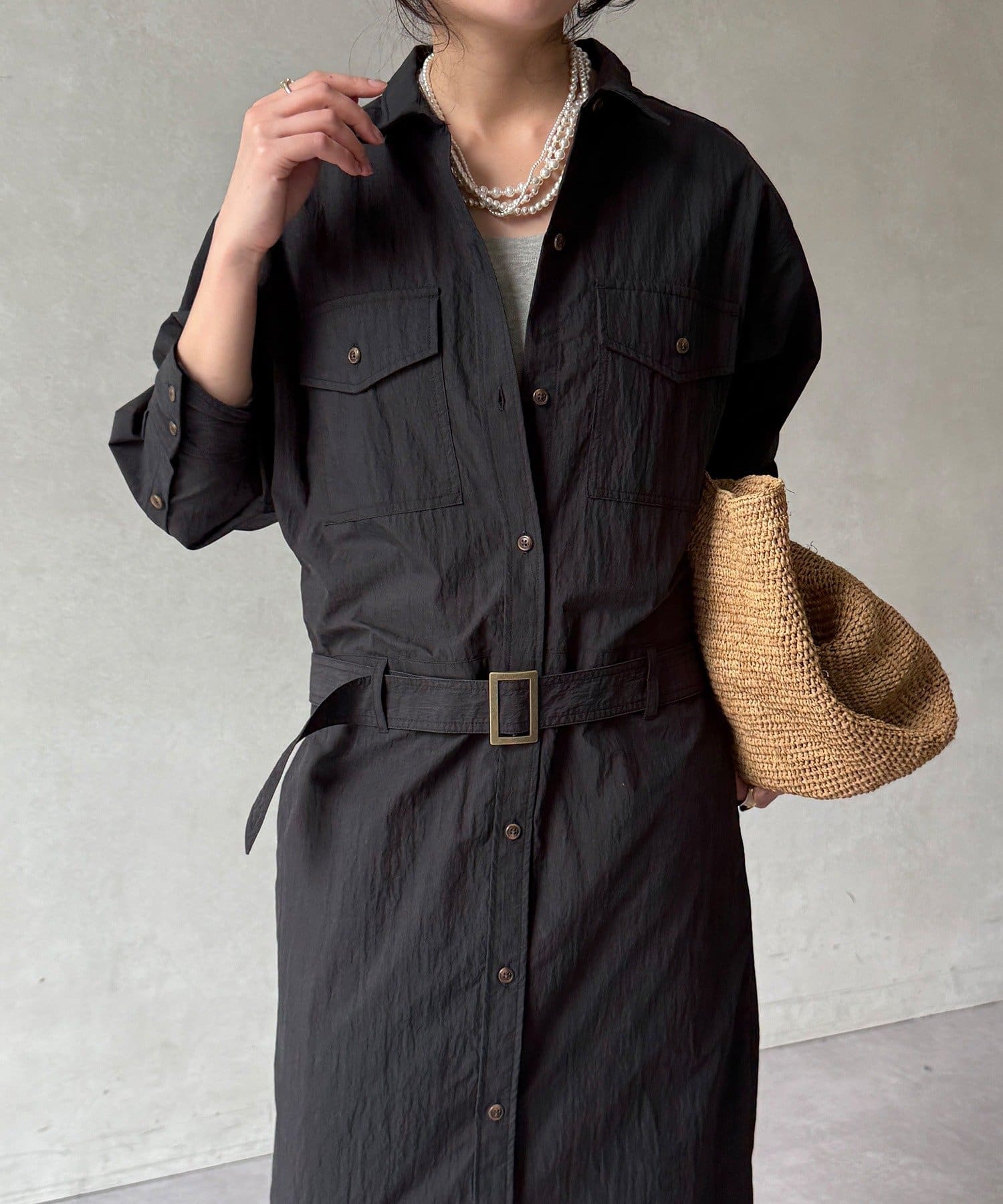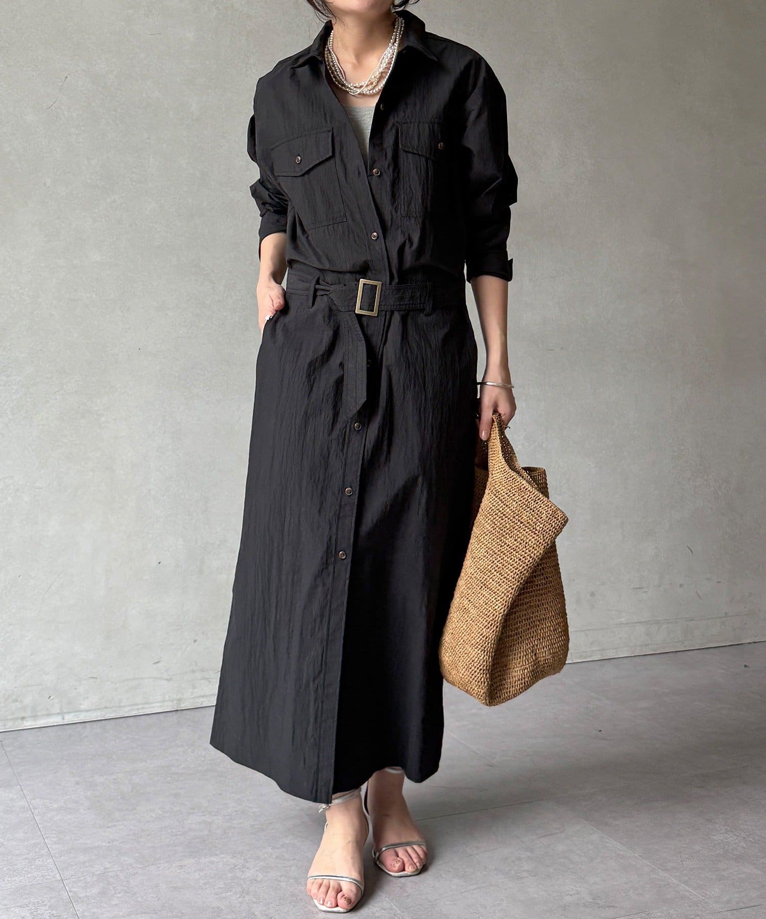 襟元で表情が変わる!大人のモードな抜け感ワンピース