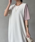 シンプルながらも袖の片側だけにカラーを入れたデザインが、さりげないアクセントに。