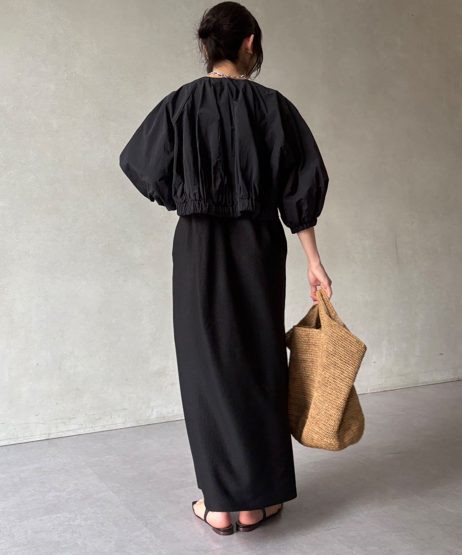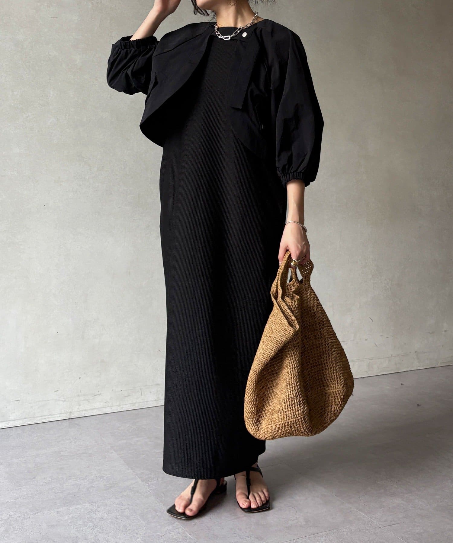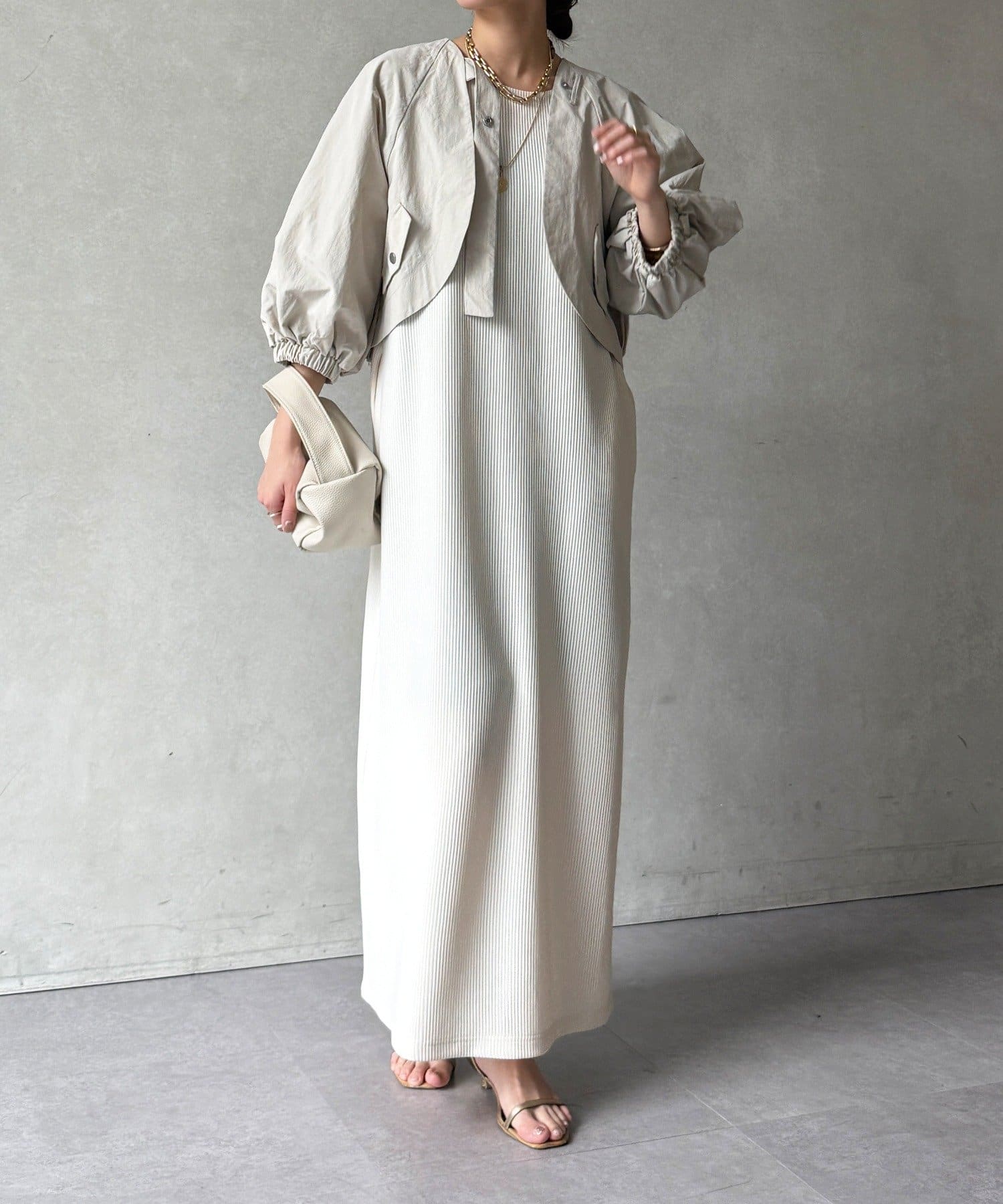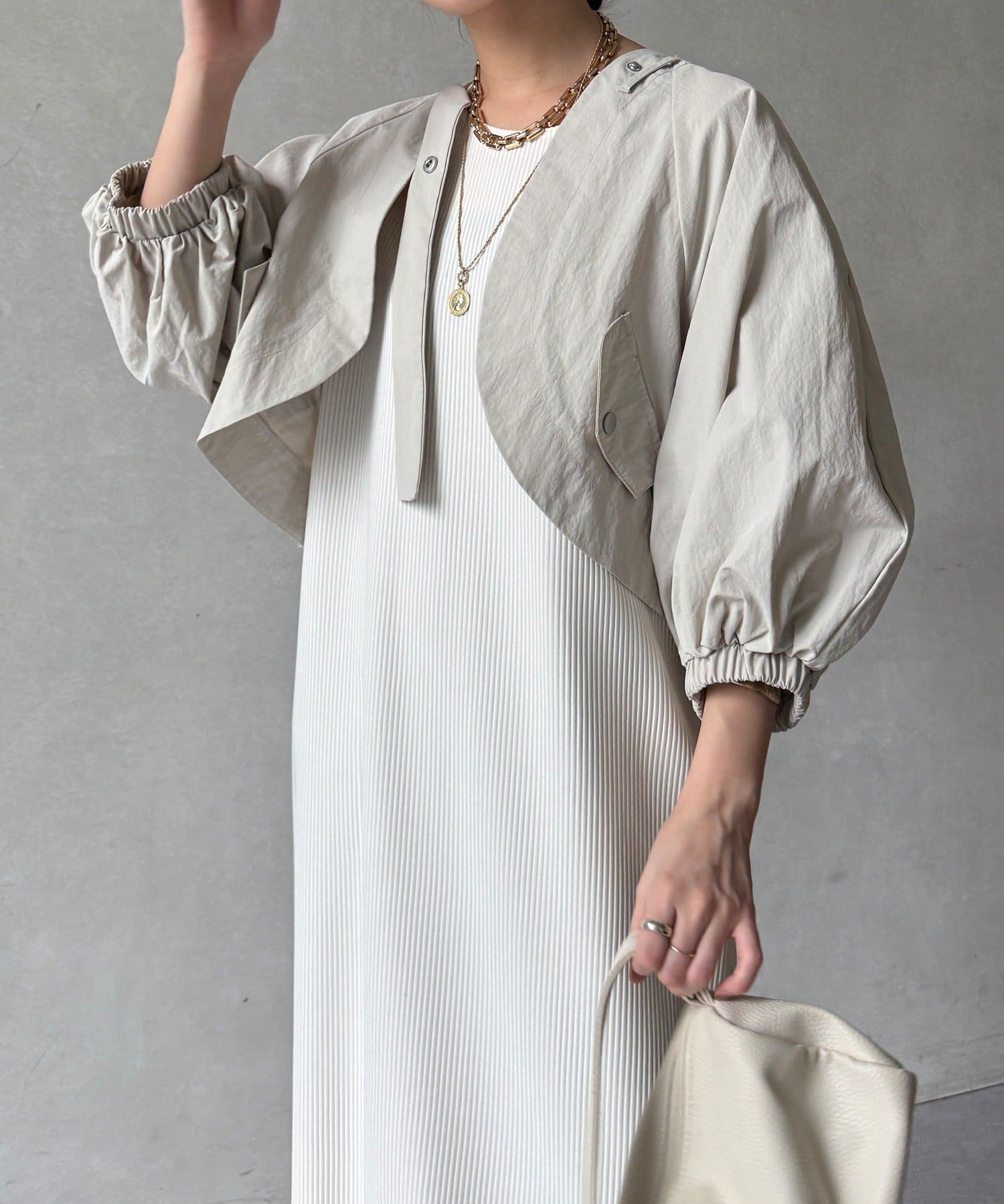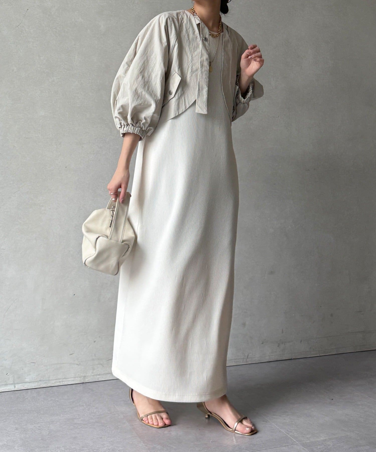ボレロとワンピースがセットになった、着回し力の高い一枚。