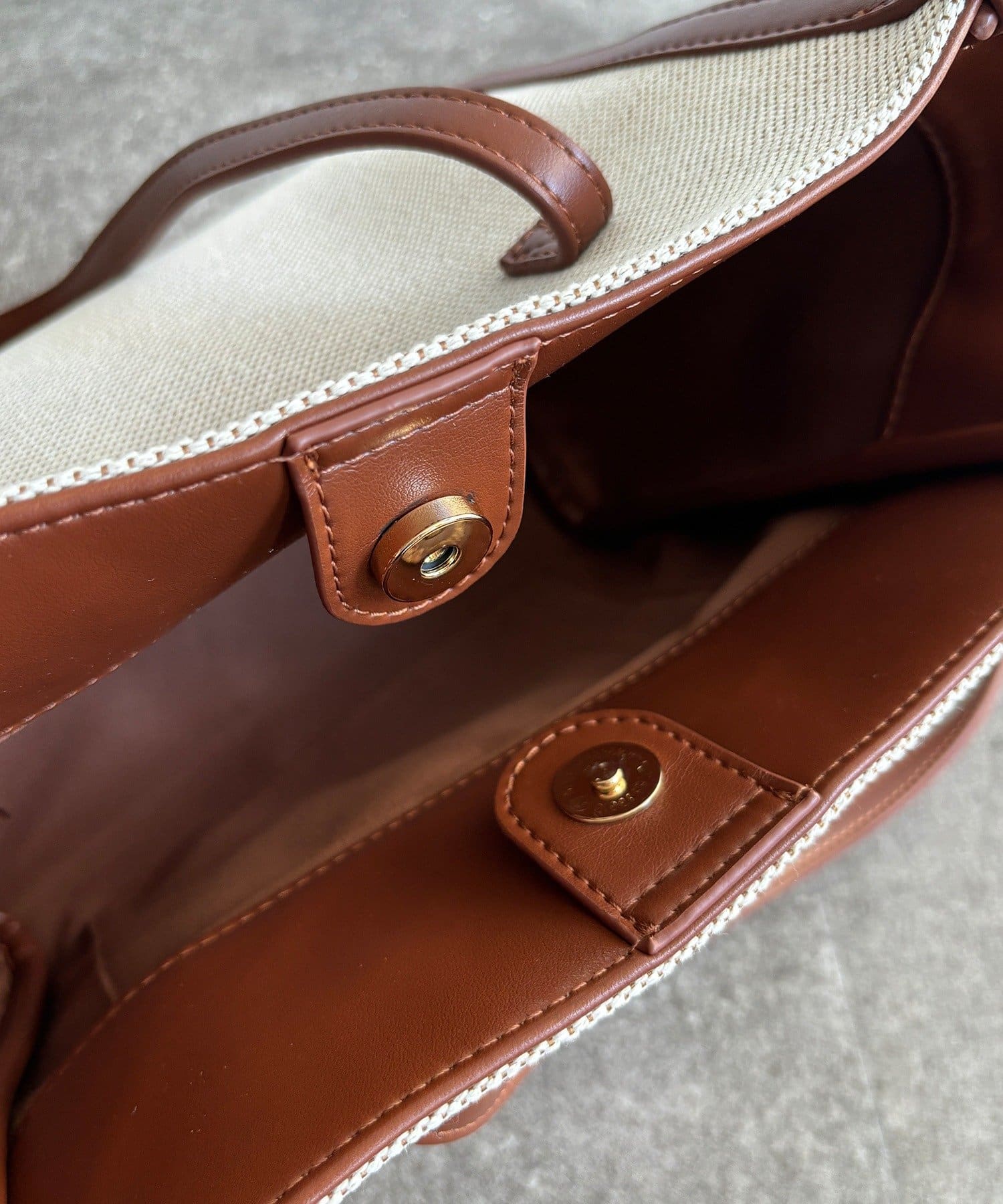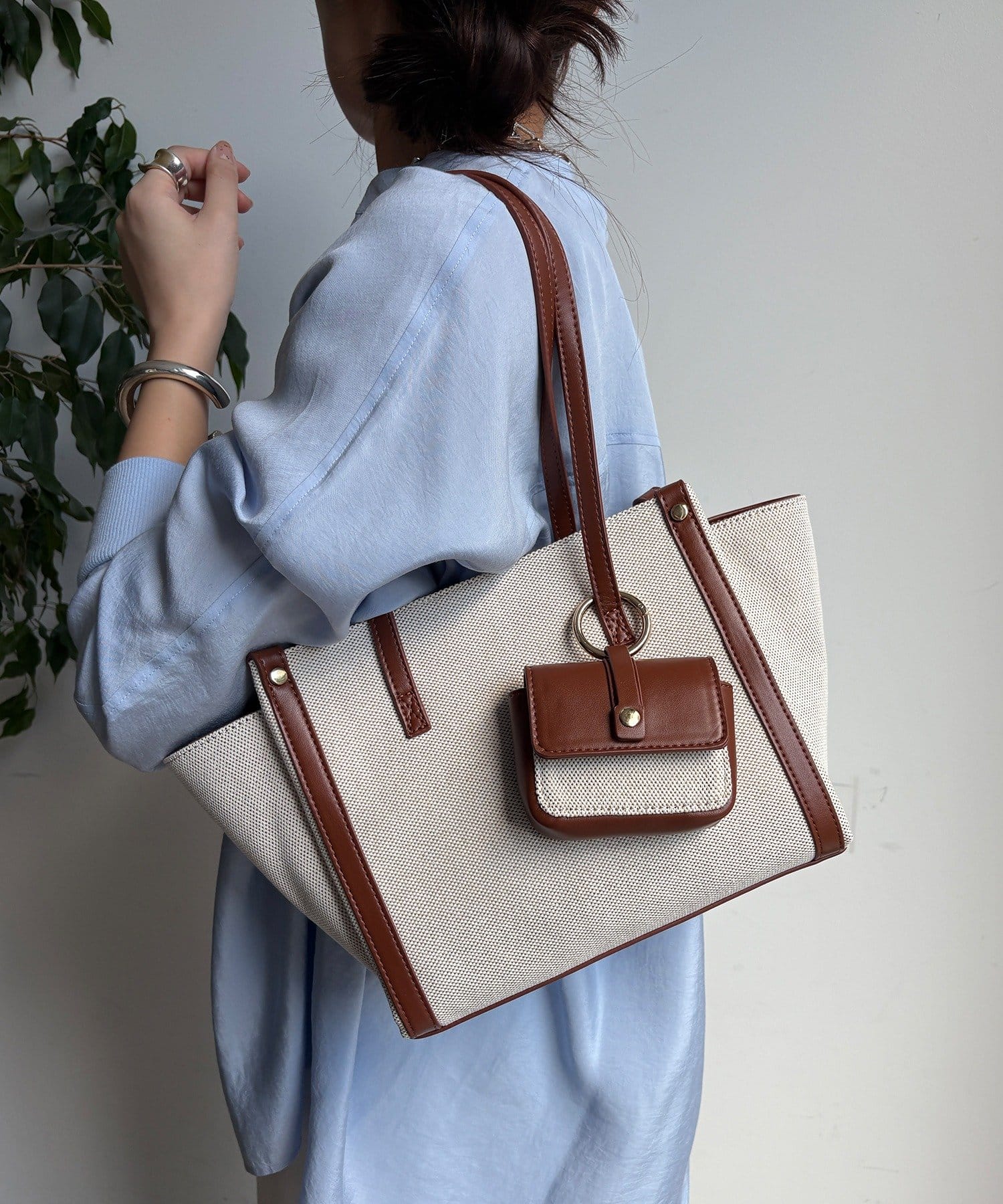 キャンバス×フェイクレザーで洗練された大人のデイリートート