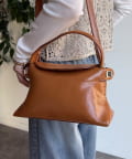 バッグの蓋がフラップでマグネットボタンも2つ付いているので