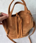 耐久性のある牛革が使われているスウェードのミニトート