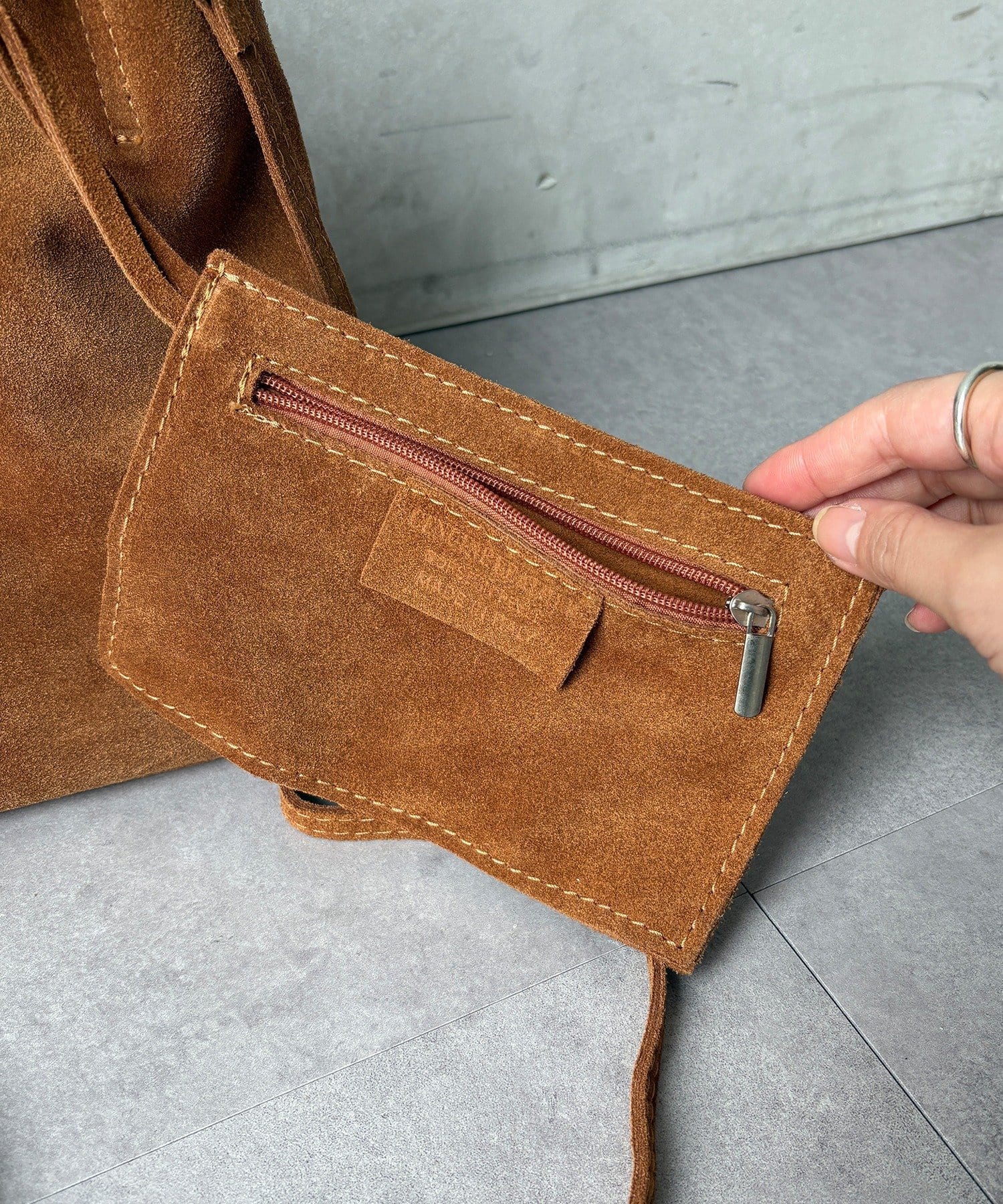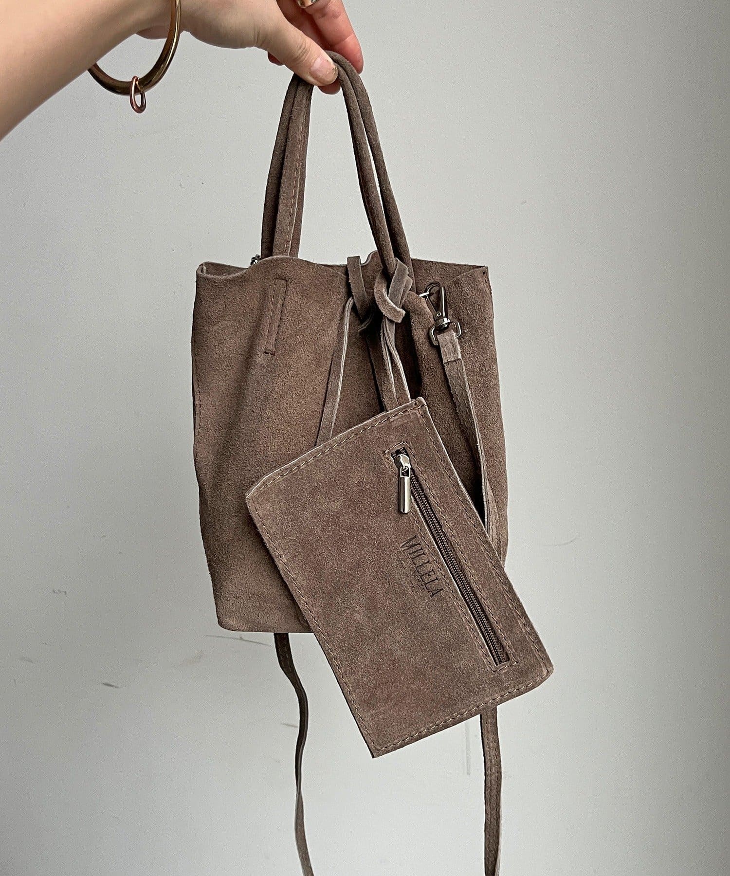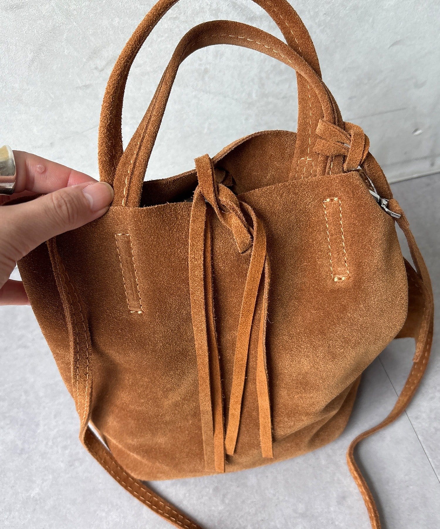 柔らかいレザーのスウェードバッグ