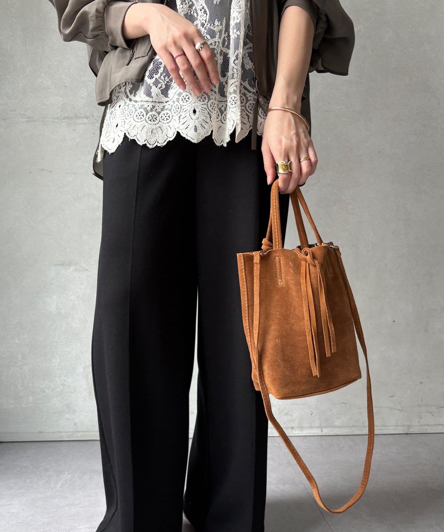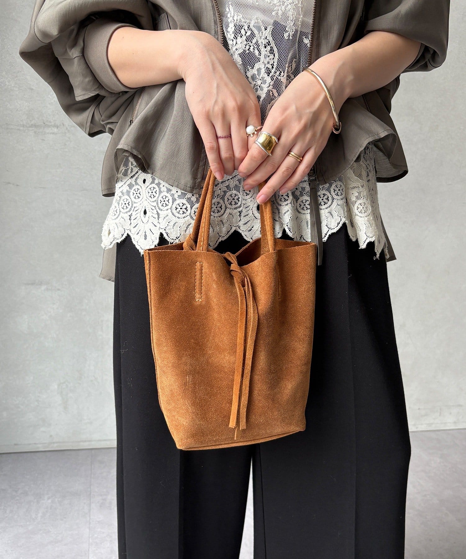 スウェードが大人な女性の雰囲気を演出し