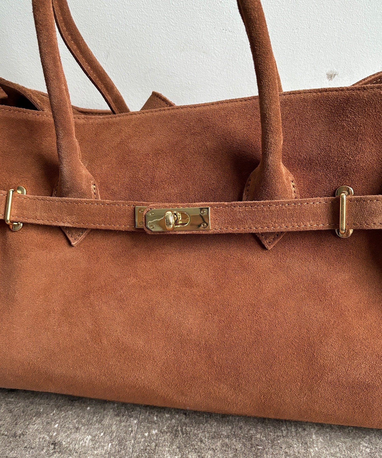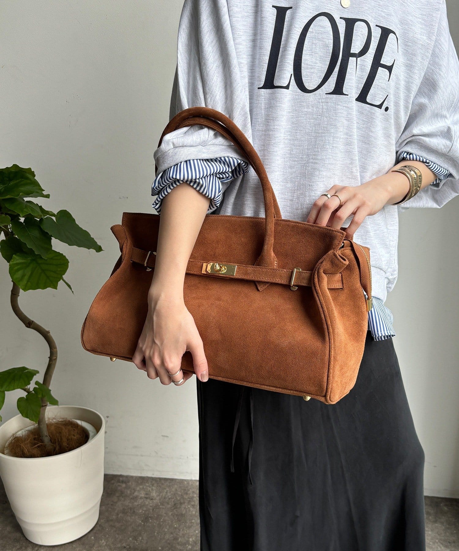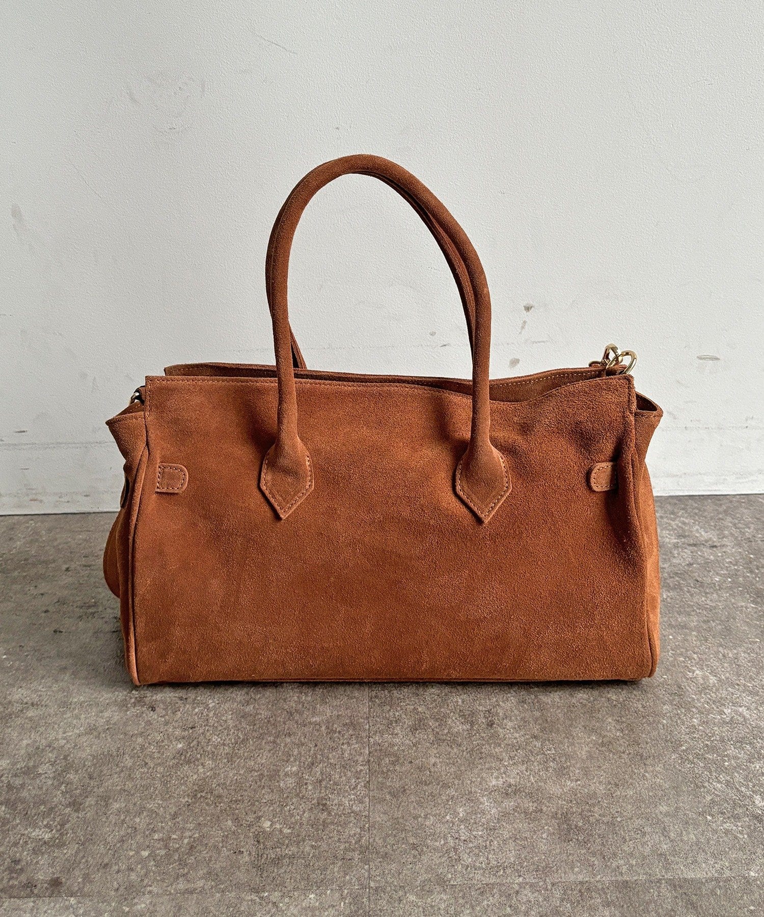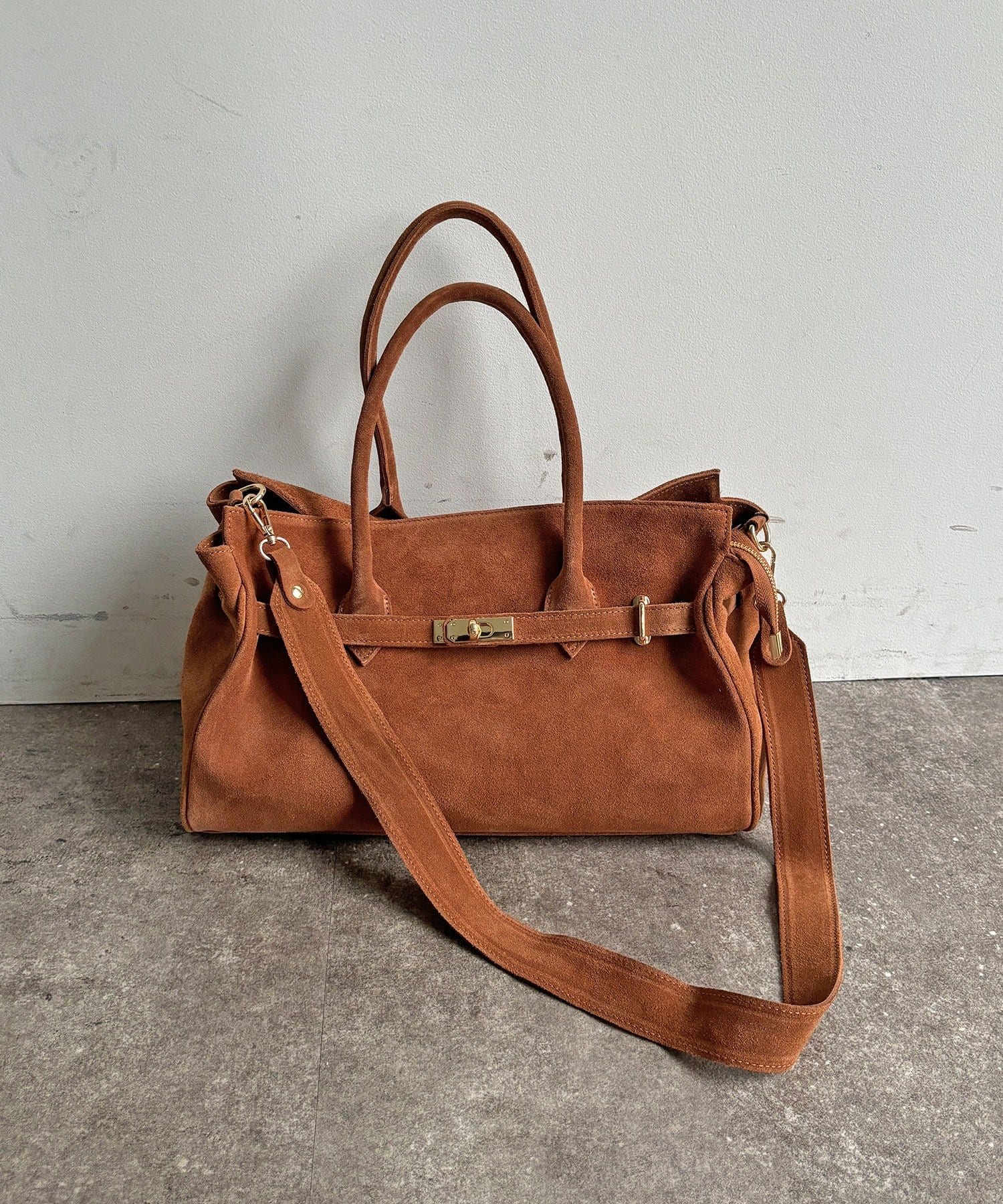 こなれ感のあるスウェード調のバッグ。